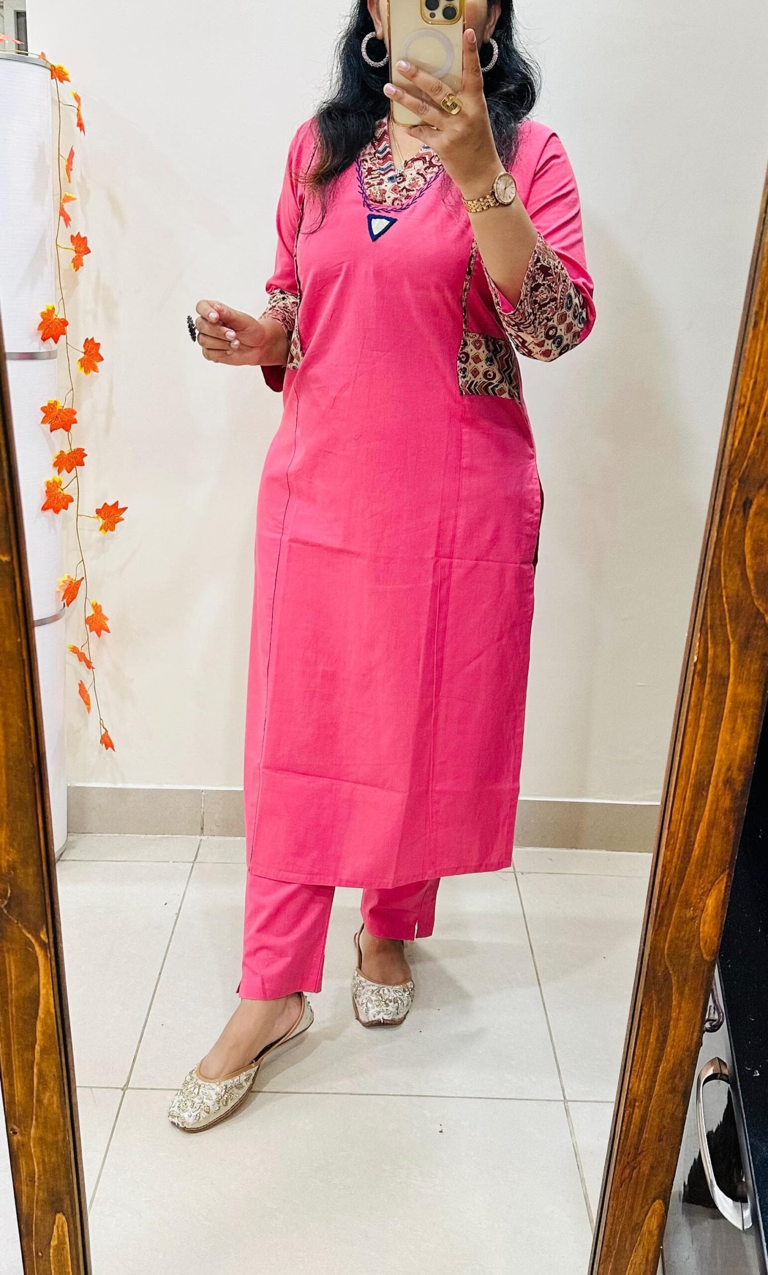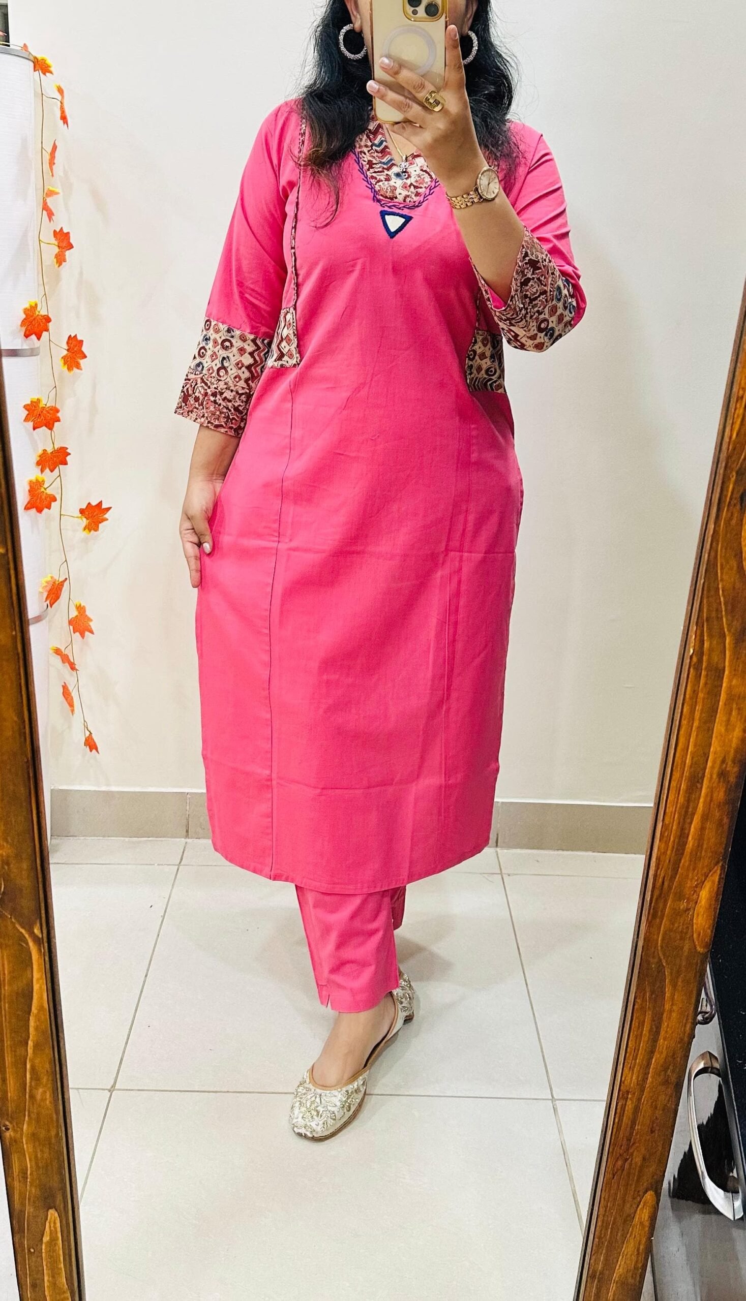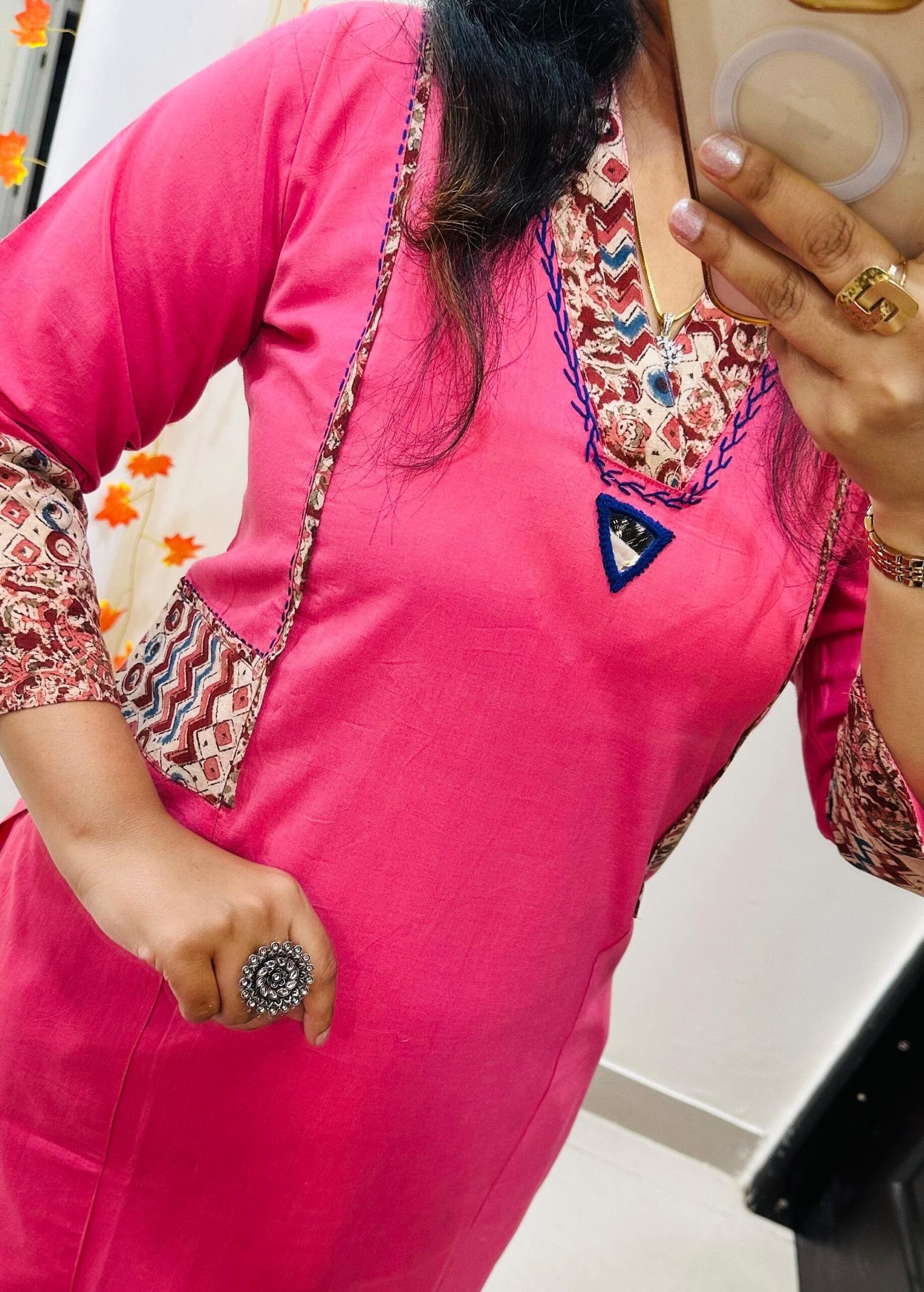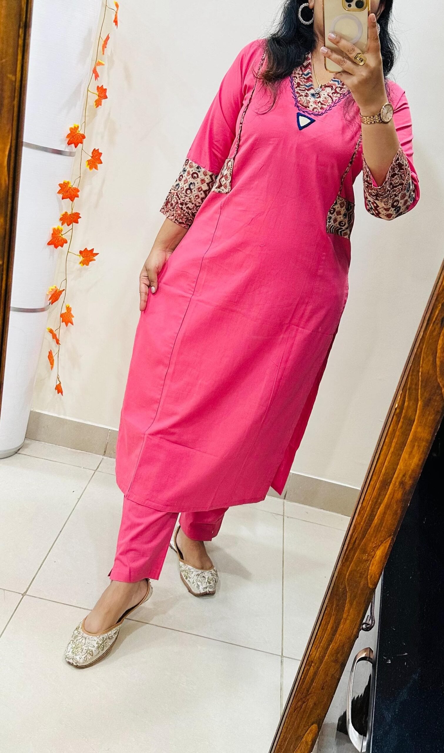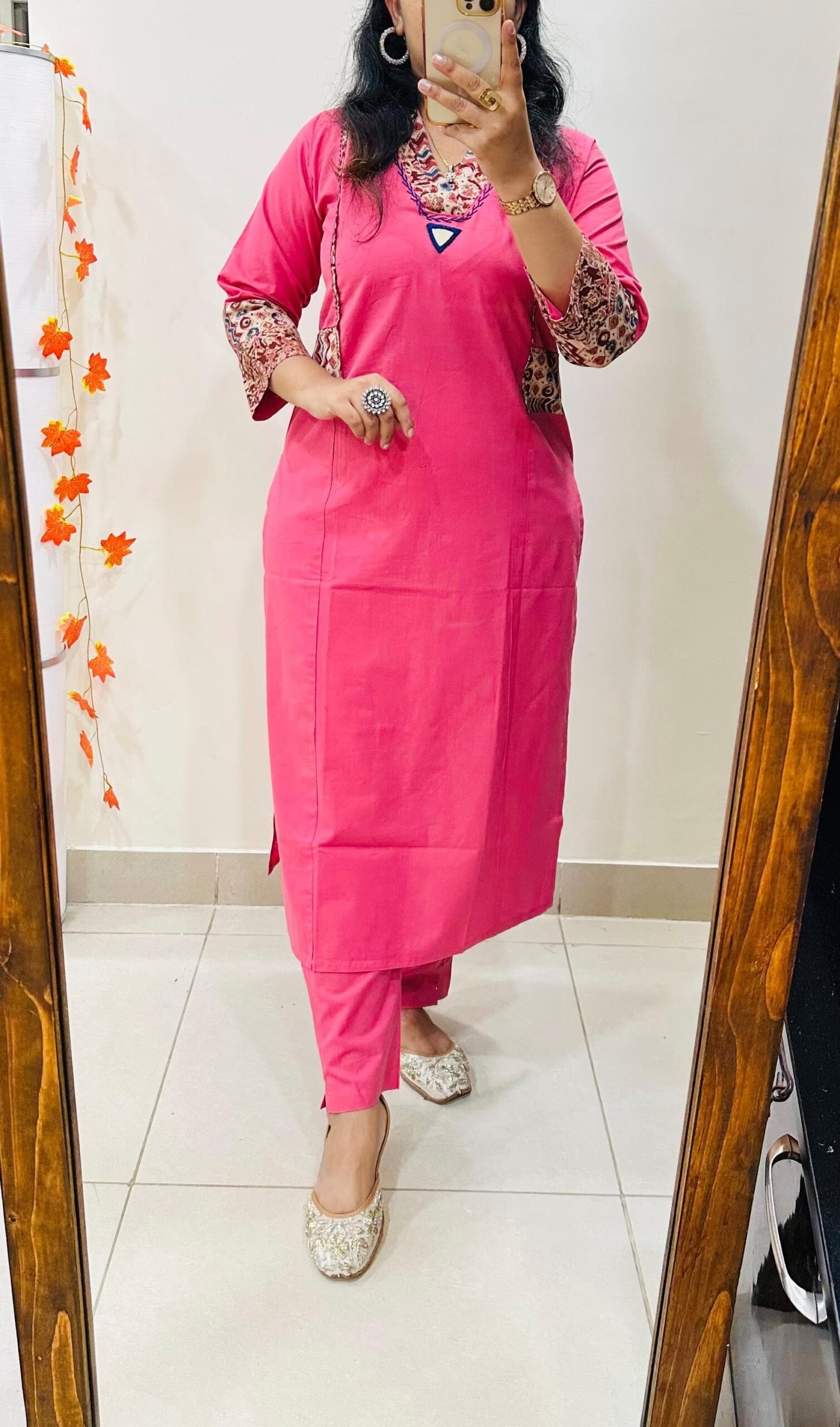 Designer Kurti Pant set in Dhabu Cotton Fabric with applique work thread work and original mirror work giving it charming & Mesmerizing Look…
