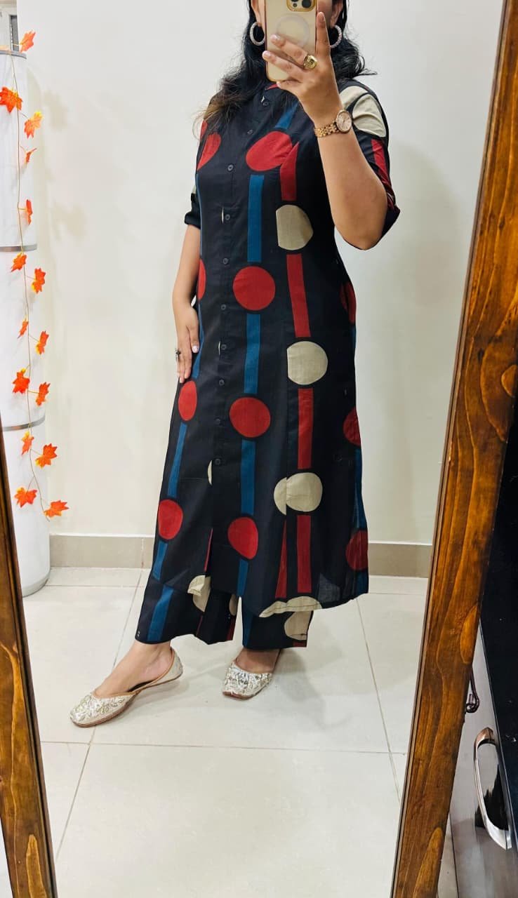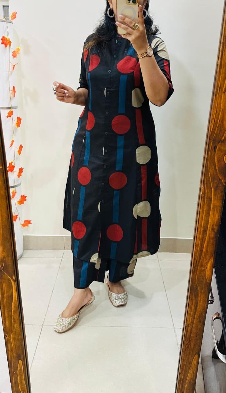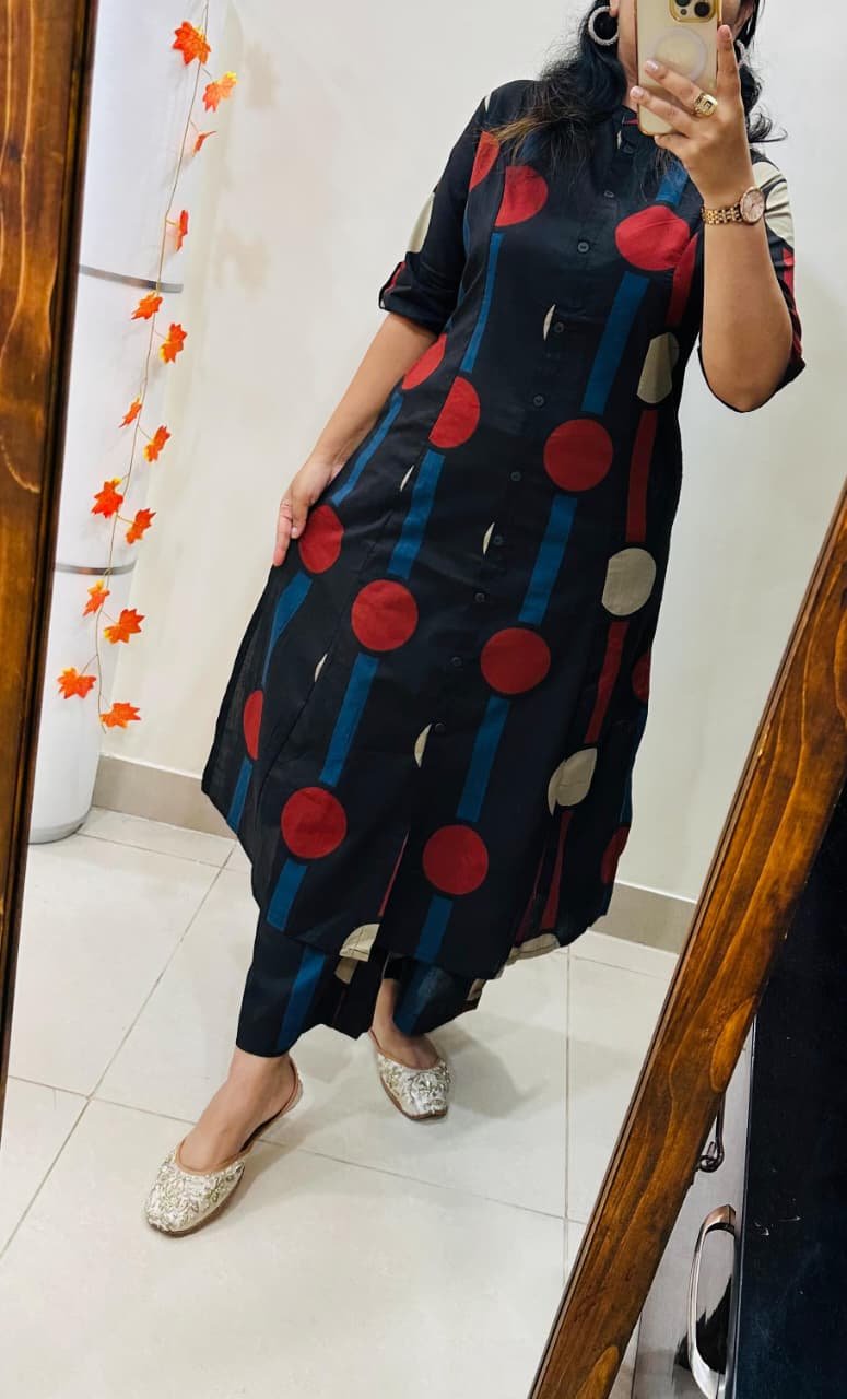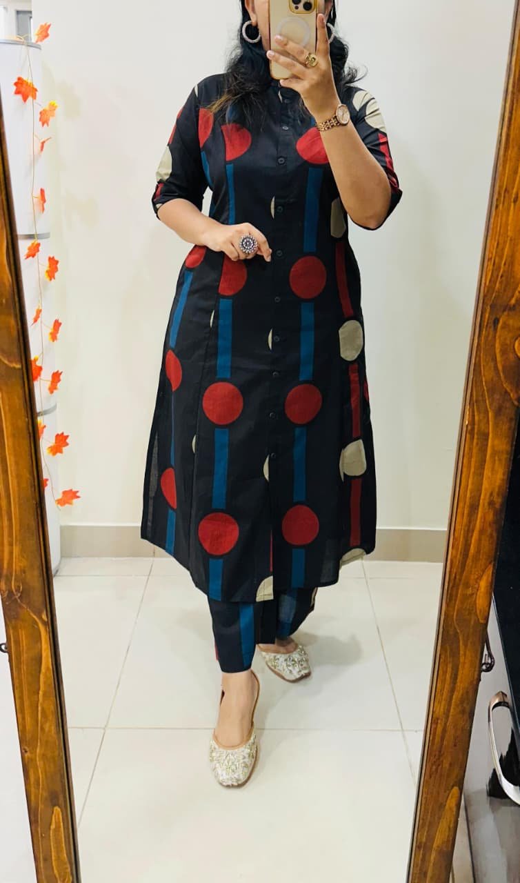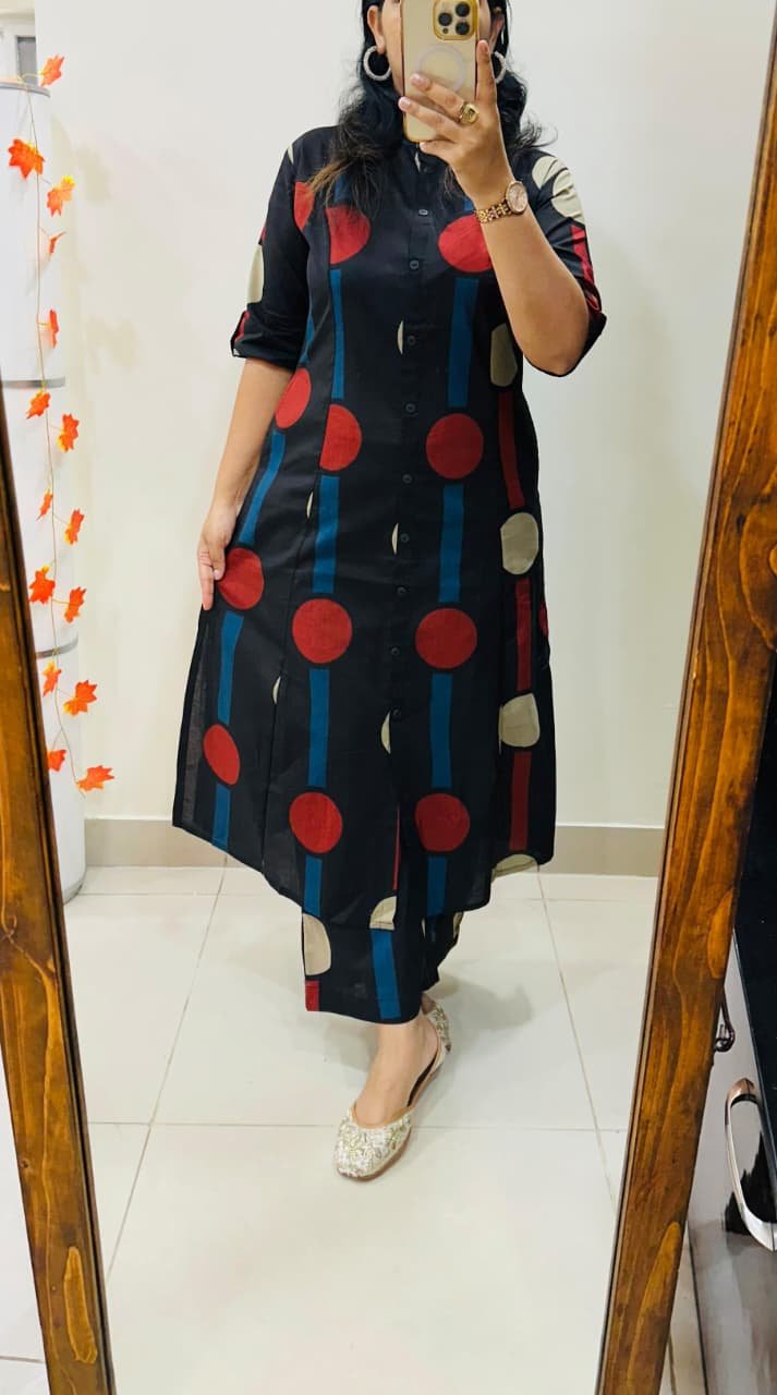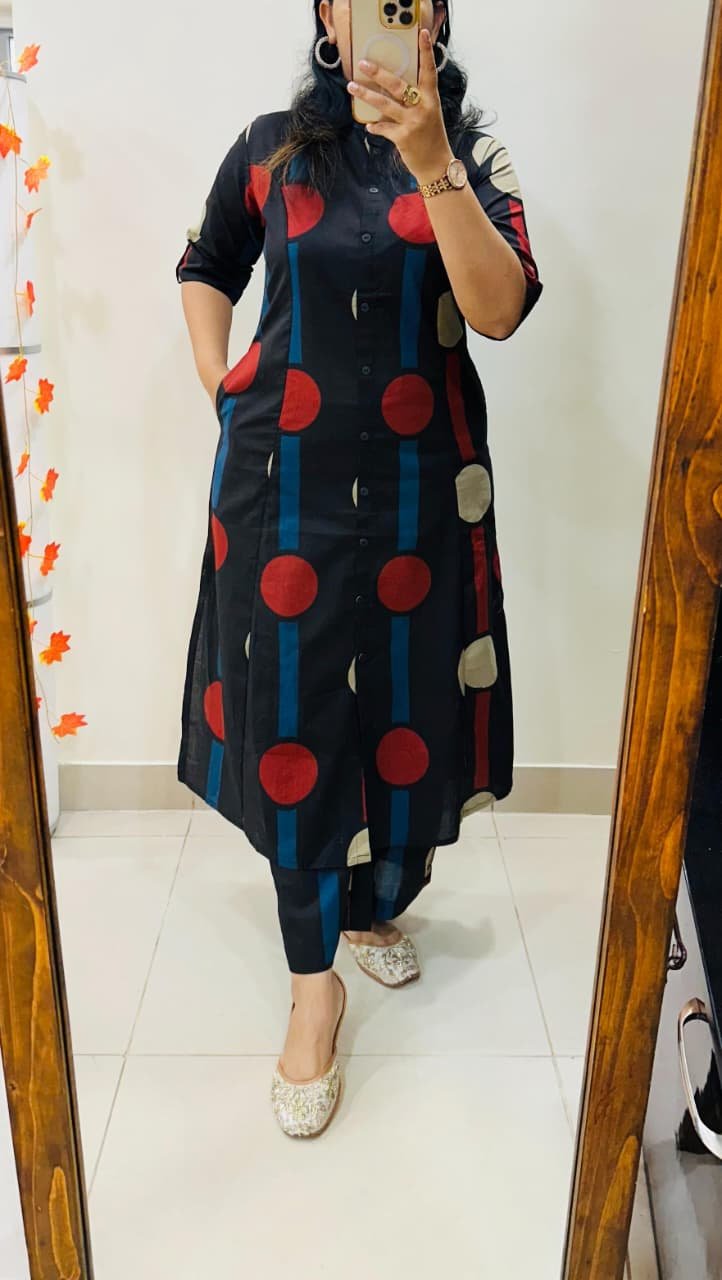 Launching Designer Coord set in Aline kurti with side slit pattern paired with Ankle length pant in Fine Cotton Flex giving perfect outfit and deliberate choice about your look…..