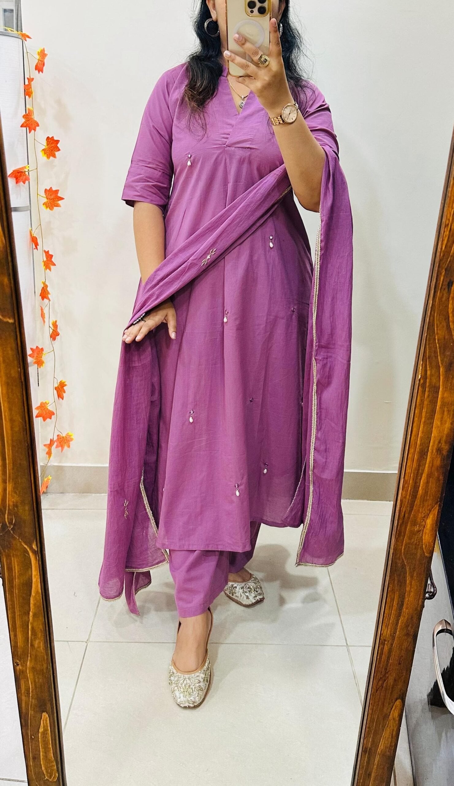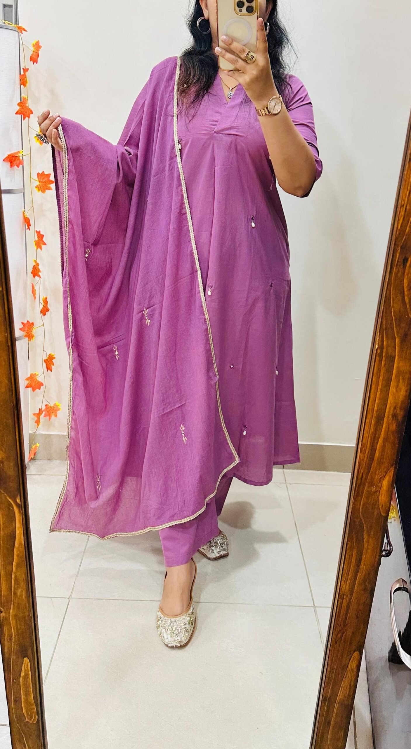 Beautiful frock Style kurti with pant dupatta set in Premium Cotton with heavy original Mirror and moti work giving Mesmerizing look to the outfit