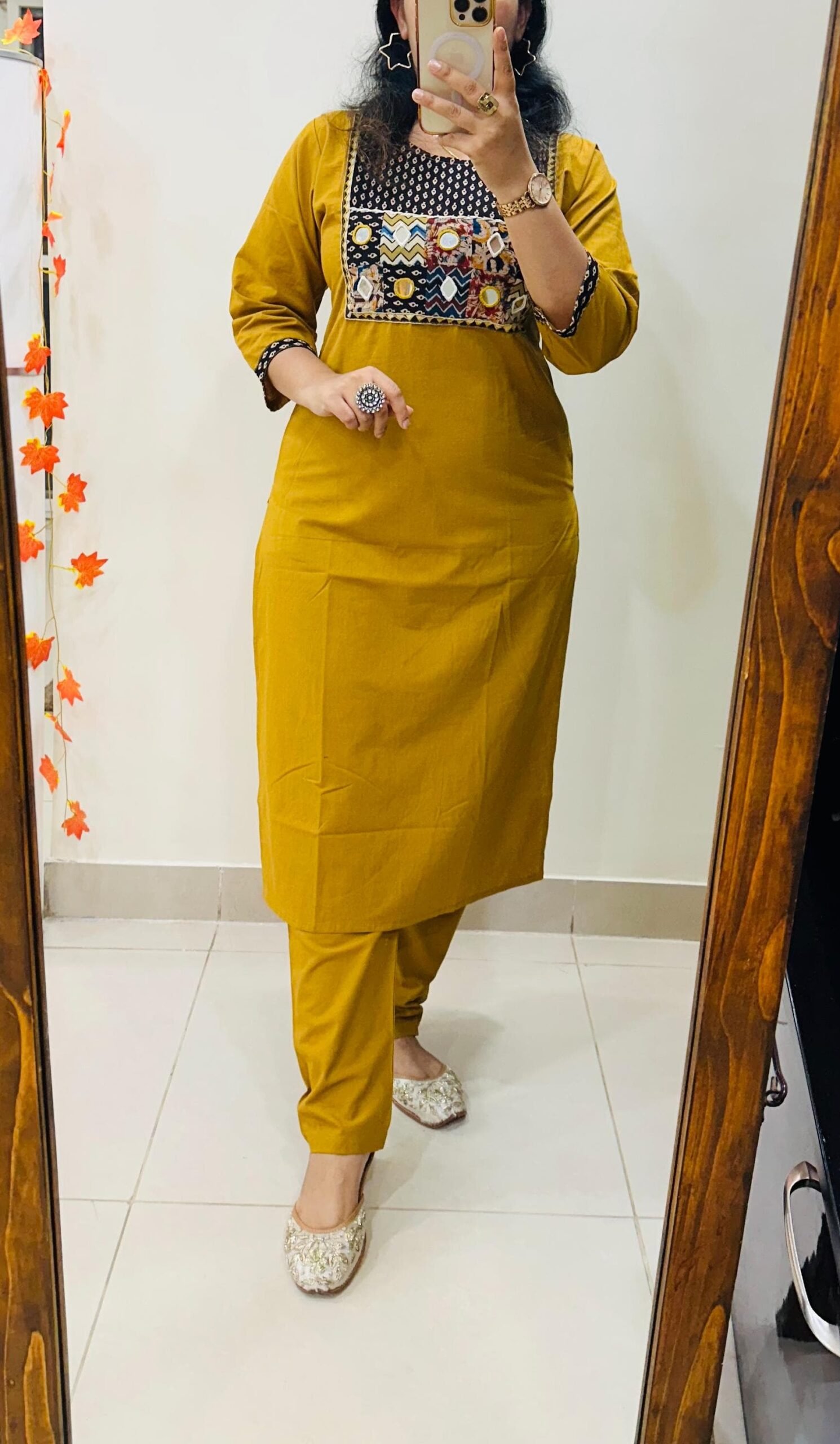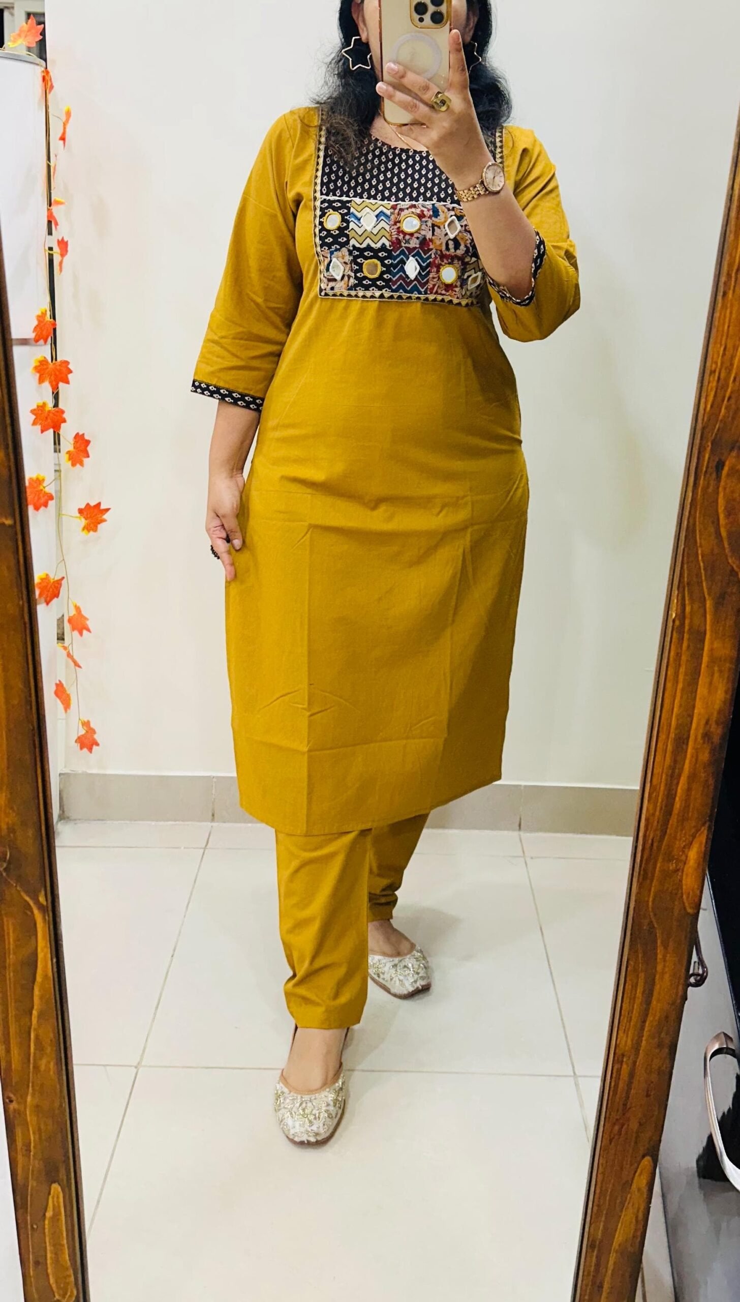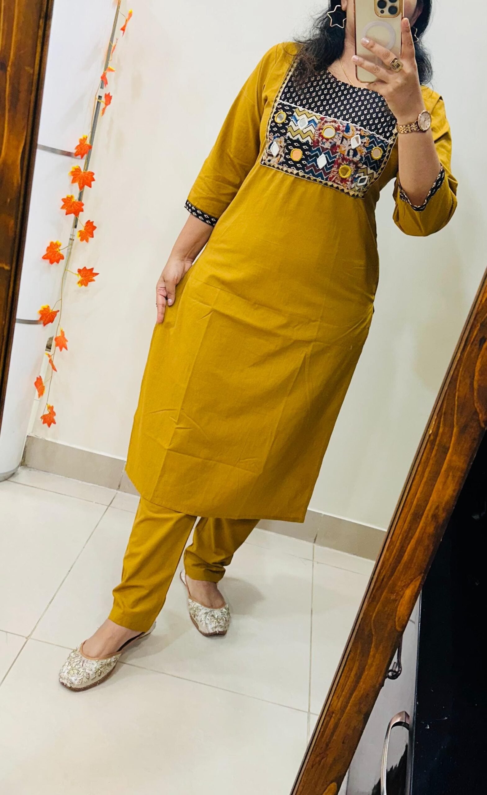 Launching Kurti Pant Set in Cotton Fabric with beautiful applique mirror thread detailing in yoke giving perfect smart Look