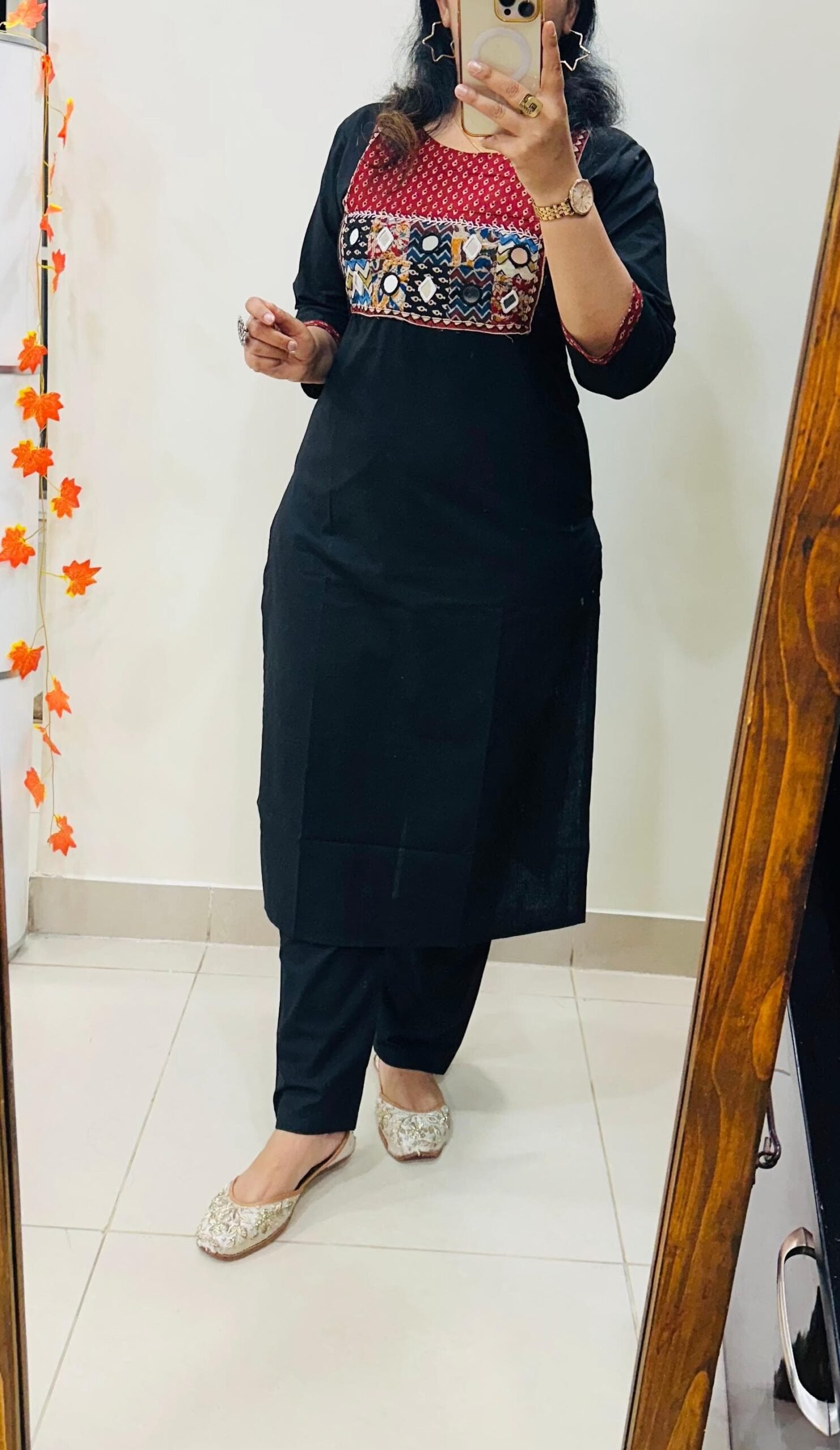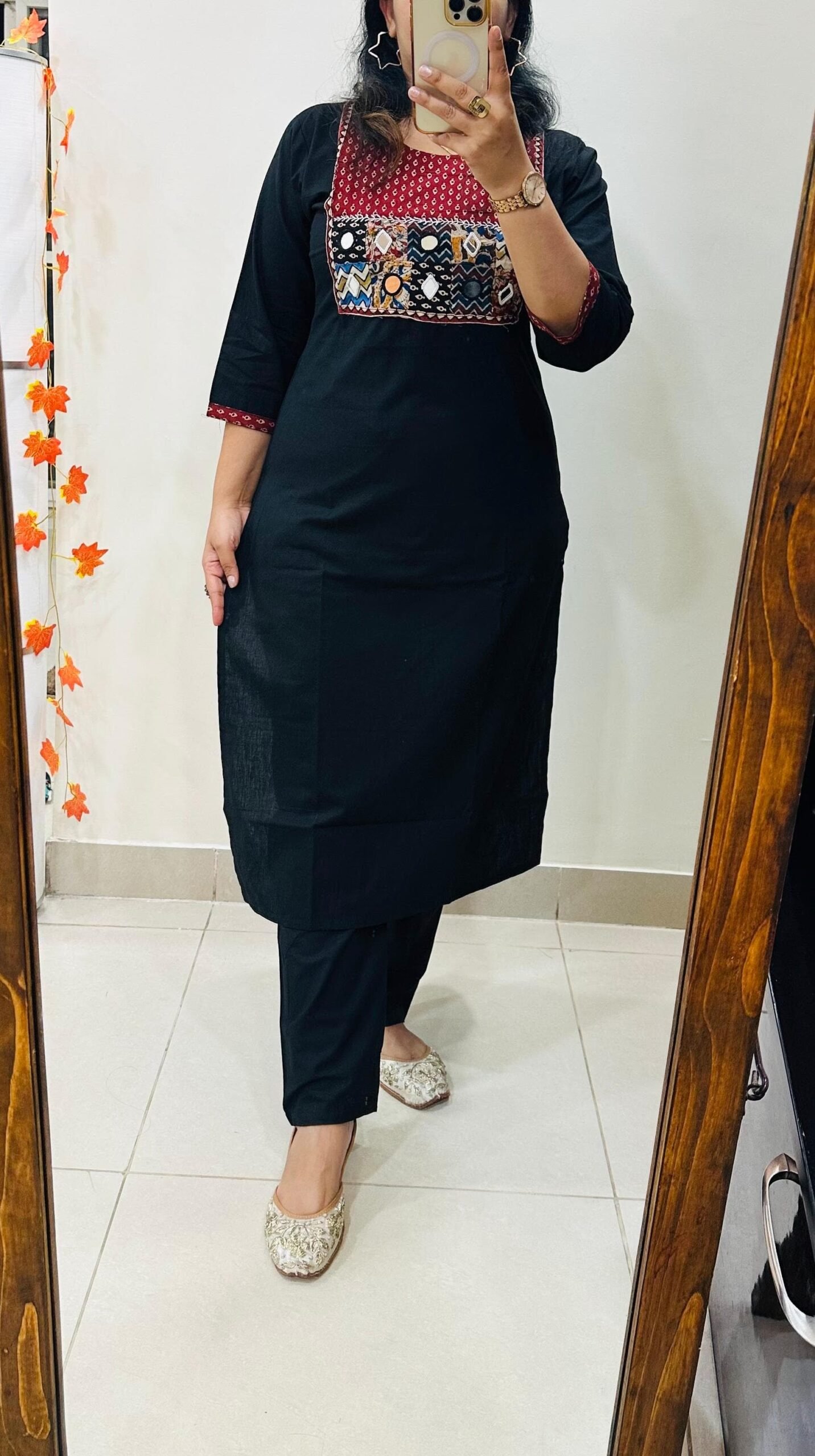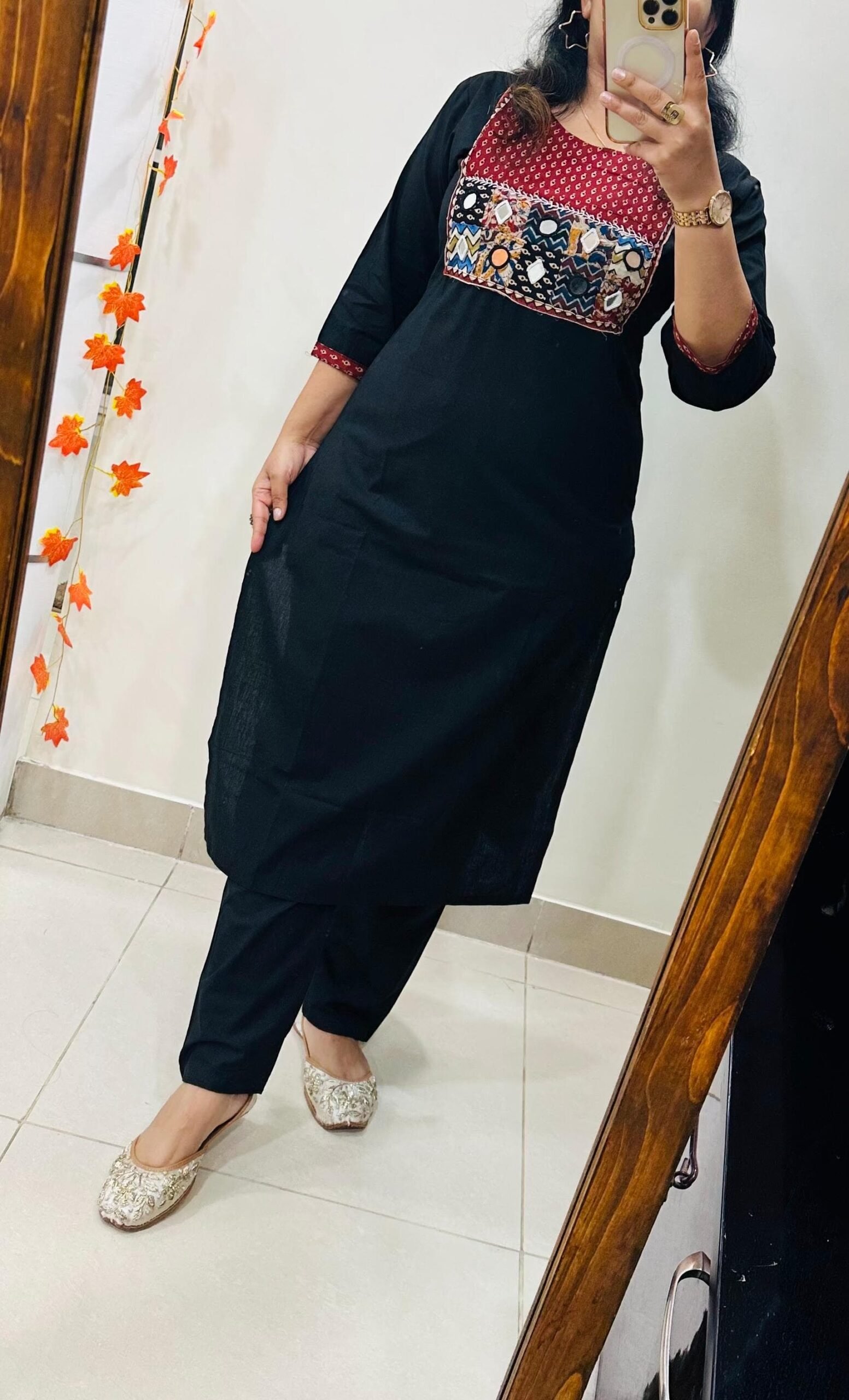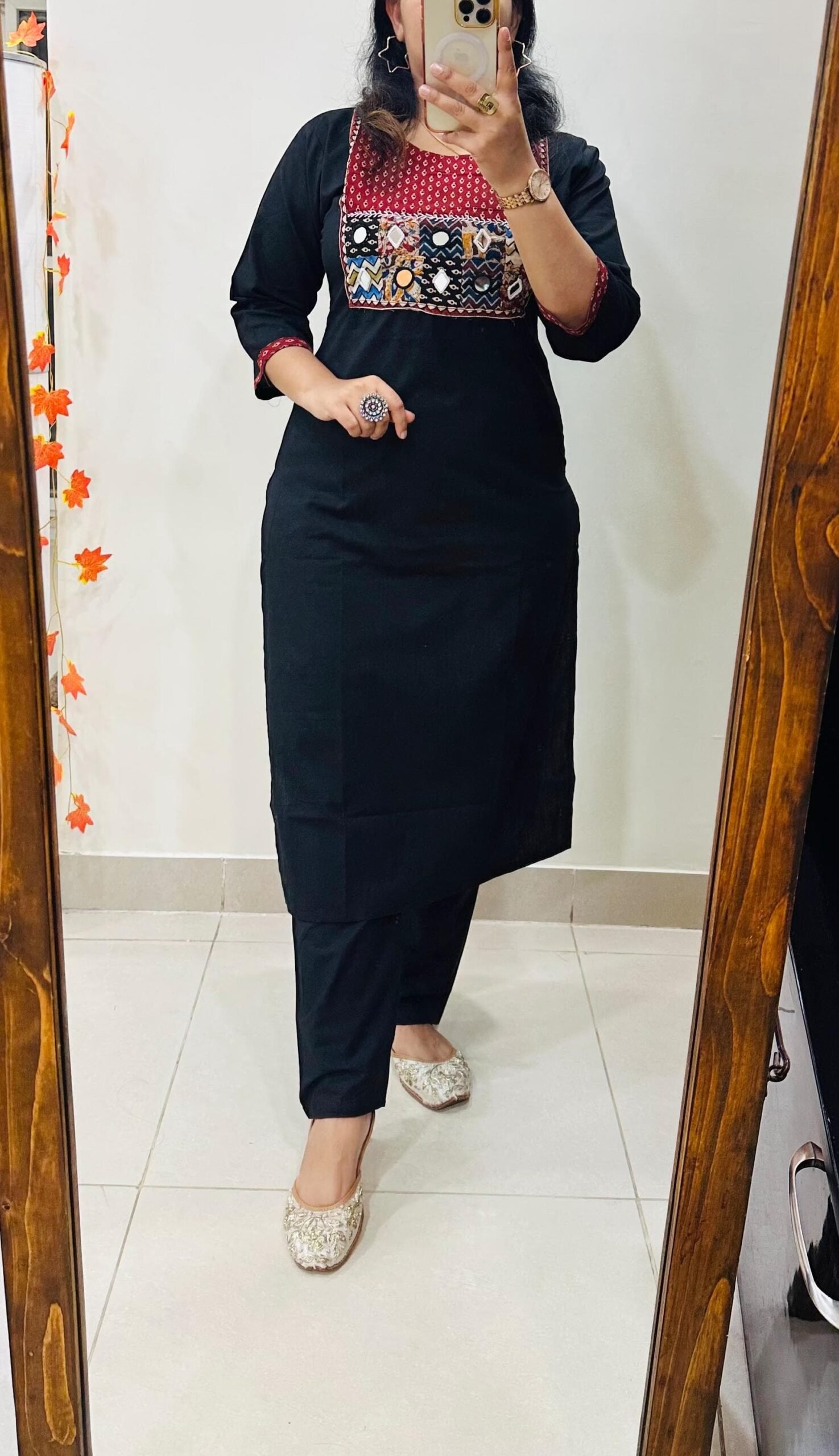 Launching Kurti Pant Set in Cotton Fabric with beautiful applique mirror thread detailing in yoke giving perfect smart Look