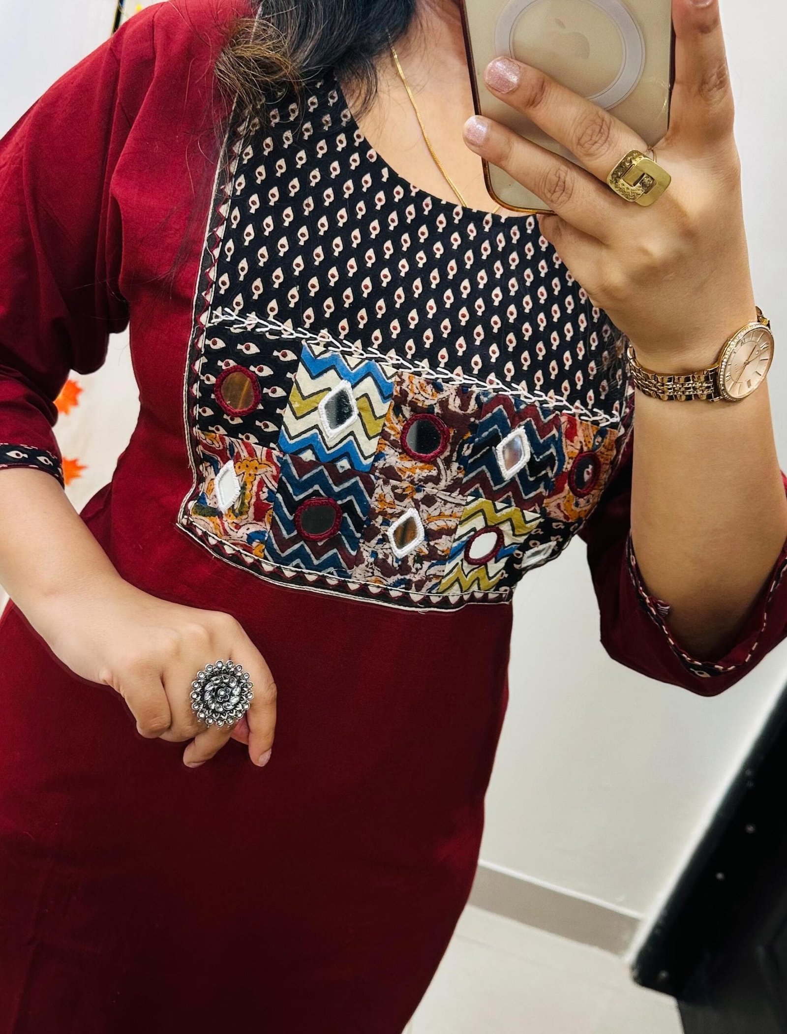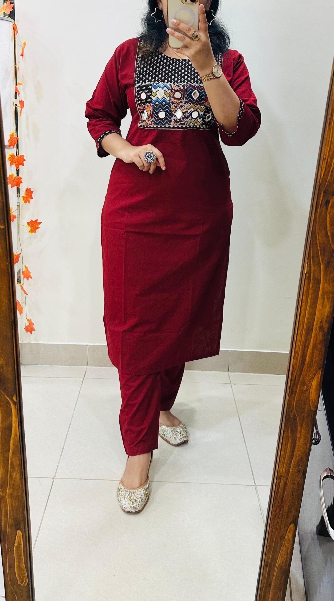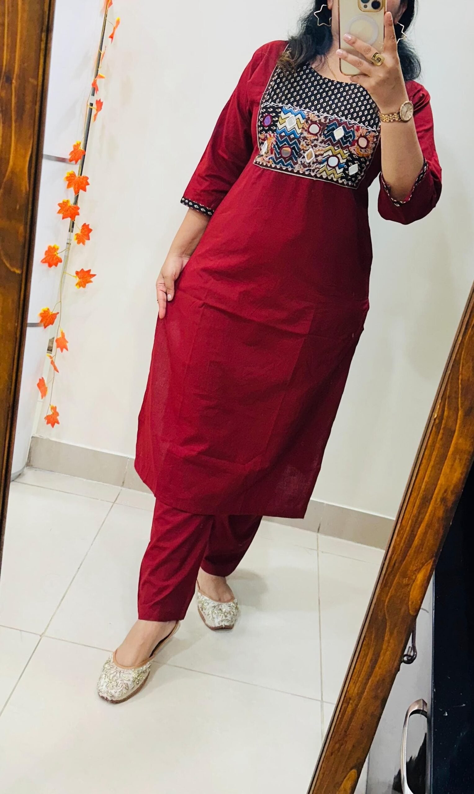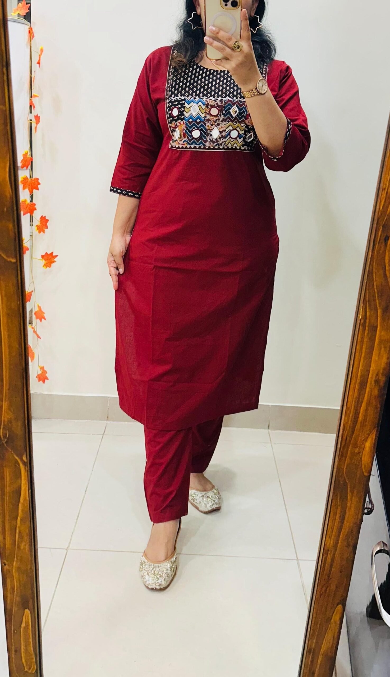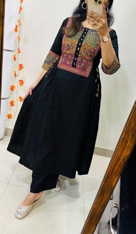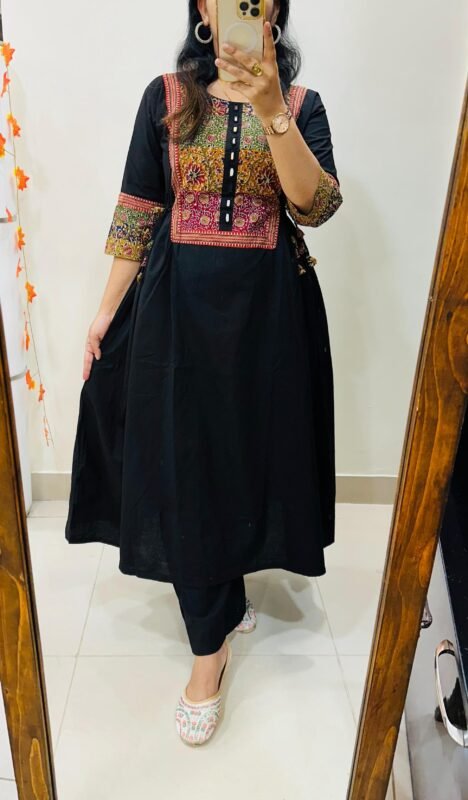 Launching Kurti Pant Set in Cotton Fabric with beautiful applique mirror thread detailing in yoke giving perfect smart Look