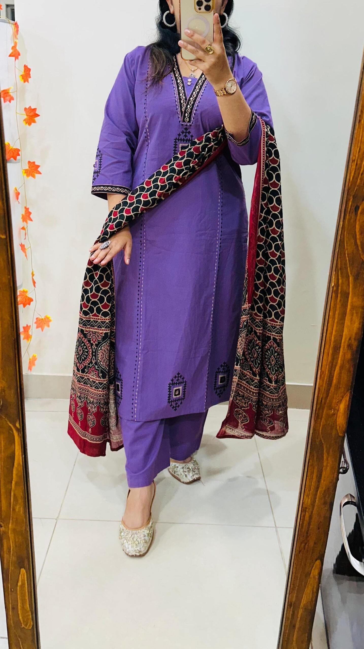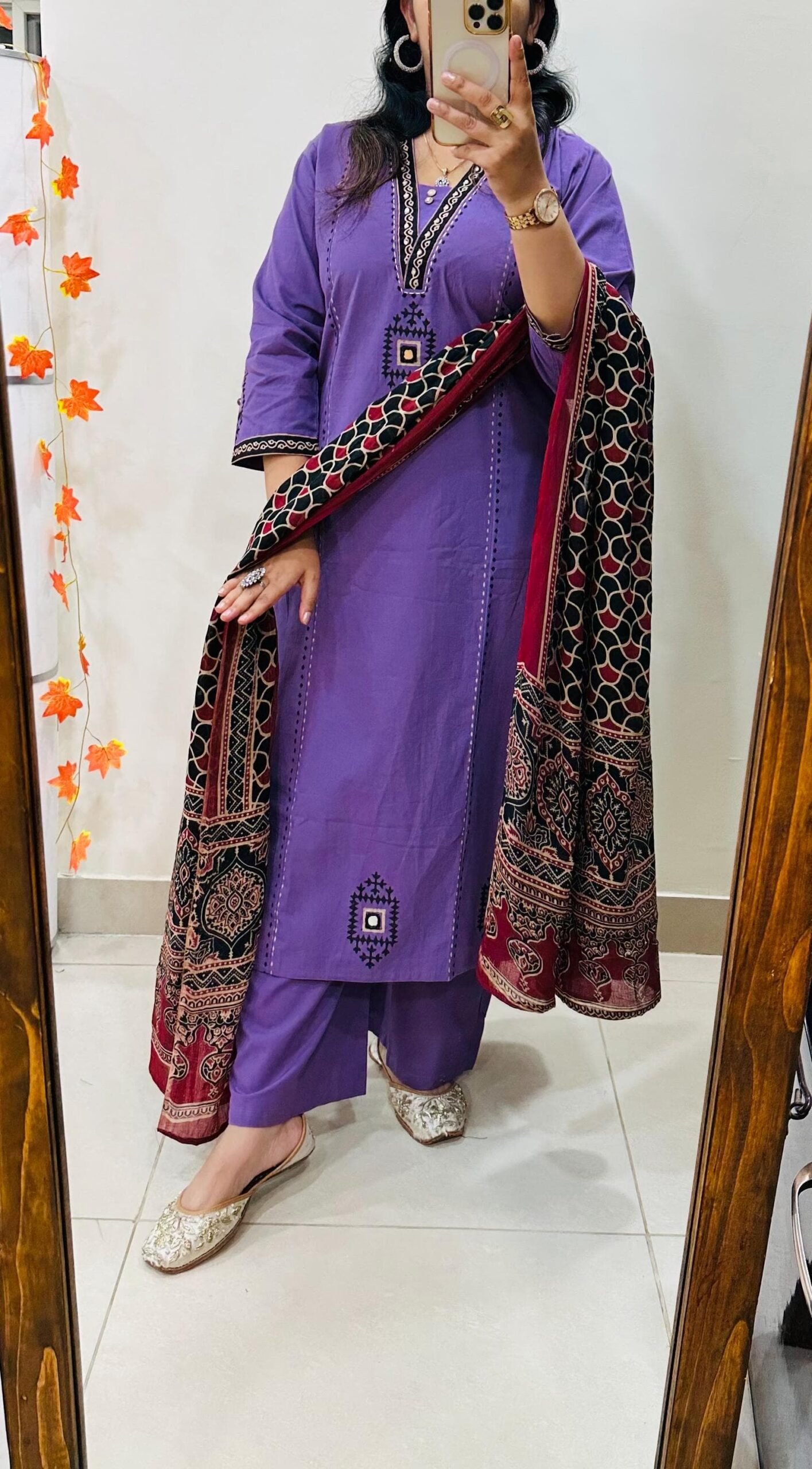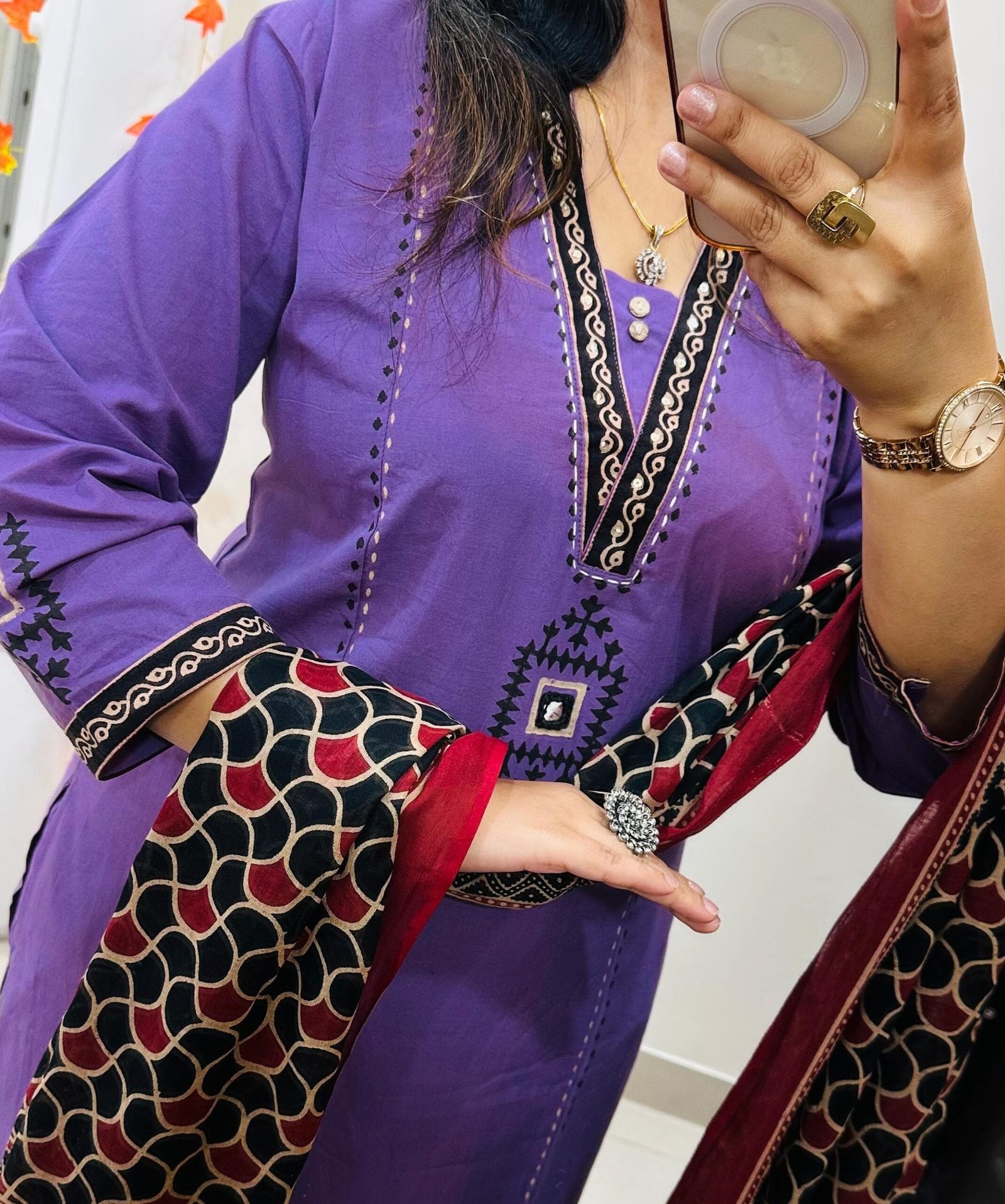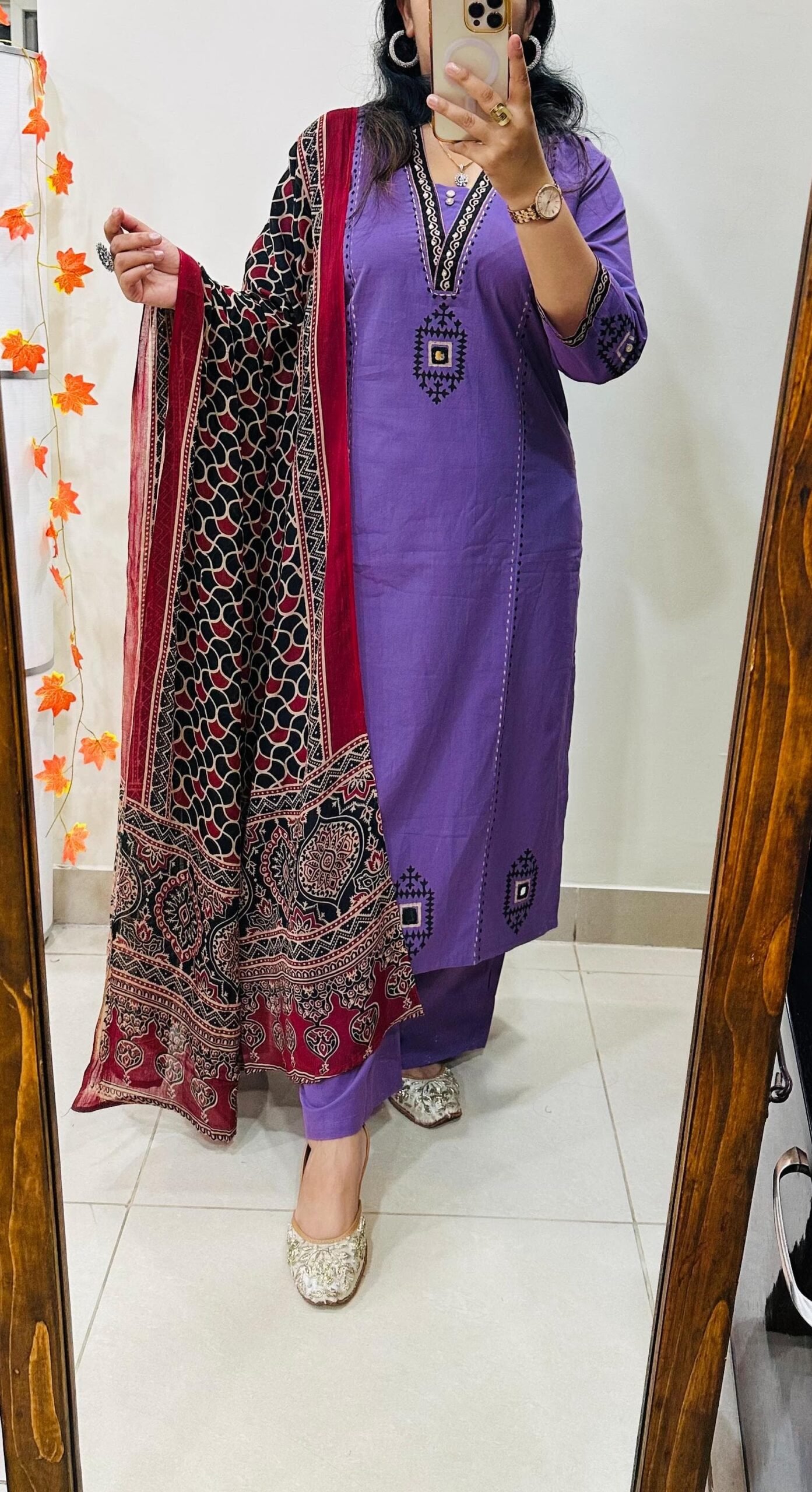 Stylish Ethnic Kurti Pant Dupatta Set in Rich Dhabu cotton fabric with Beautiful block print with original mirror work in yoke and bottom of kurti sleeves and back of kurti paired with fine cotton dupatta… 🎉🎉