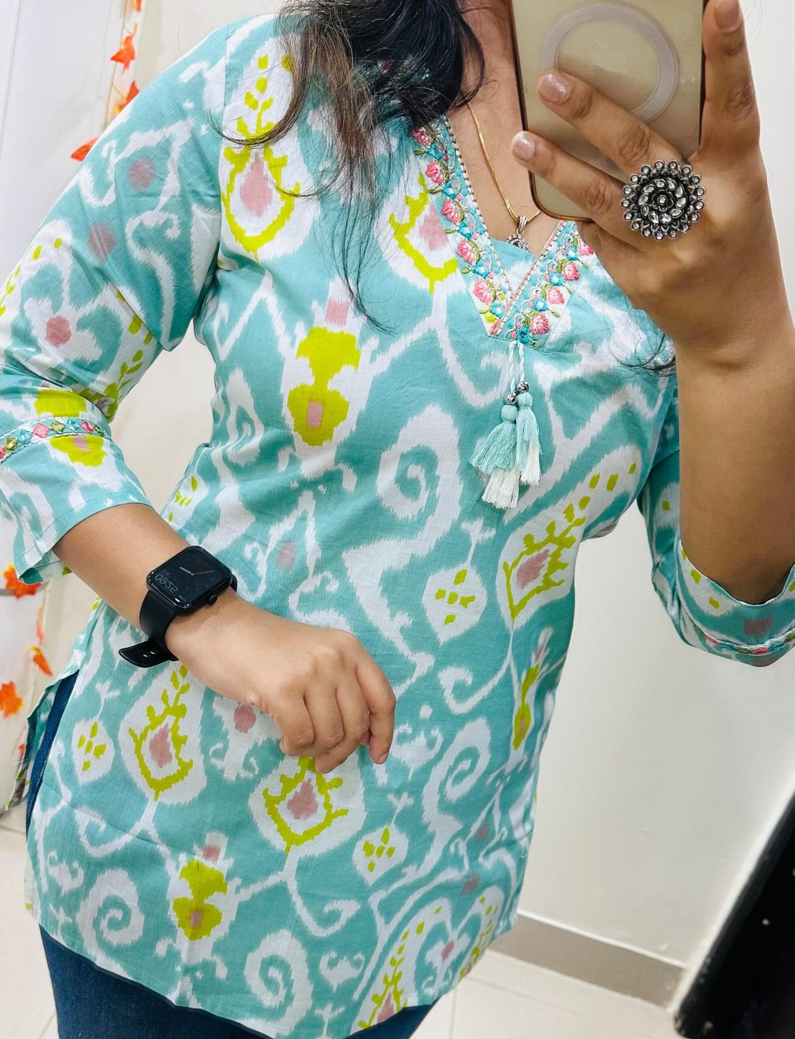 With Perfect Stitching & Perfect Fit 🥰👌🏻with embroidery detailing in neckline and sleeves with Tussels