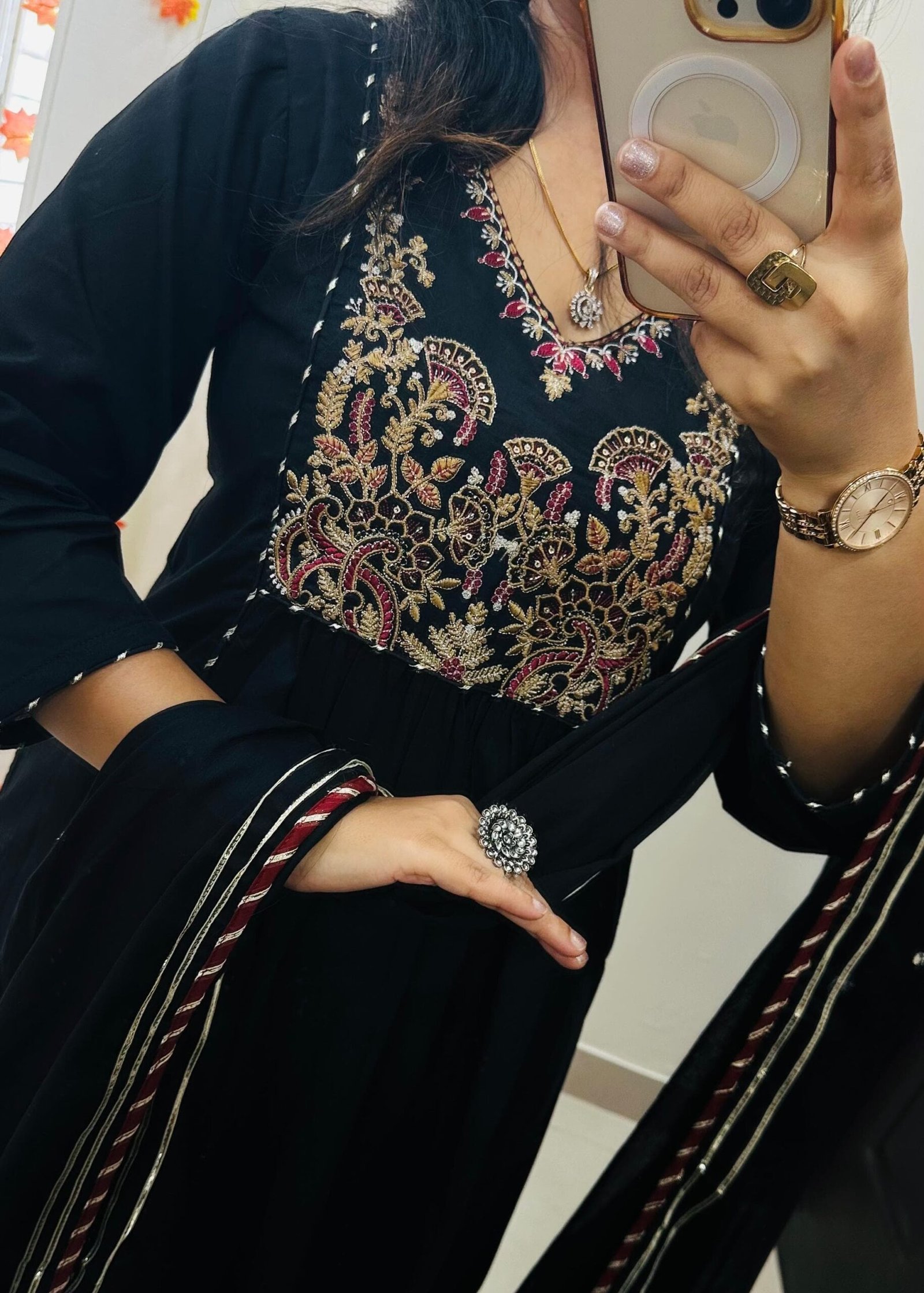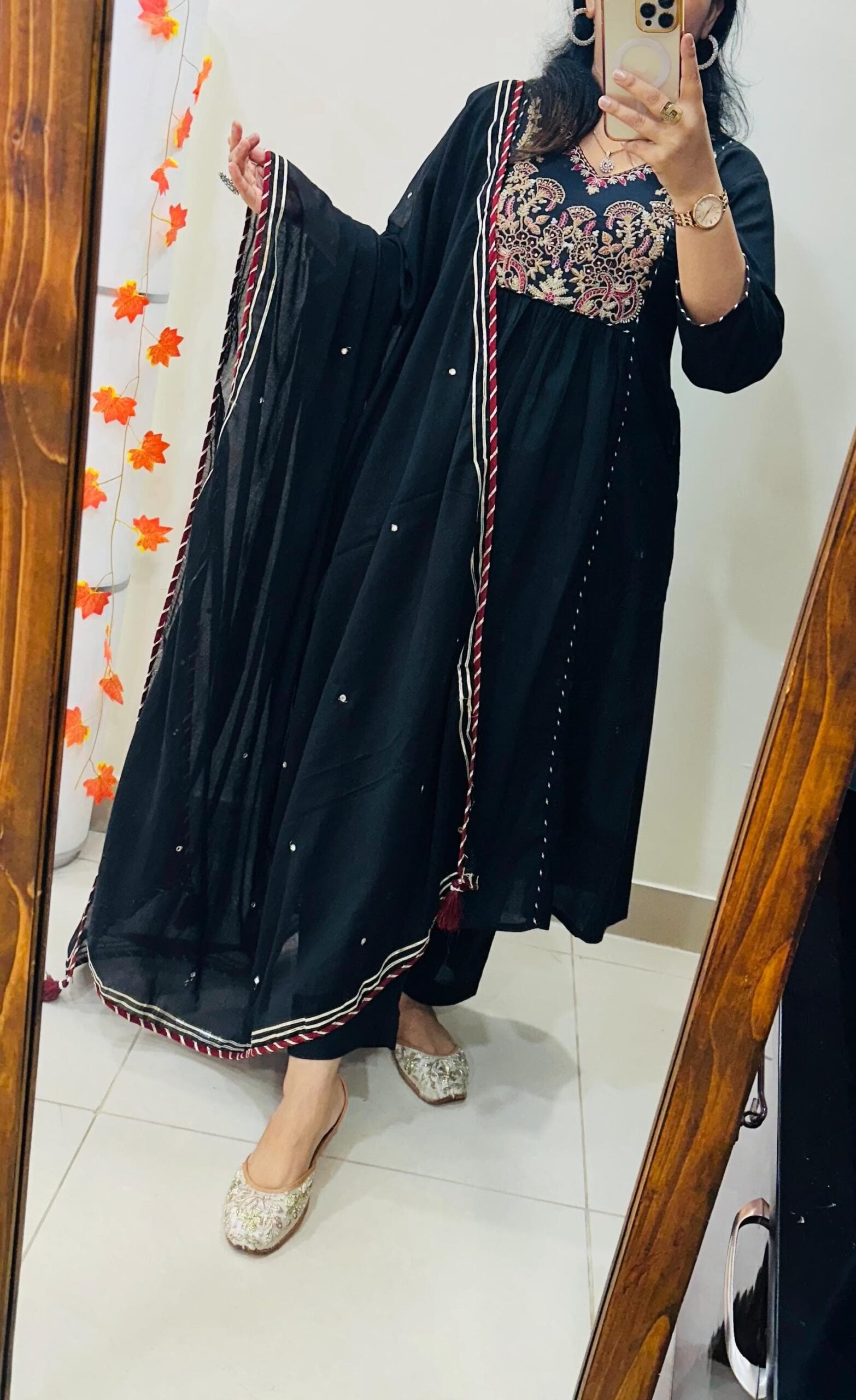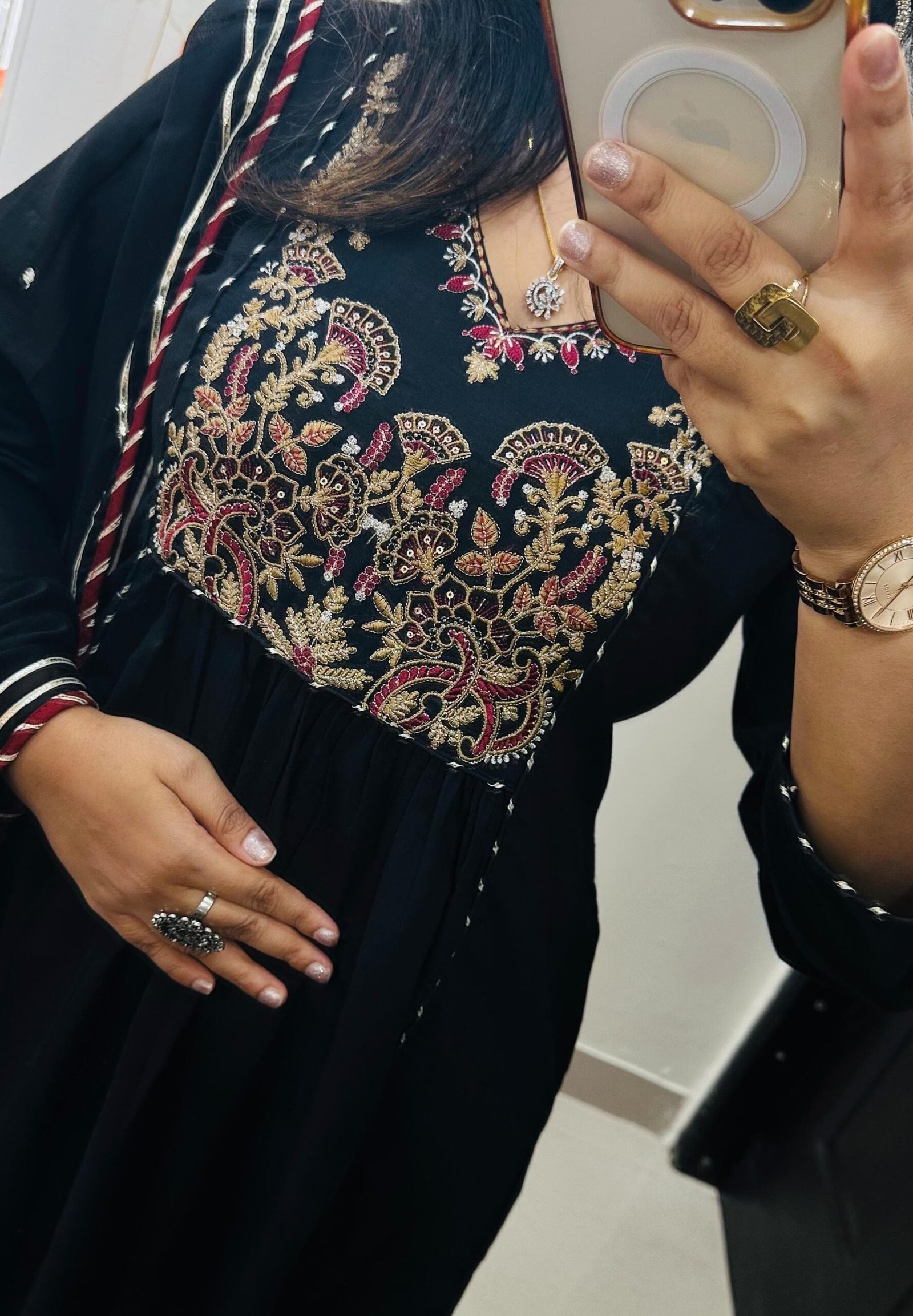 Special Highlight : Rich Embroidery on neckline and yoke ….Anarkali style with no side slit