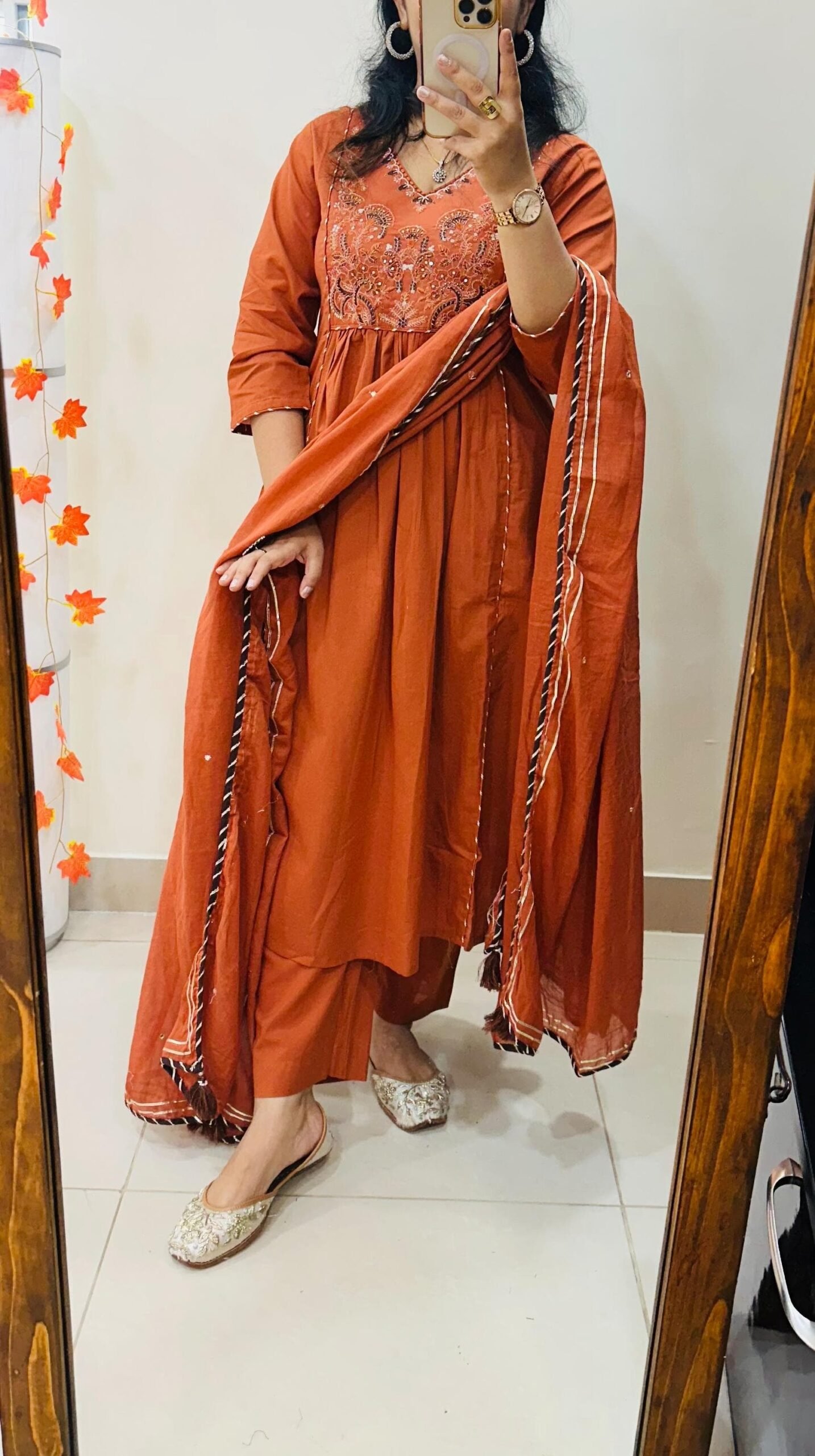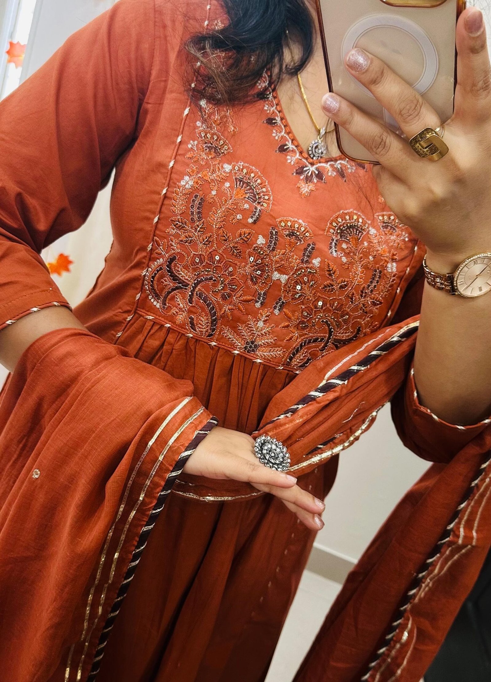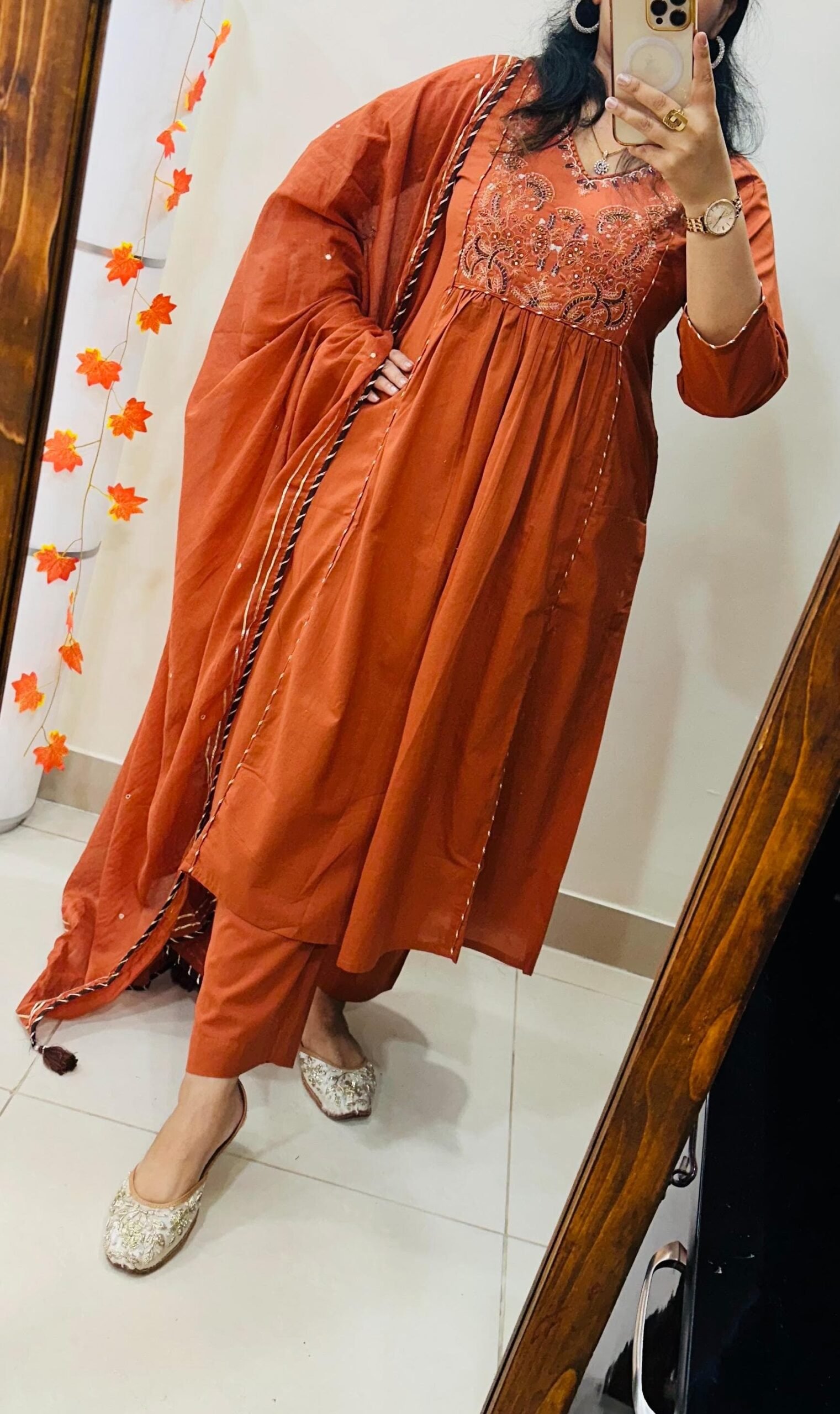 Special Highlight : Rich Embroidery on neckline and yoke ….Anarkali style with side slit