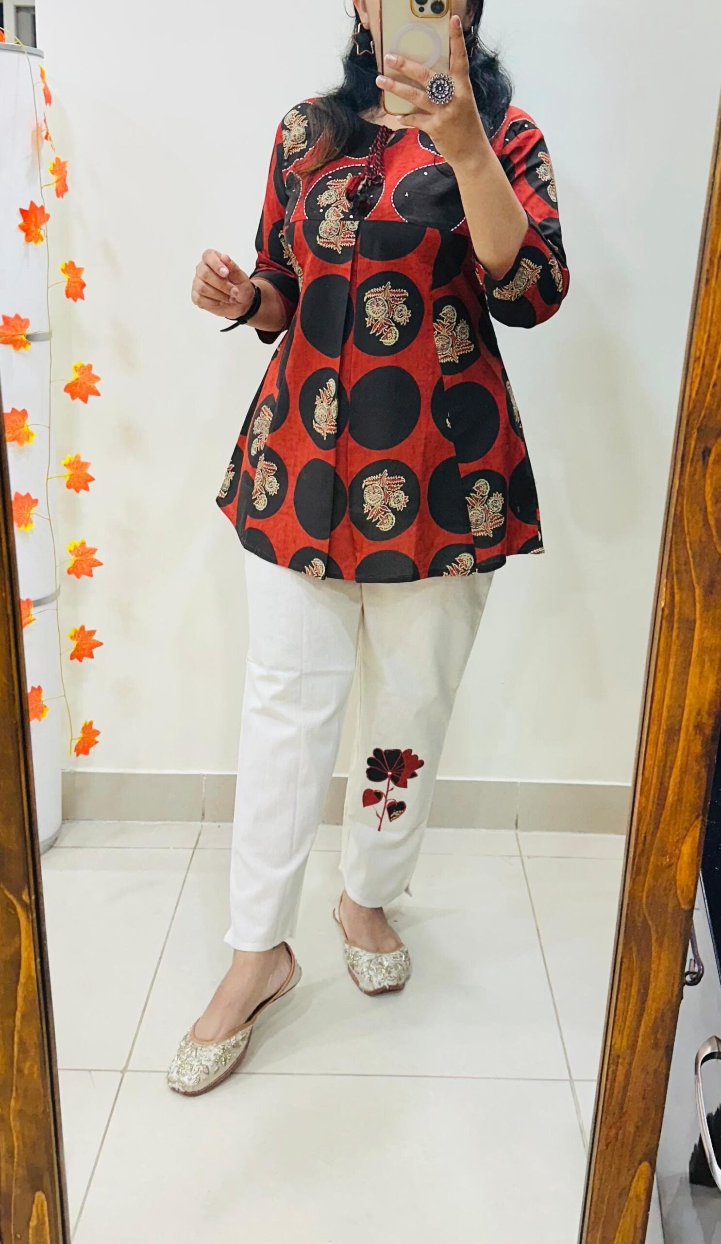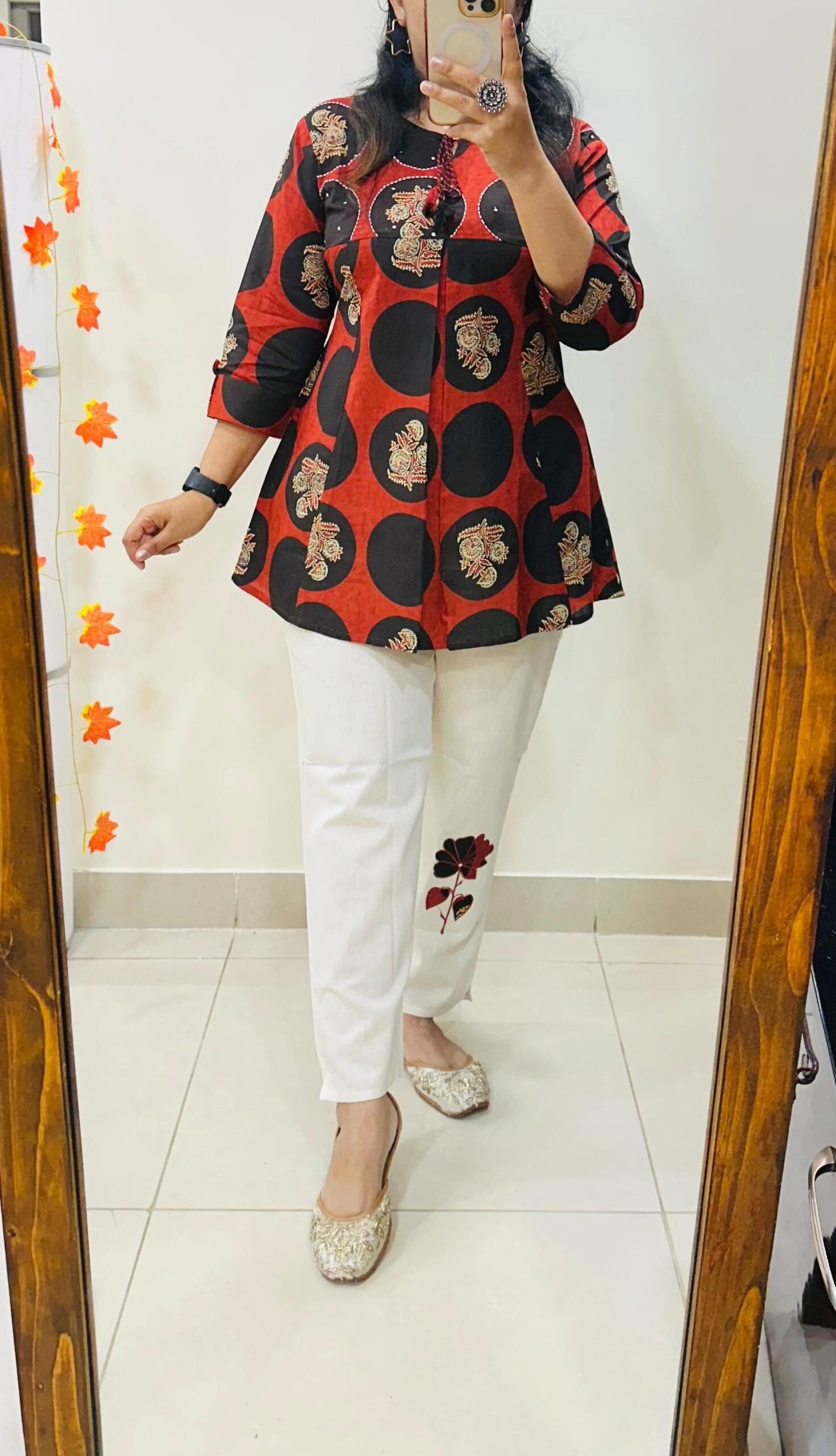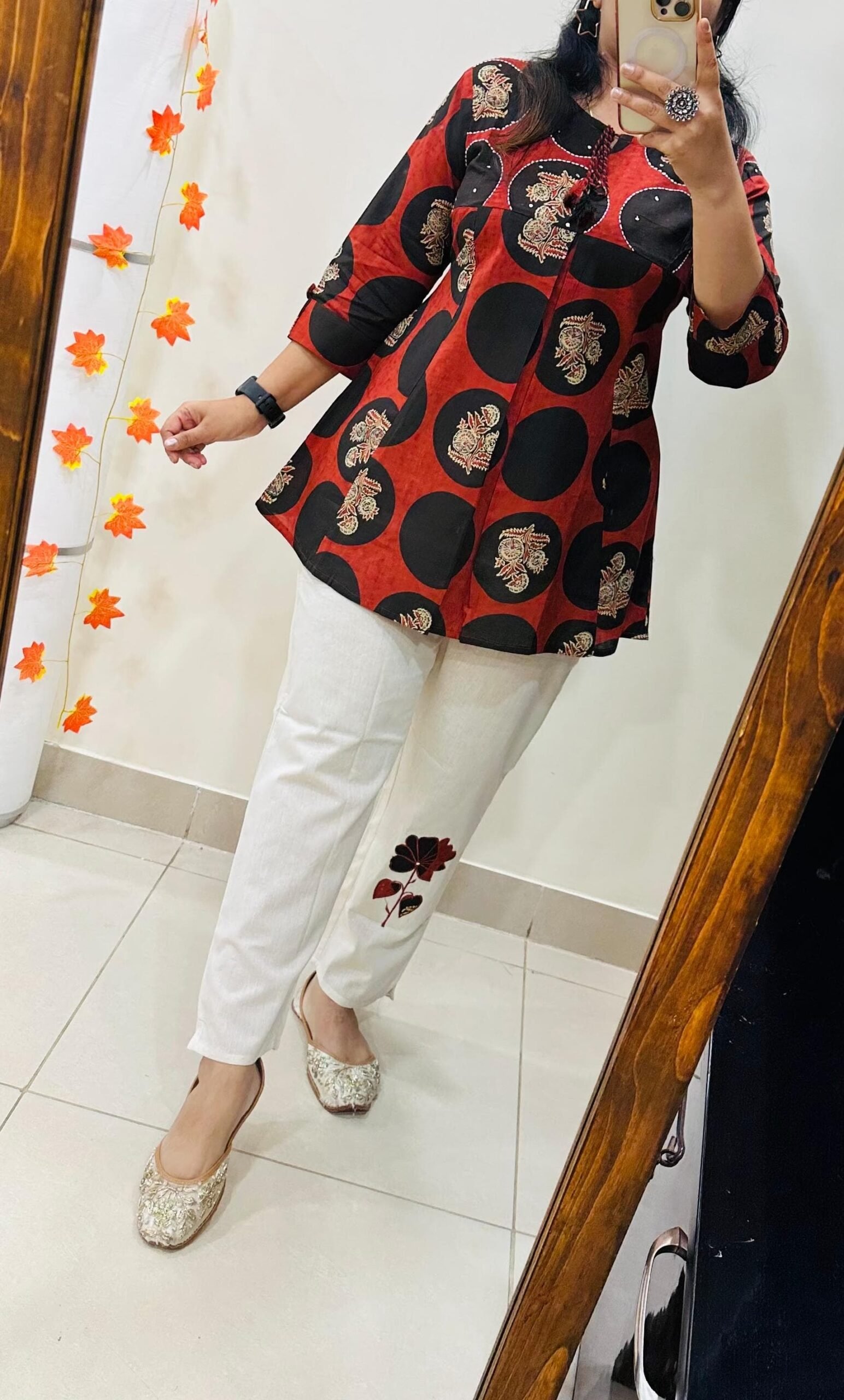 Top Bottom Set with beautiful Applique with embroidery detailing work in Flex Cotton Pant ..