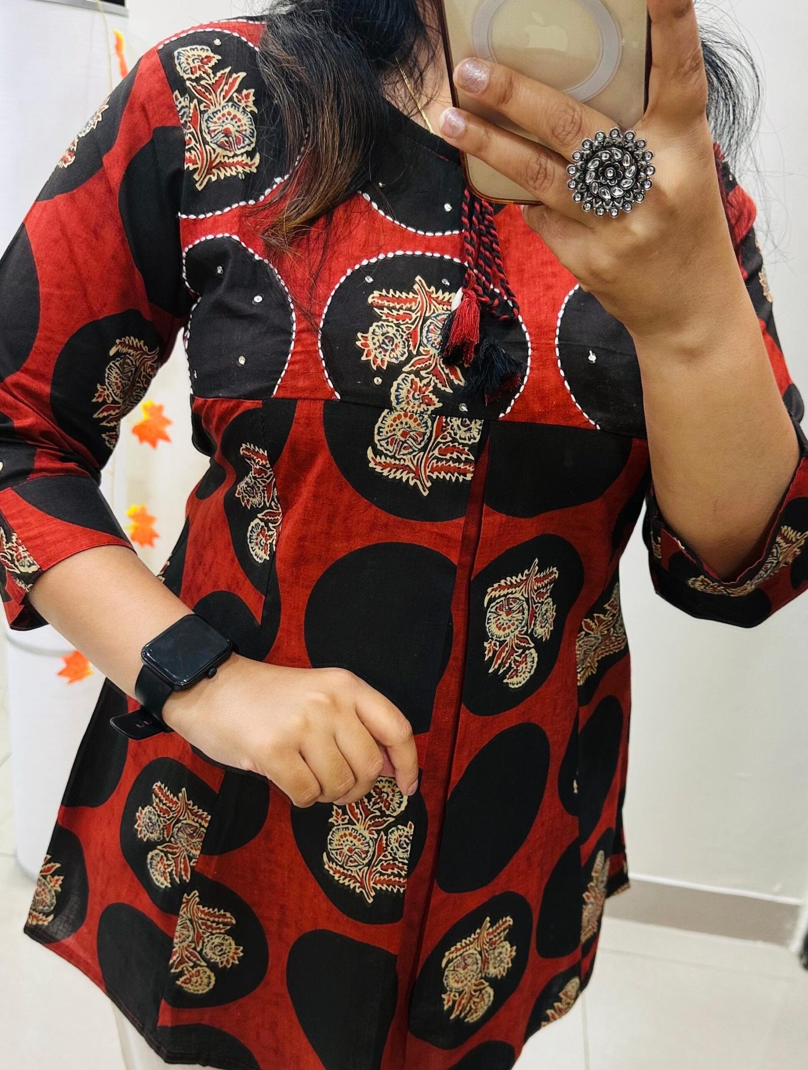 Top With tussel Attached kodi in yoke with sequin detailing in yoke