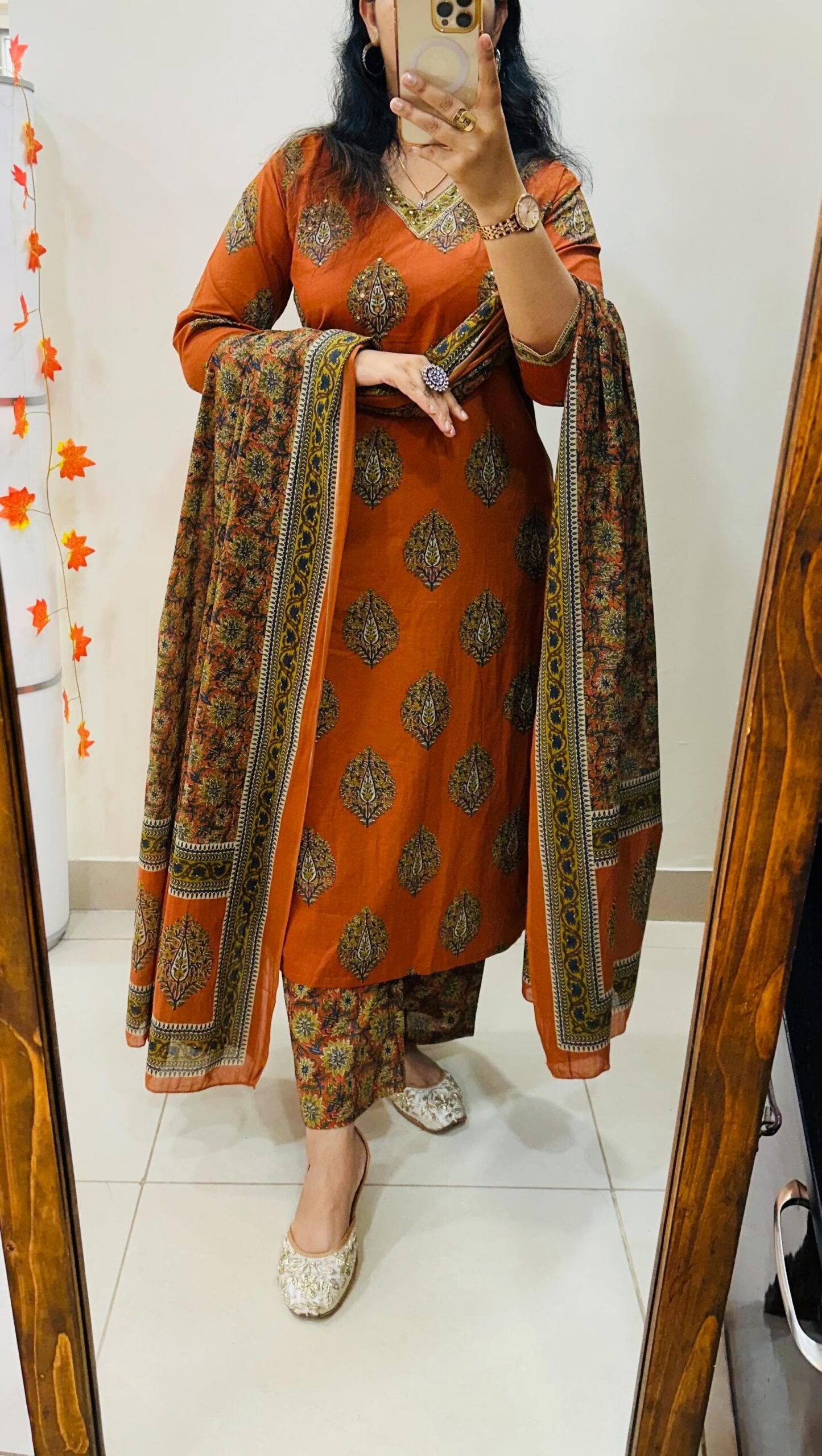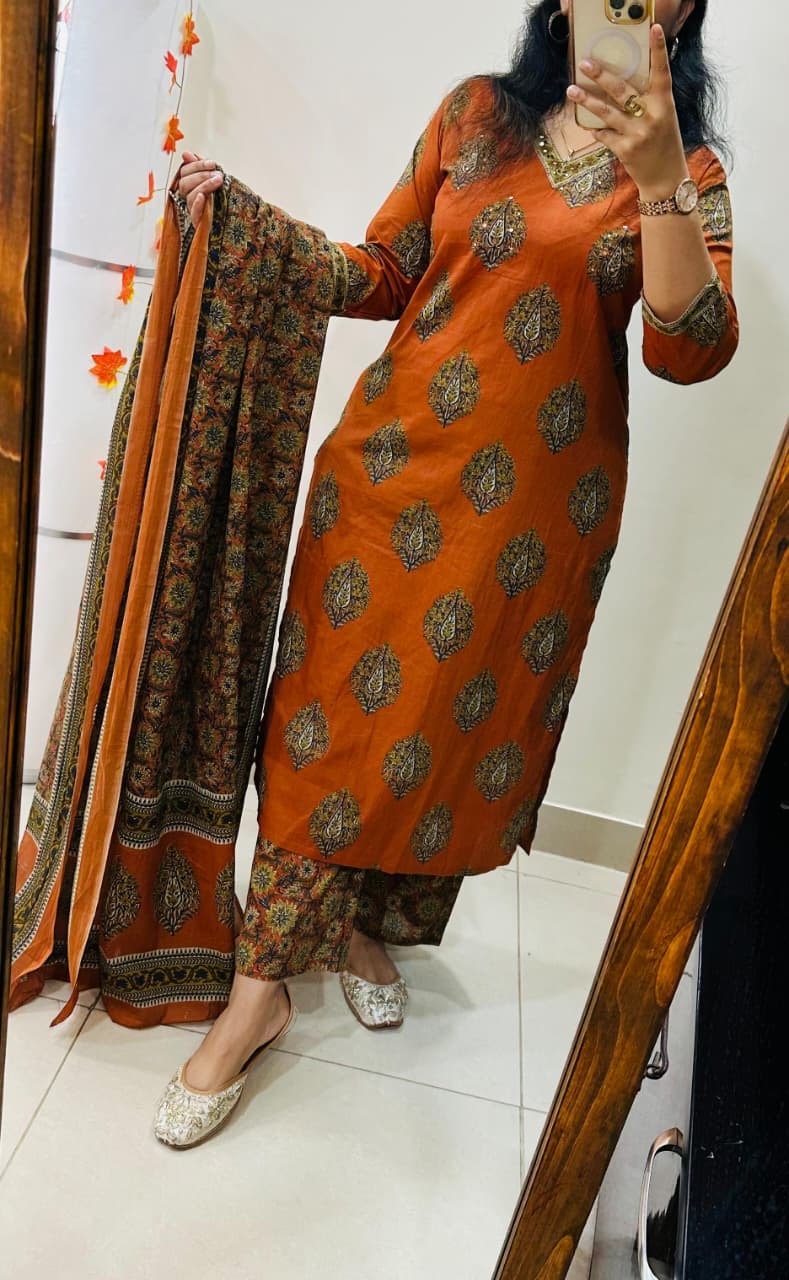 Designer Suit kurti pant dupatta set Premium fine cotton with foil mirror and sequin detailing in yoke paired with fine cotton duppata