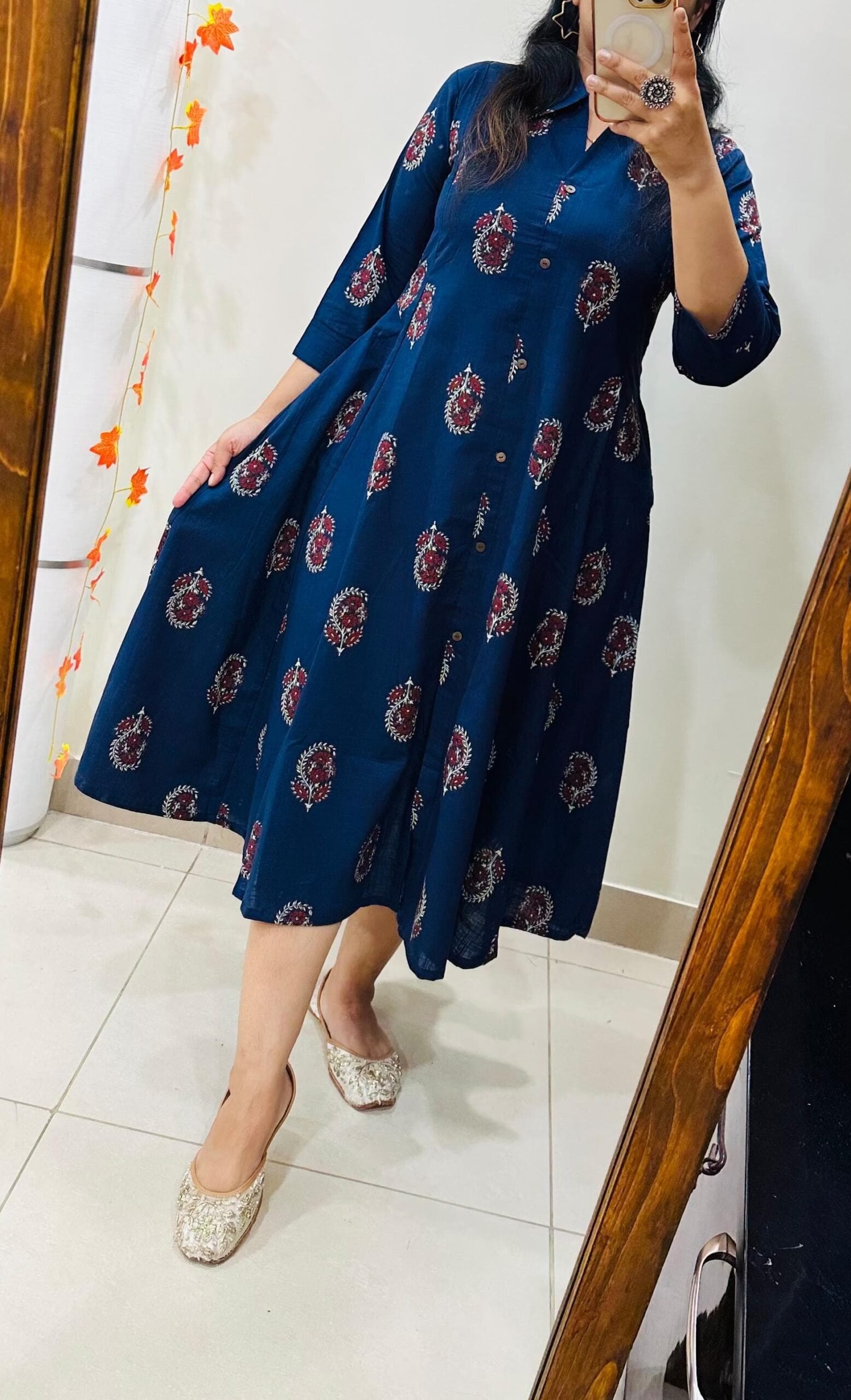 Premium Cotton Panel Cut One Piece Aline Dress Beautiful Print❤️🔥