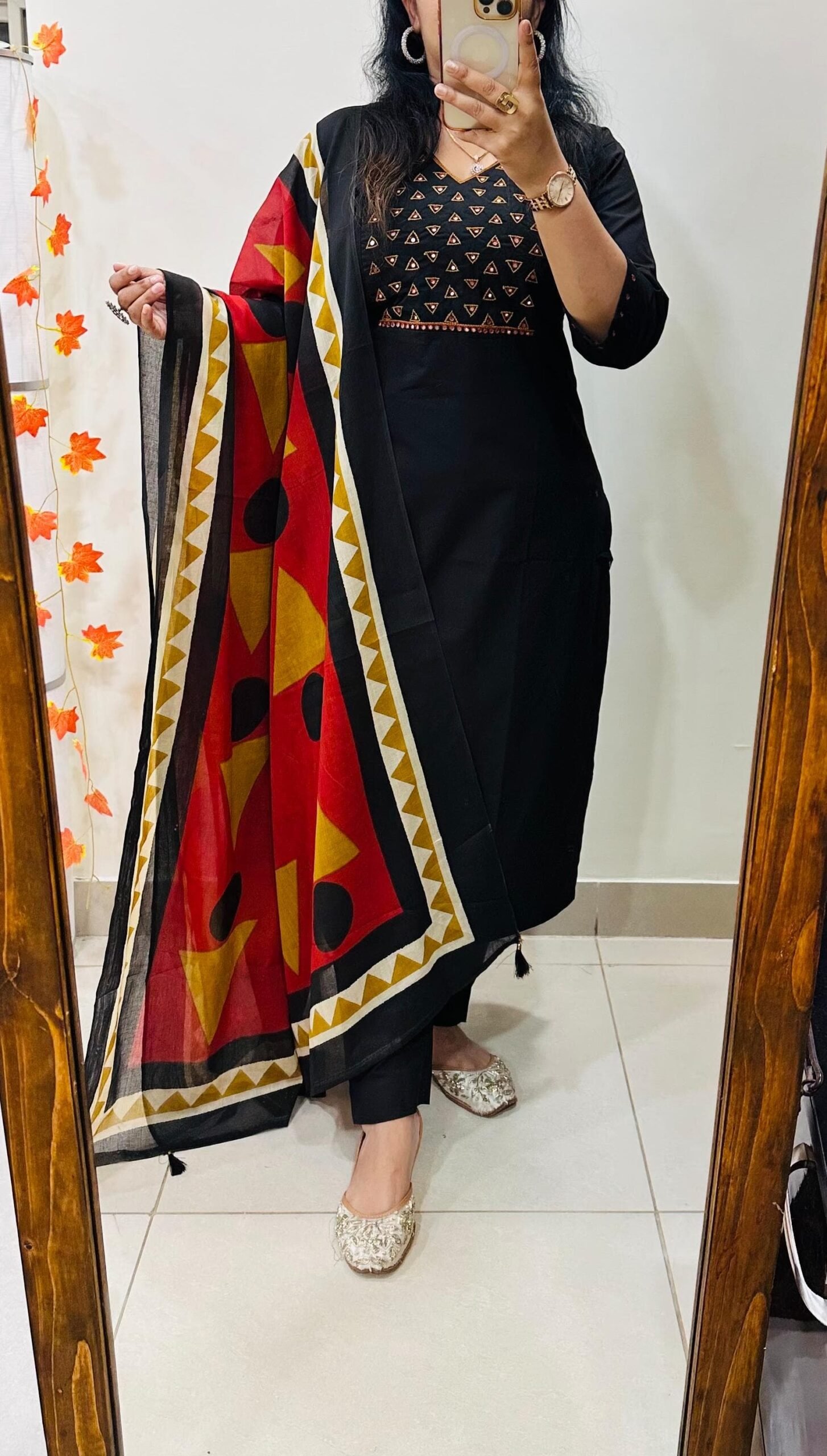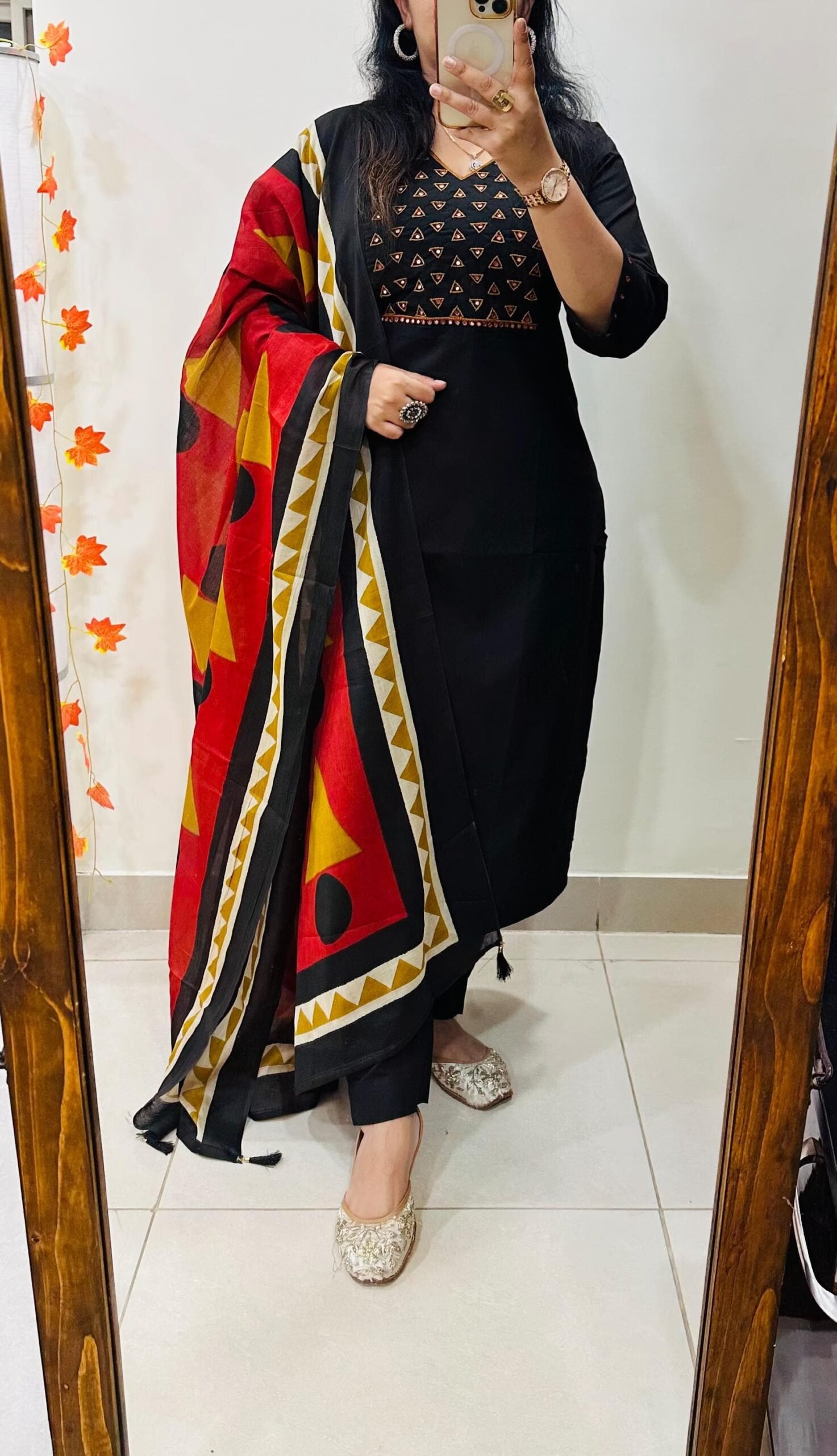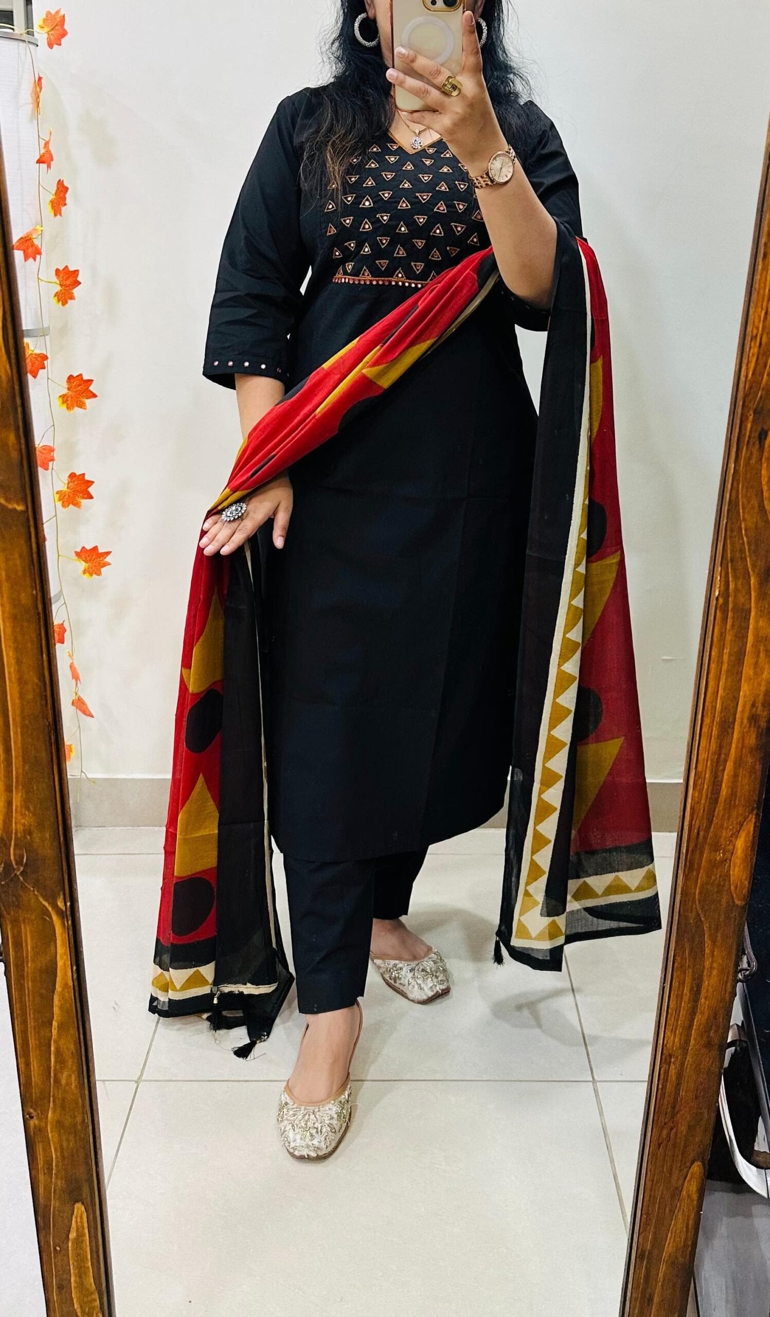 Stylish Ethnic Kurti Pant Set in Rich Cotton with Heavy Embroidery work in yoke sleeves and duppata with tussels