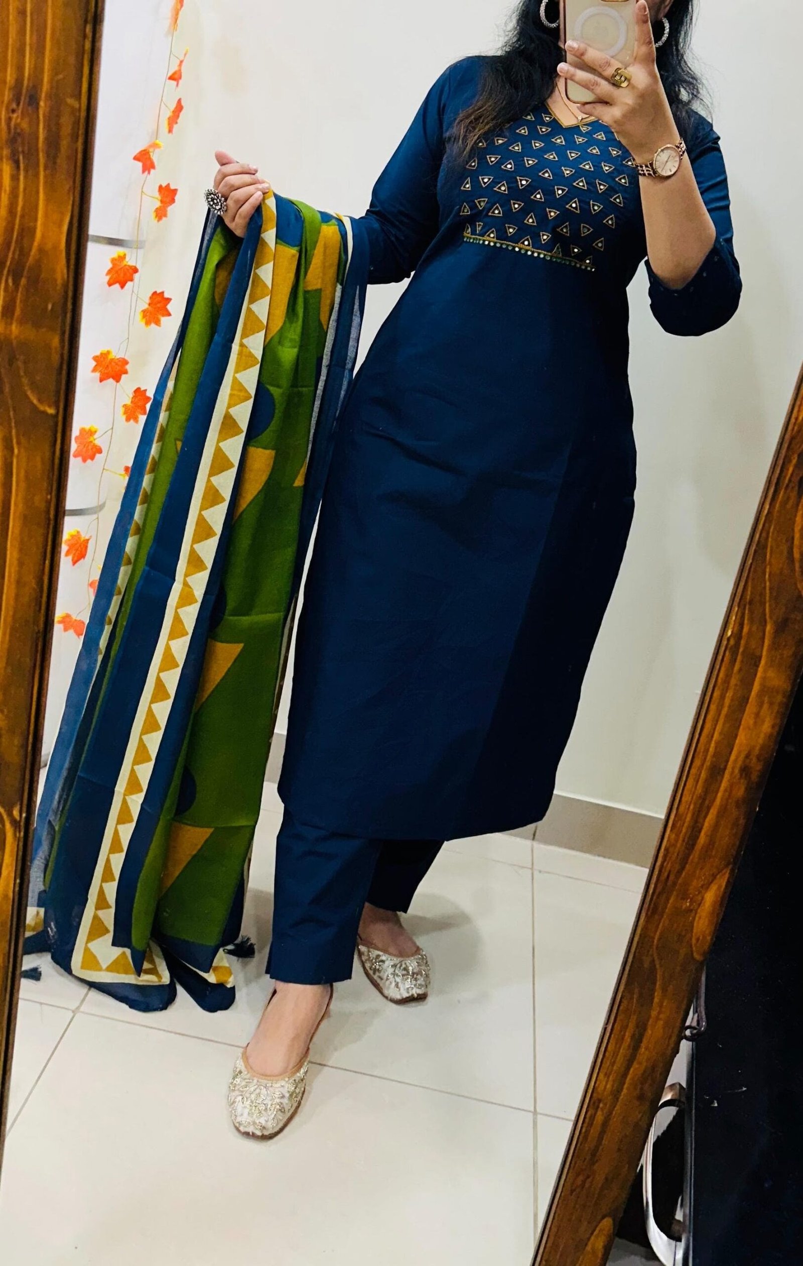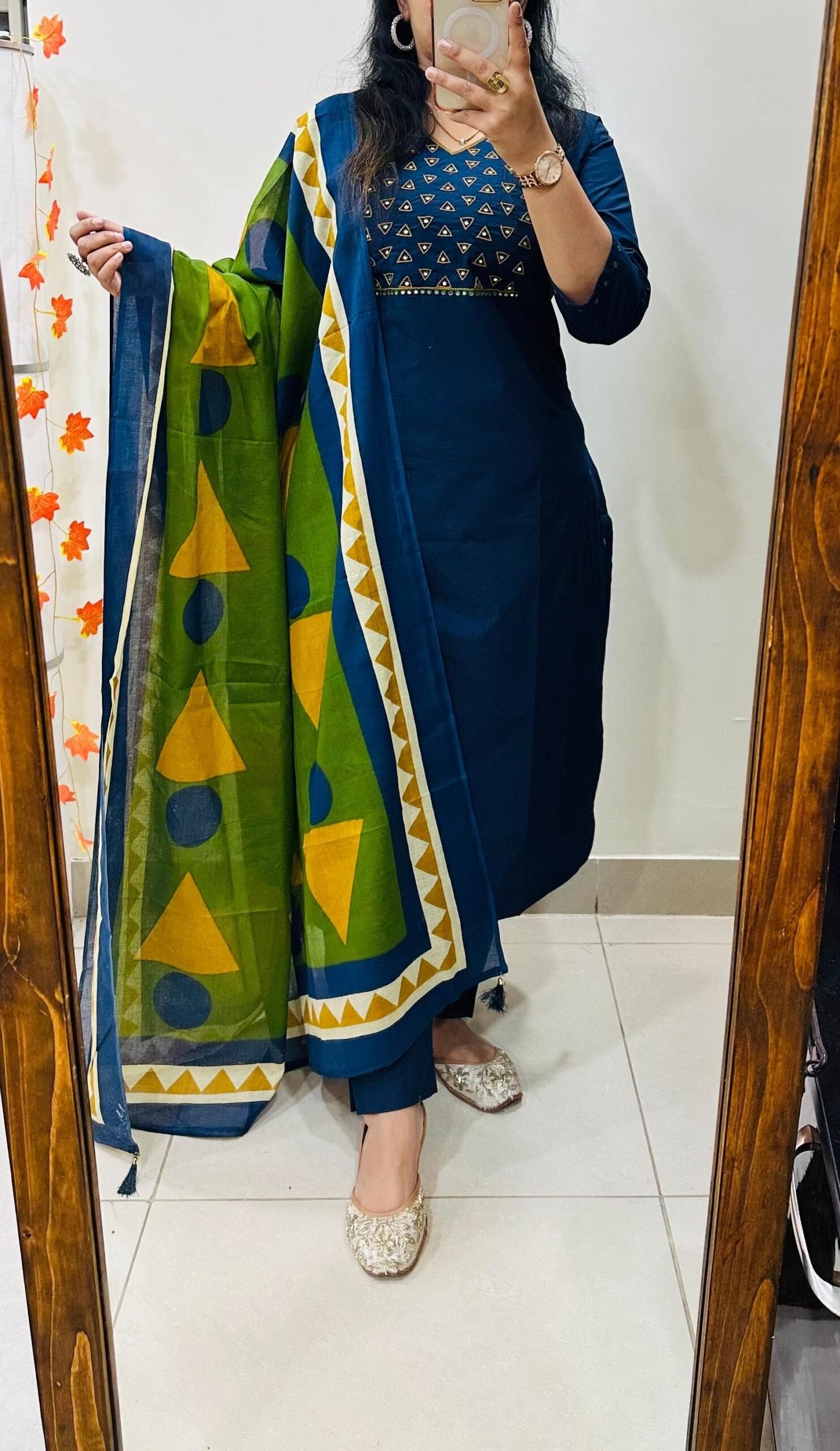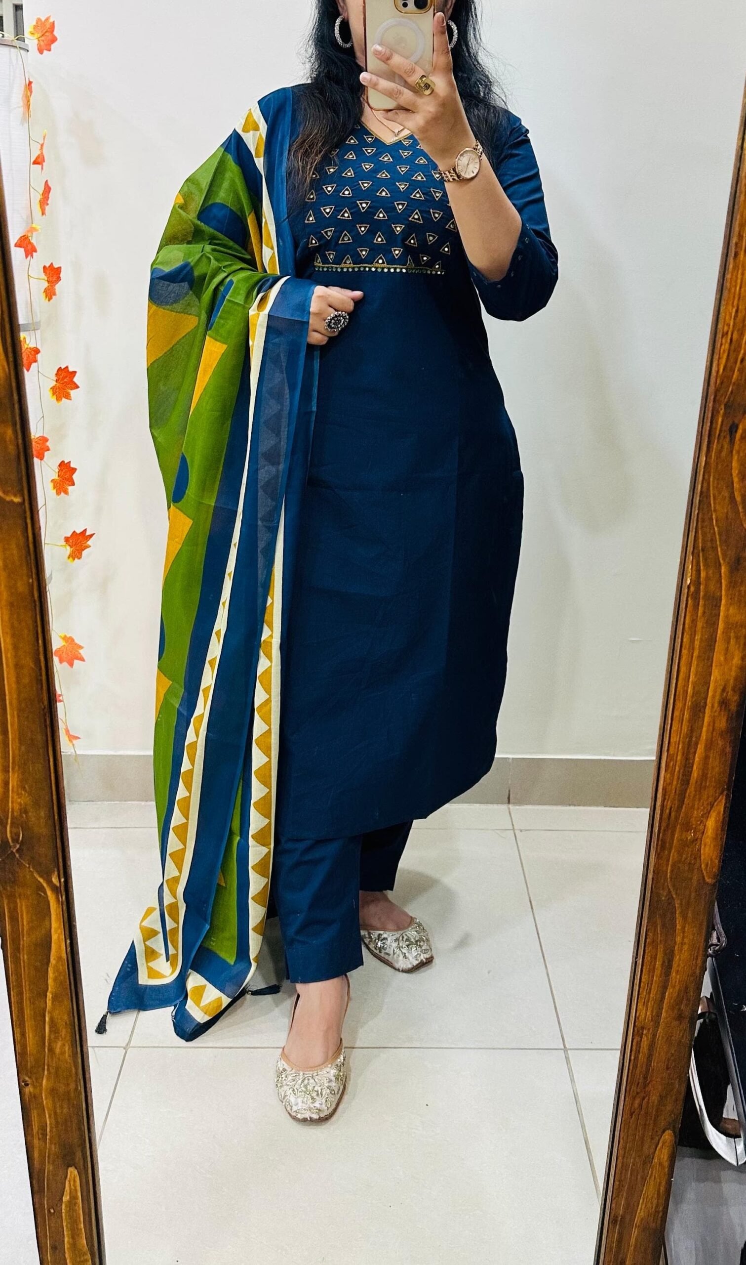 Stylish Ethnic Kurti Pant Set in Rich Cotton with Heavy Embroidery work in yoke sleeves and duppata with tussels