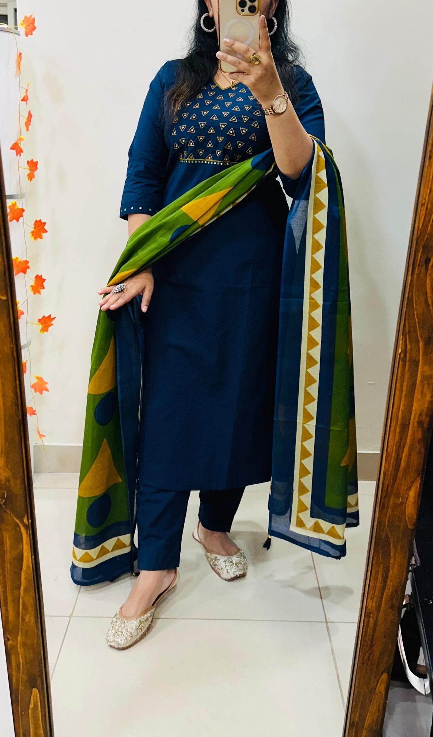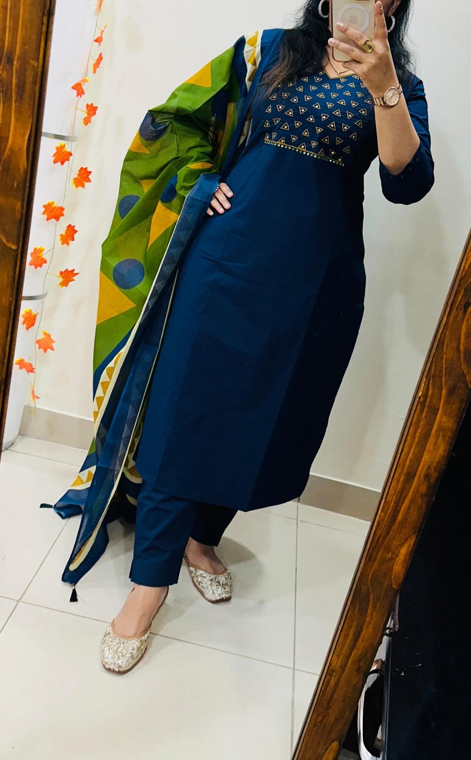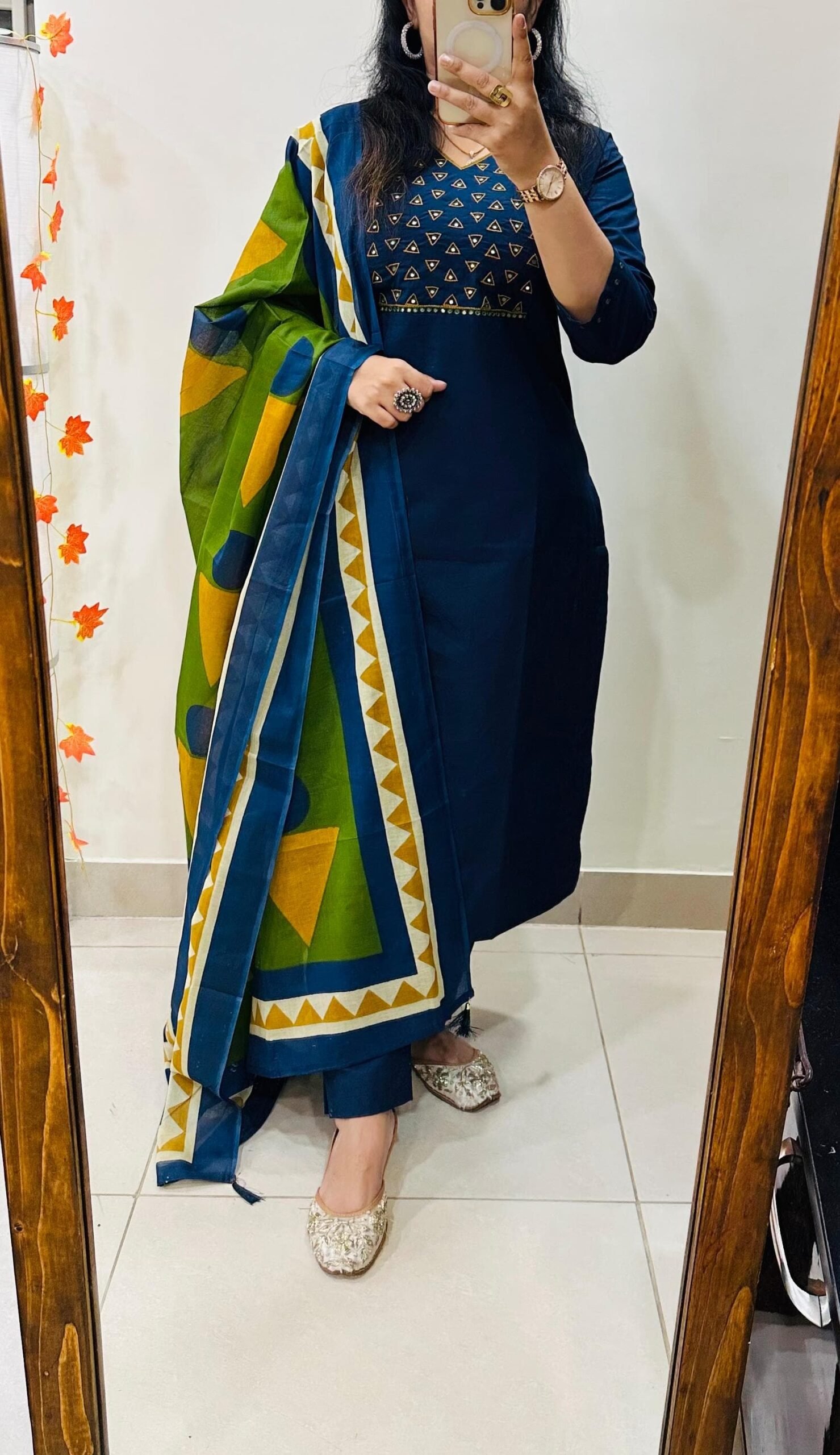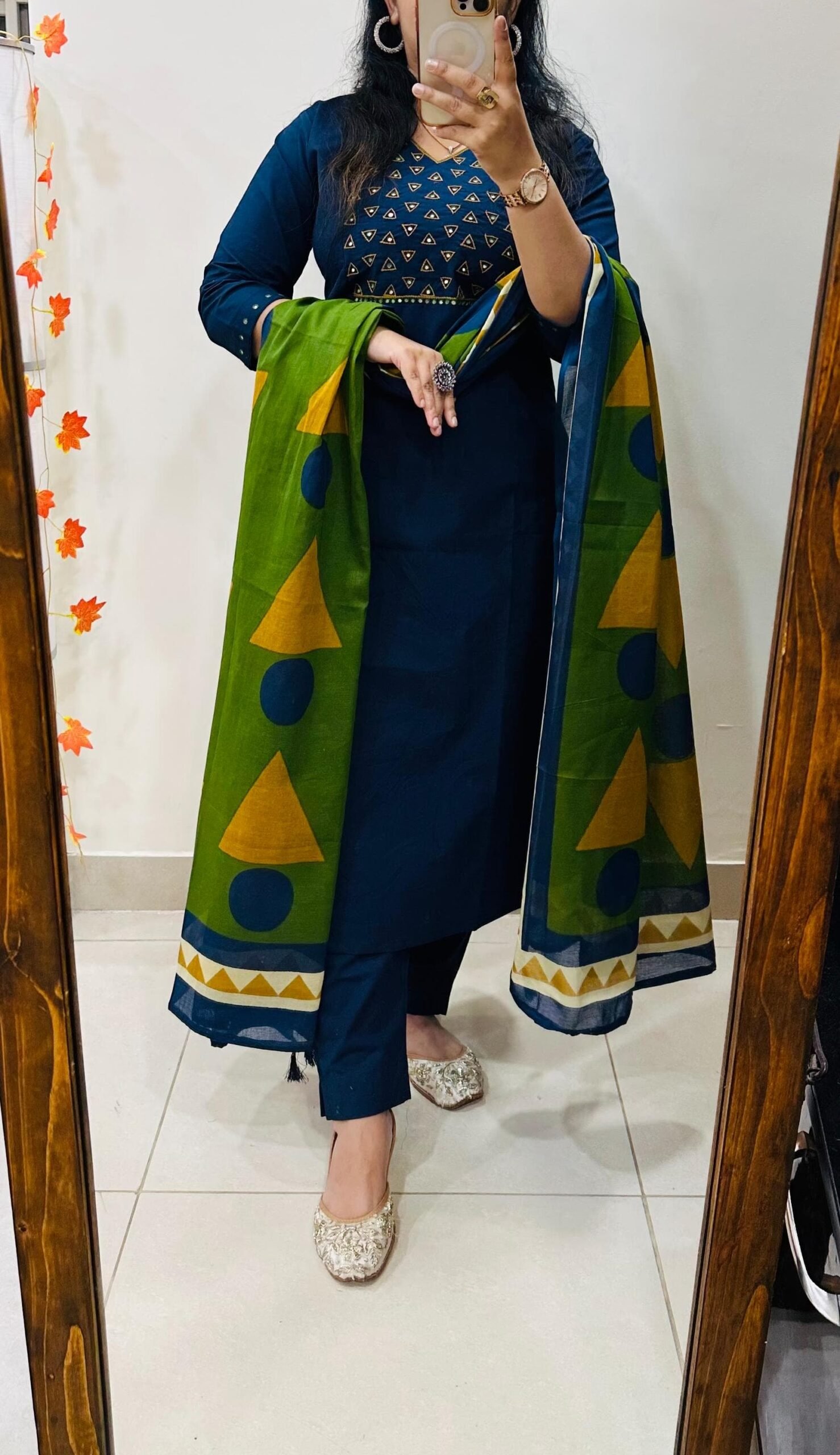 Stylish Ethnic Kurti Pant Set in Rich Cotton with Heavy Embroidery work in yoke sleeves and duppata with tussels