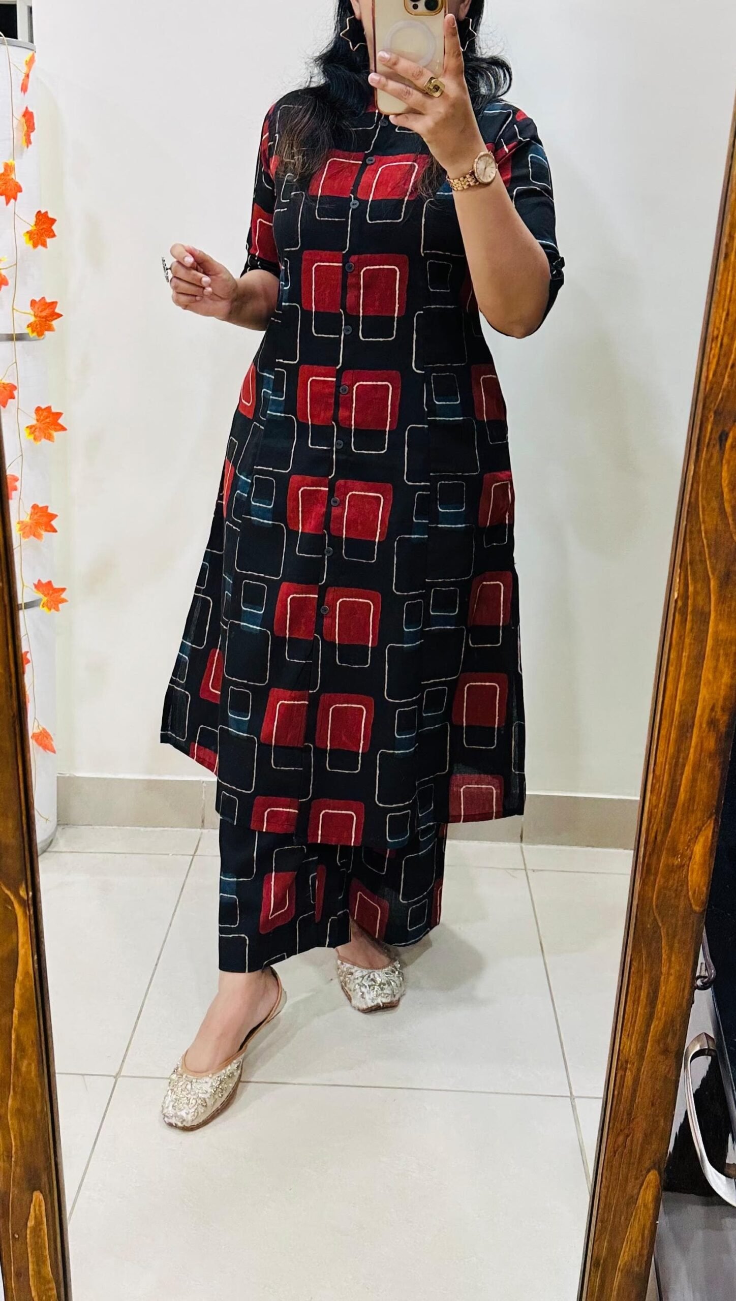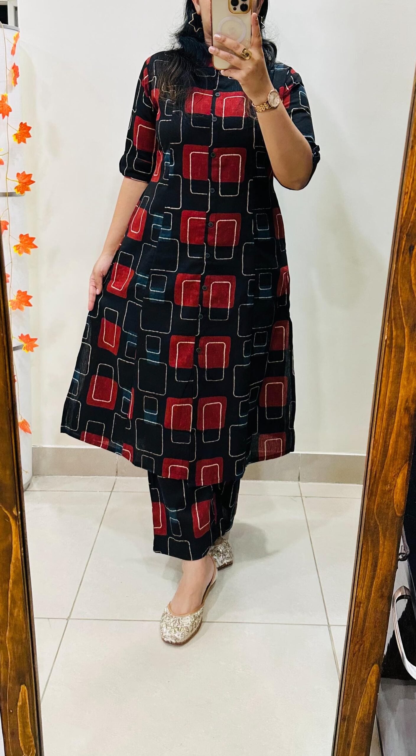 Launching Designer Coord set in Aline kurti with side slit pattern paired with Ankle length pant in Fine Cotton Flex giving perfect outfit and deliberate choice about your look…..