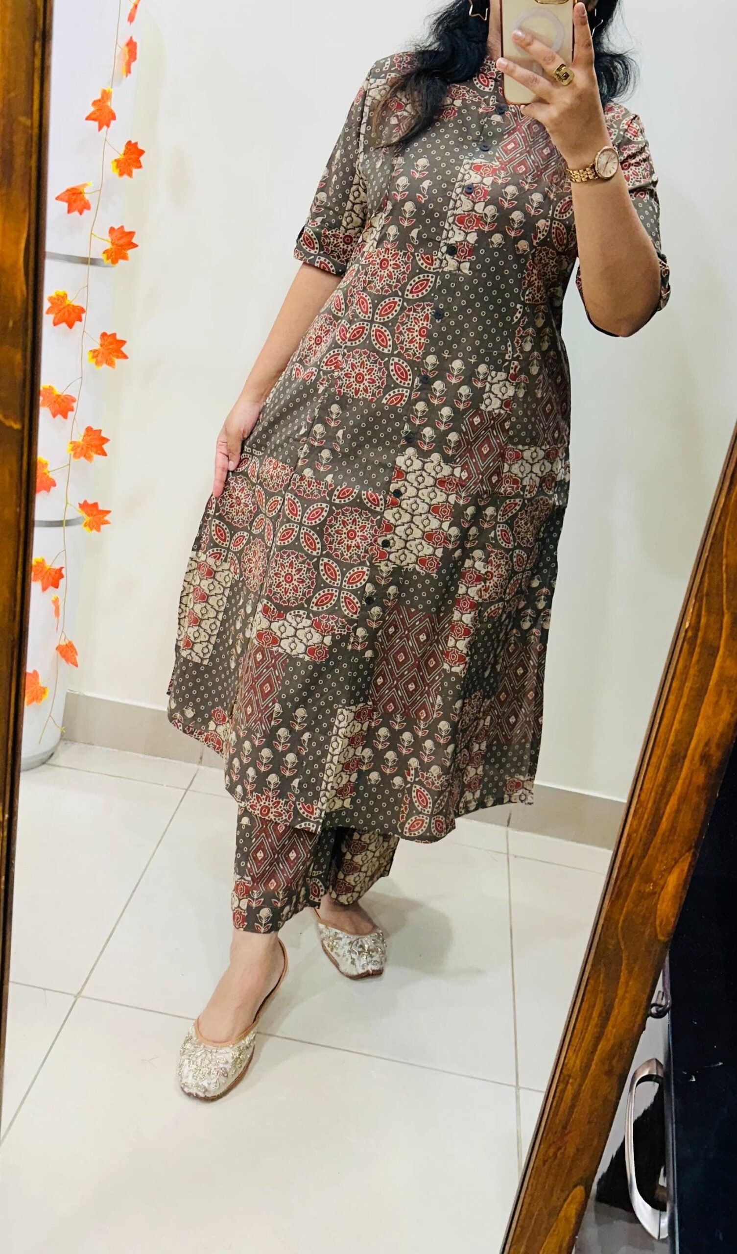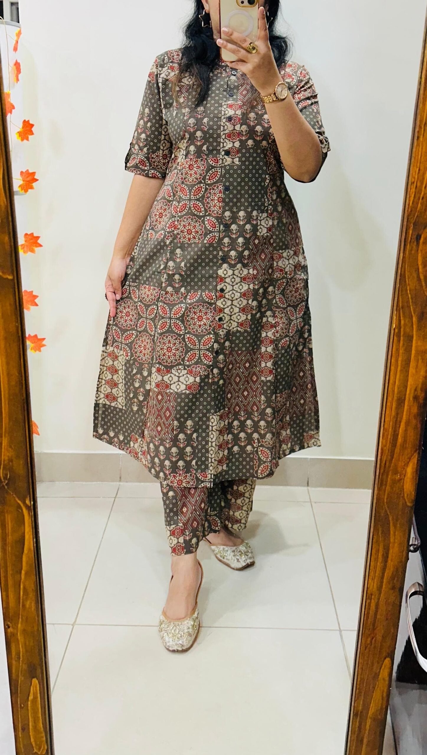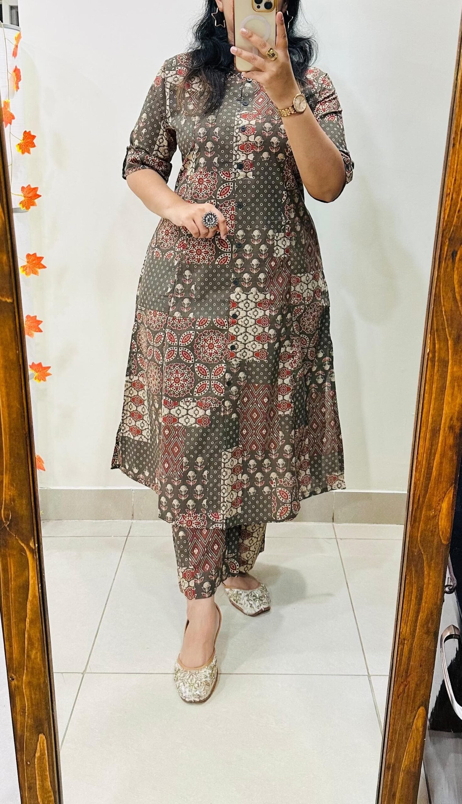 Launching Designer Coord set in Aline kurti with side slit pattern paired with Ankle length pant in Fine Cotton giving perfect outfit and deliberate choice about your look…..
