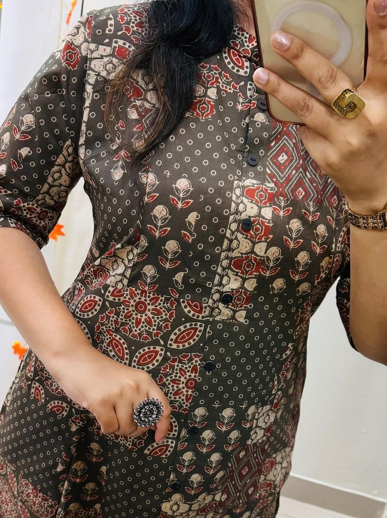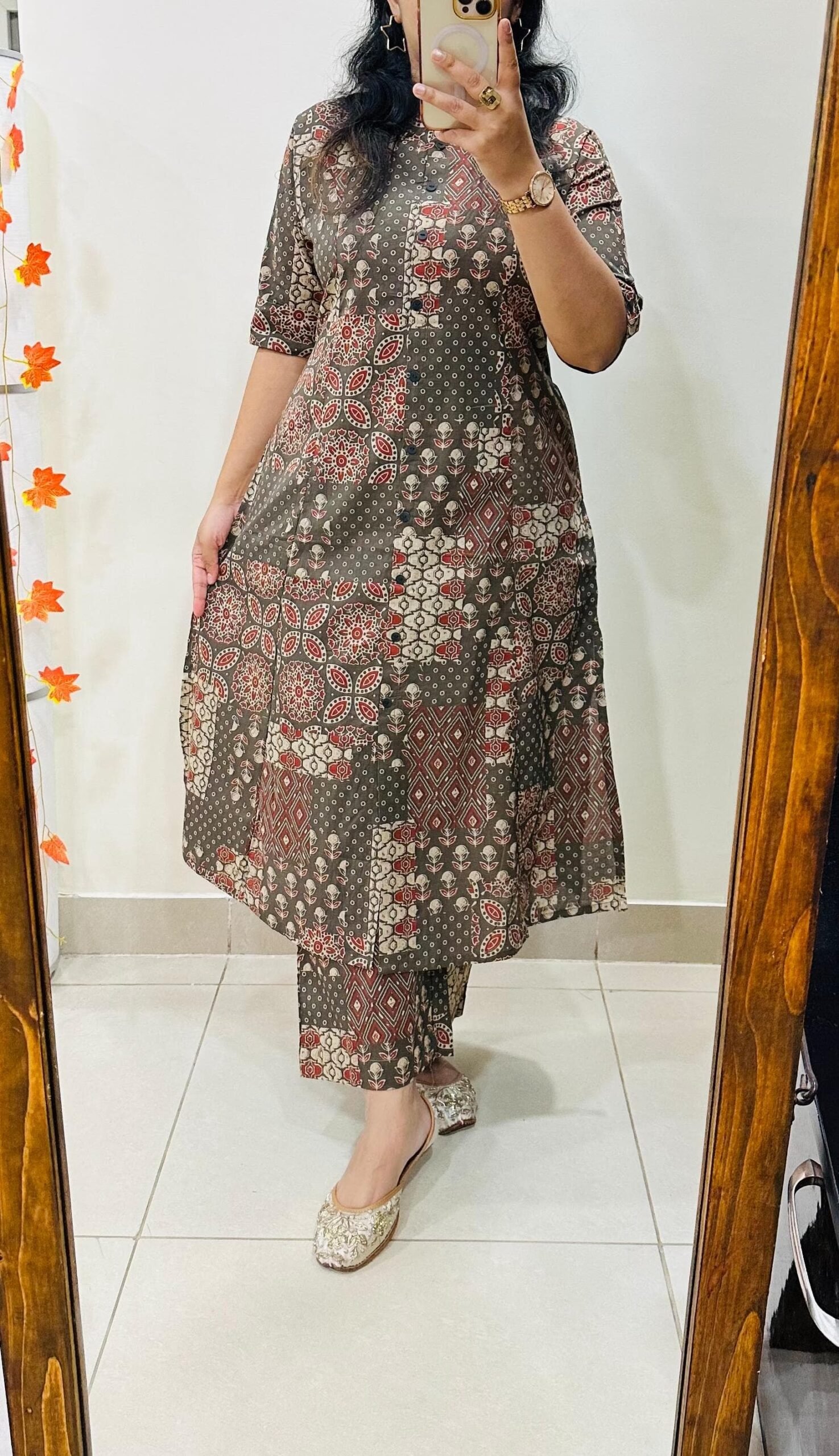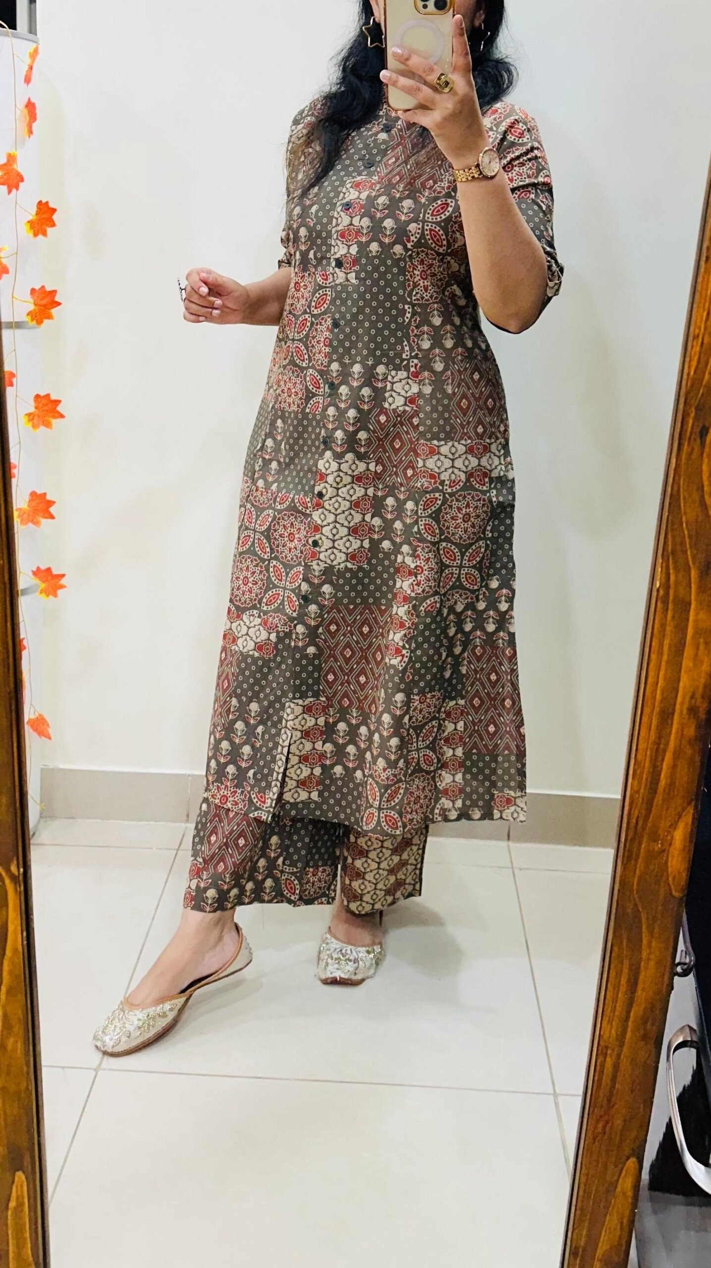 Launching Designer Coord set in Aline kurti with side slit pattern paired with Ankle length pant in Fine Cotton giving perfect outfit and deliberate choice about your look…..