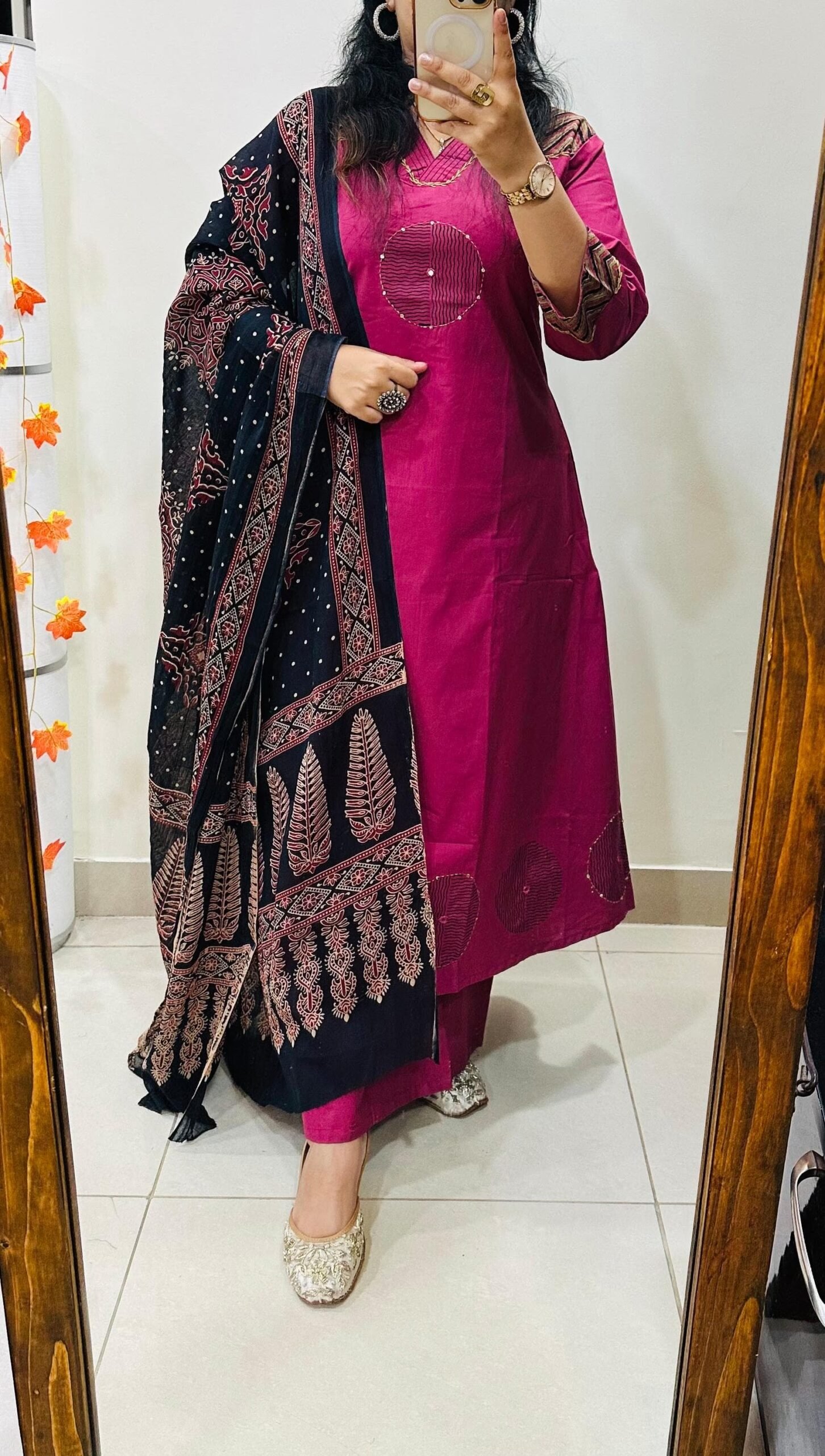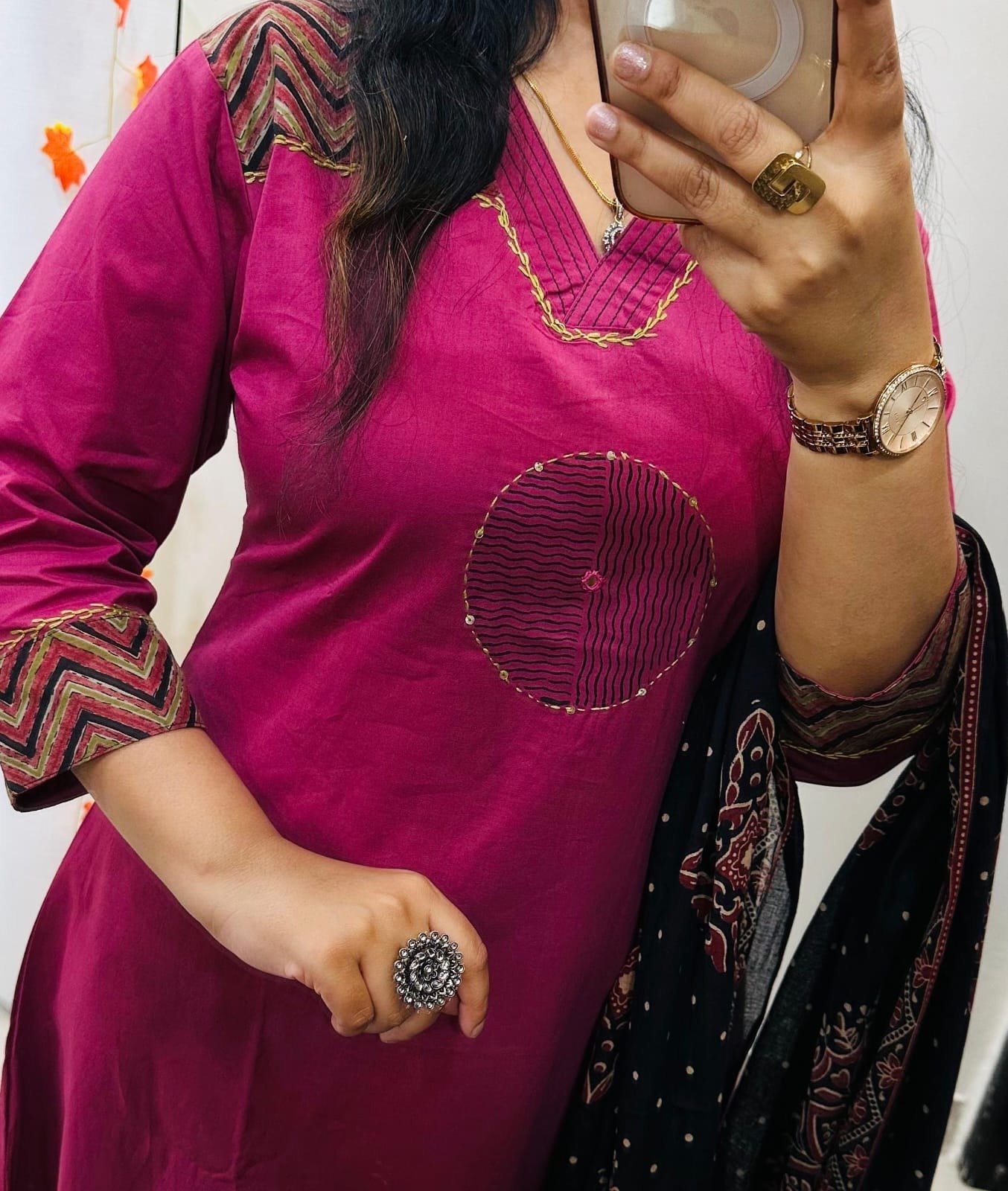 Beautiful kurti palazzo dupatta set in Premium Dhabu Cotton with beautiful sequin thread detailing and real mirror work with azrakh cotton dupatta