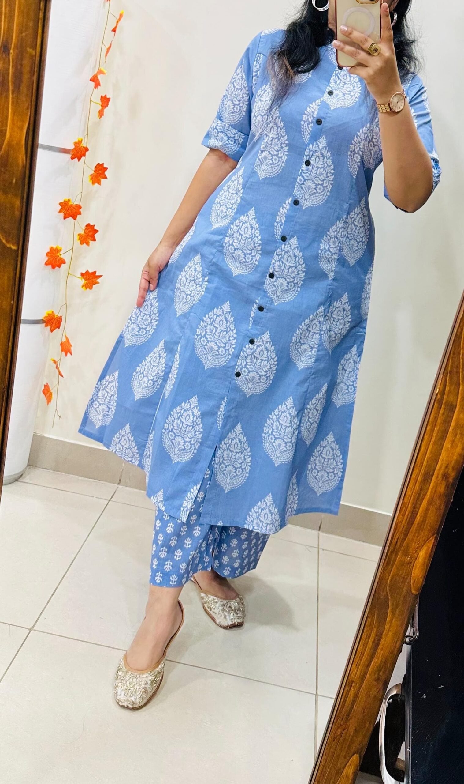 Launching Designer Coord set in Aline kurti with side slit pattern paired with Ankle length pant in Fine Cotton giving perfect outfit and deliberate choice about your look…..
