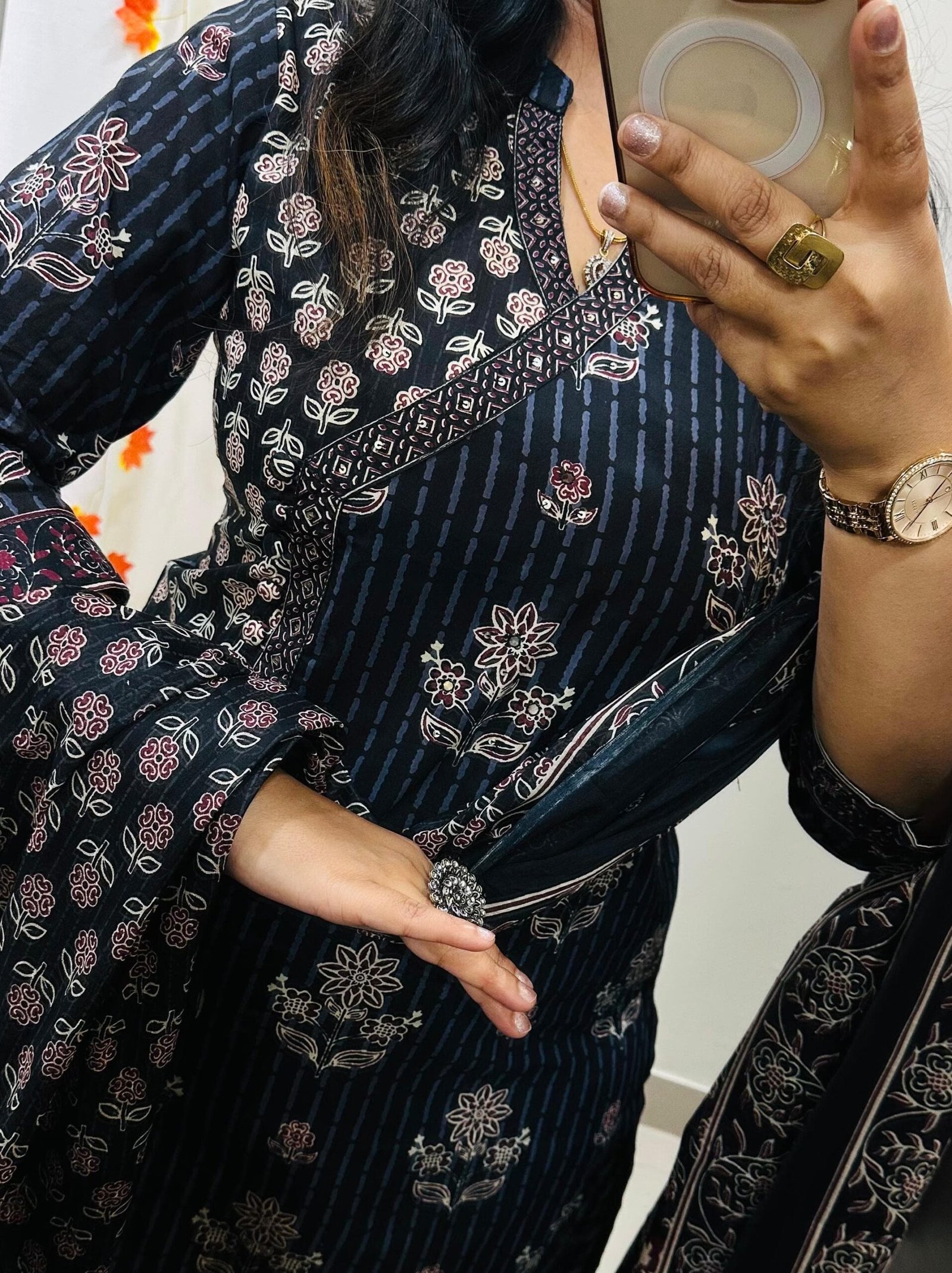 Beautiful Designer Angrakha kurti pant dupatta set in Premium Fine Cotton with sequin detailing in yoke paired with fine azrakh cotton dupatta