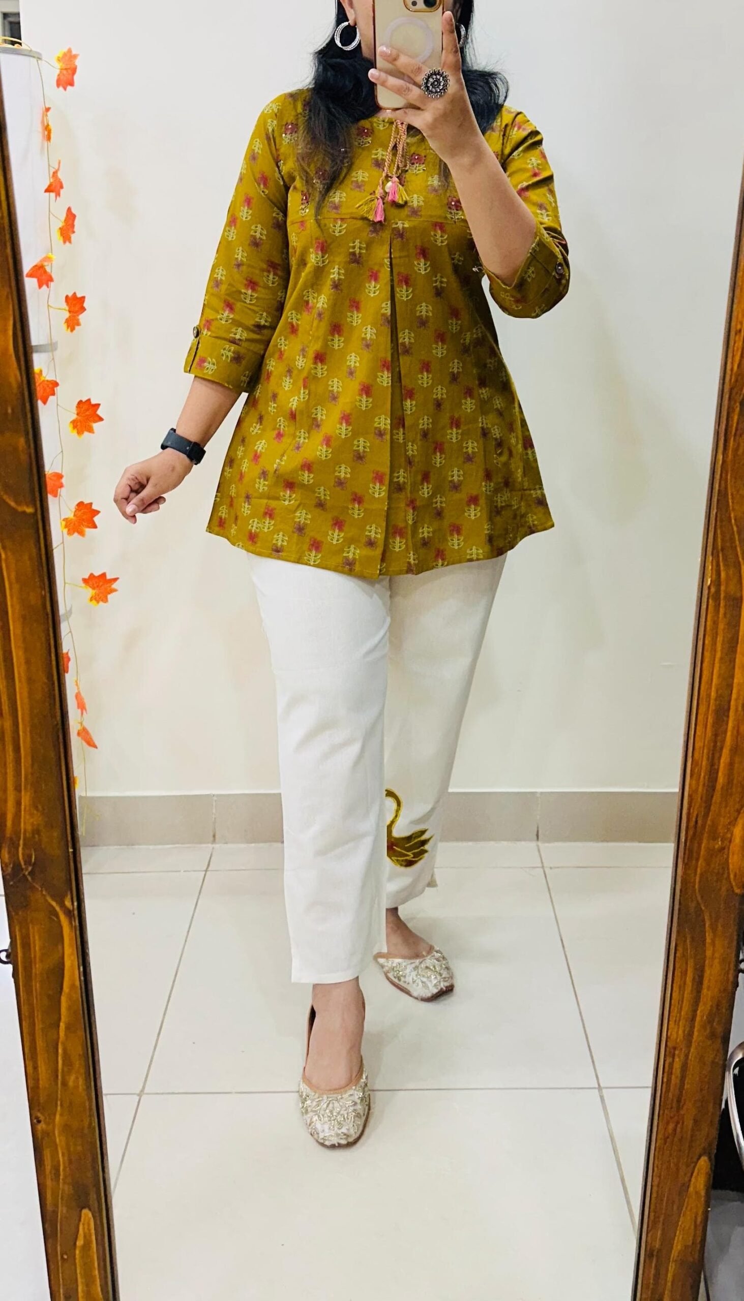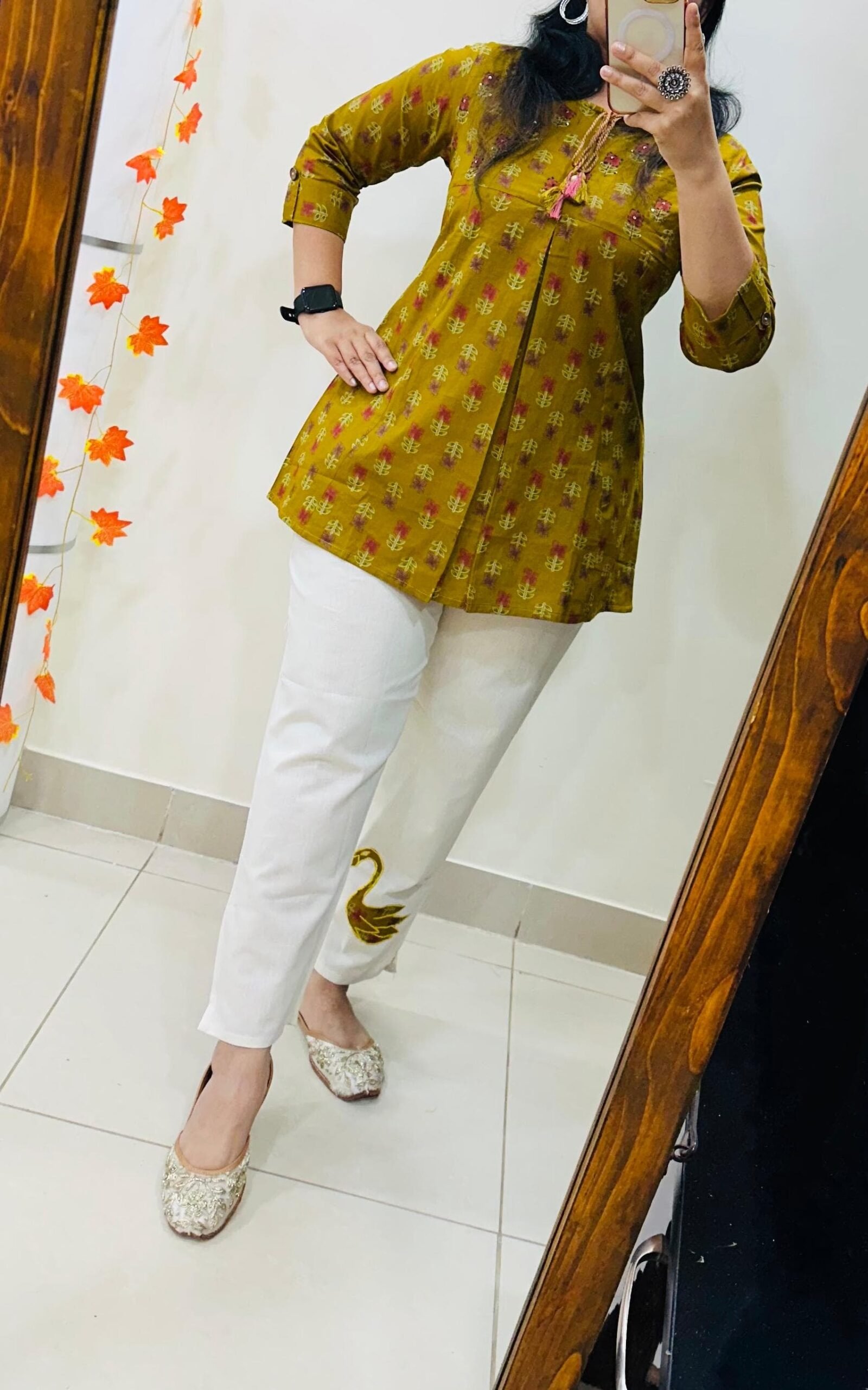 Launching Designer Coord set in Aline kurti with side slit pattern paired with Ankle length pant in Fine Cotton giving perfect outfit and deliberate choice about your look…..