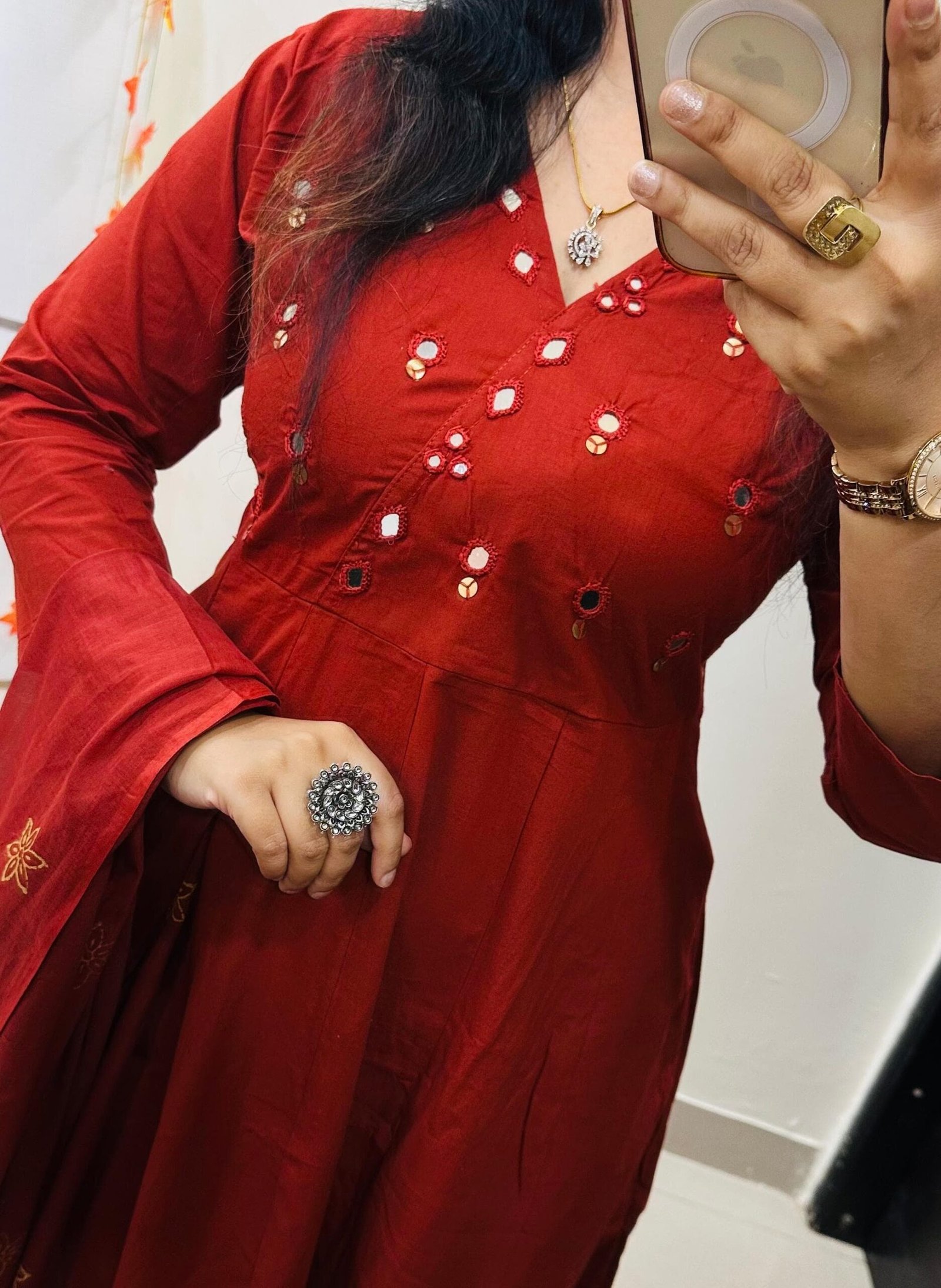 Beautiful kurti palazzo dupatta set in Premium Dhabu Cotton with beautiful Real mirror work and sequin detailing with thread with cotton dupatta