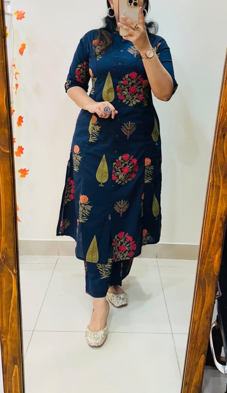 Launching Designer Coord set in Aline kurti with side slit pattern paired with Ankle length pant in Fine Cotton giving perfect outfit and deliberate choice about your look…..