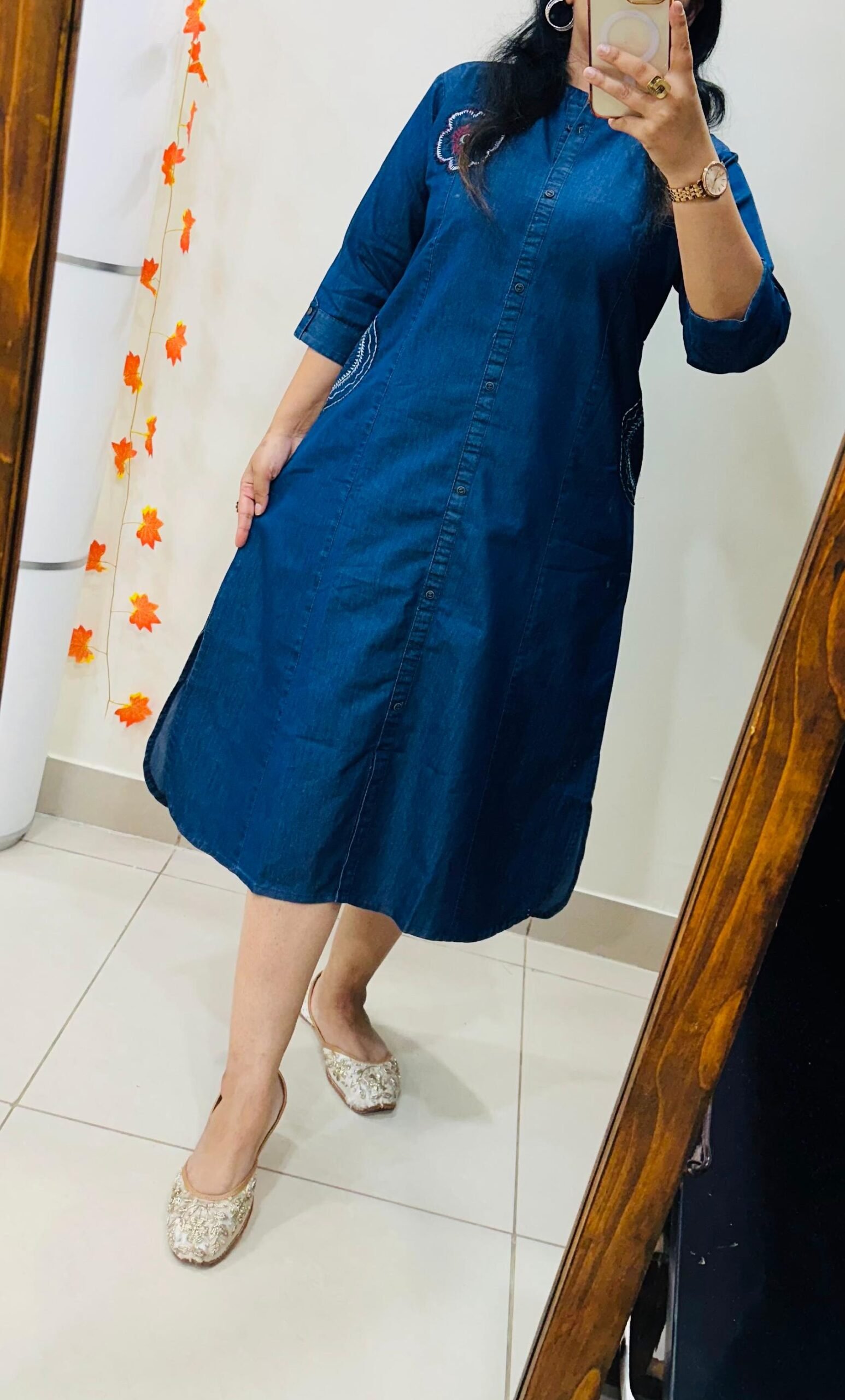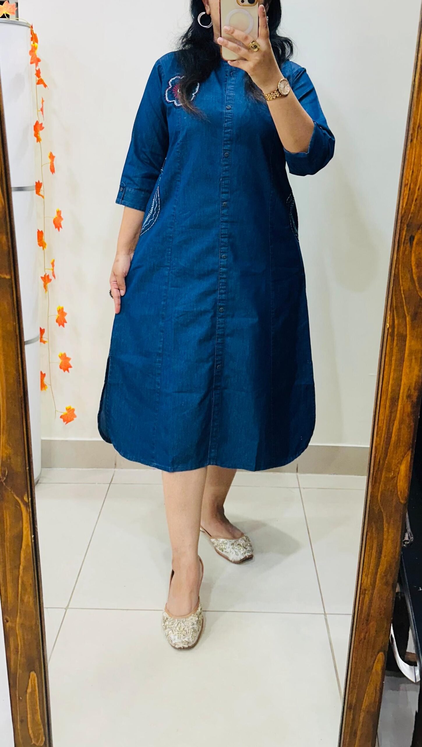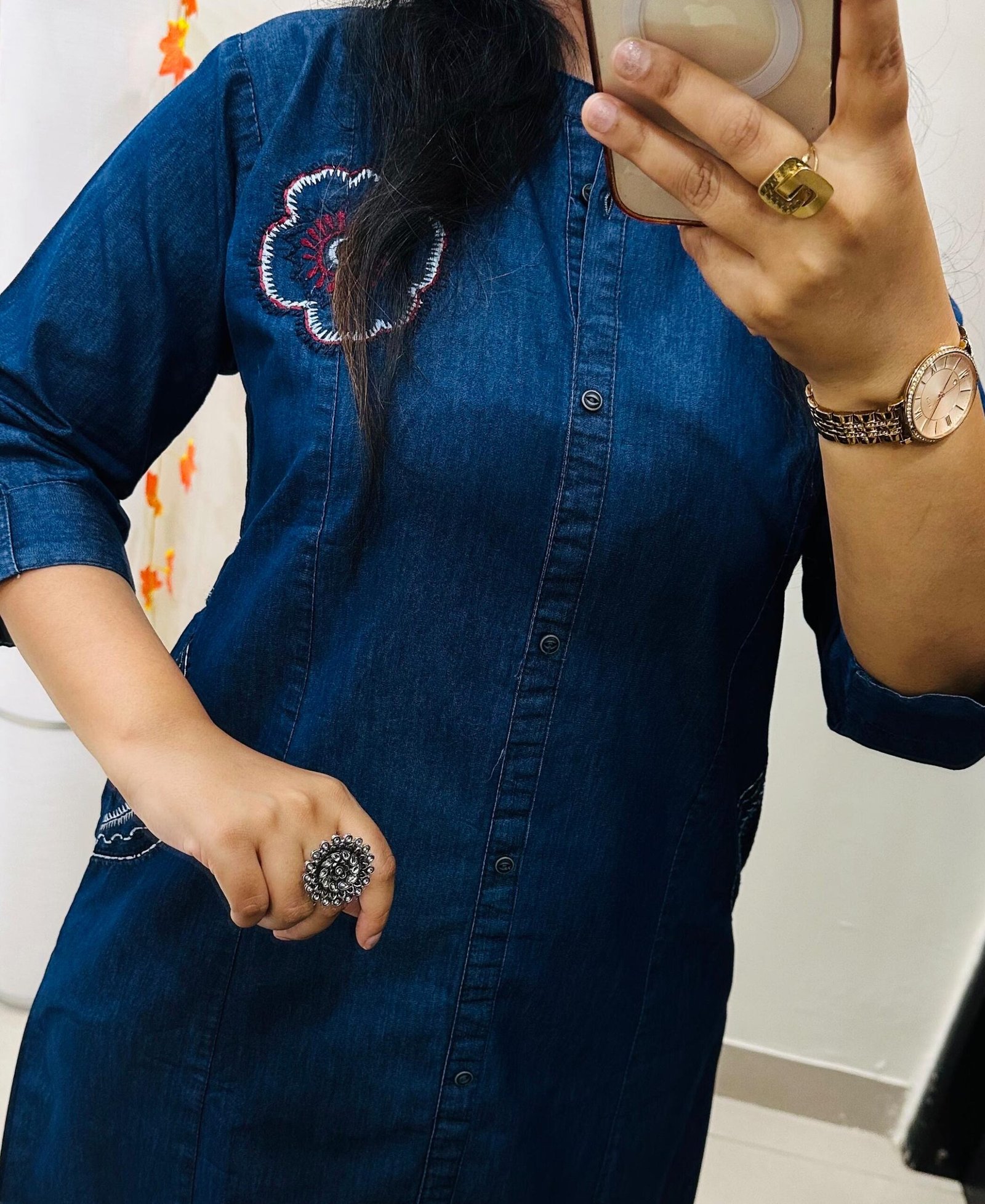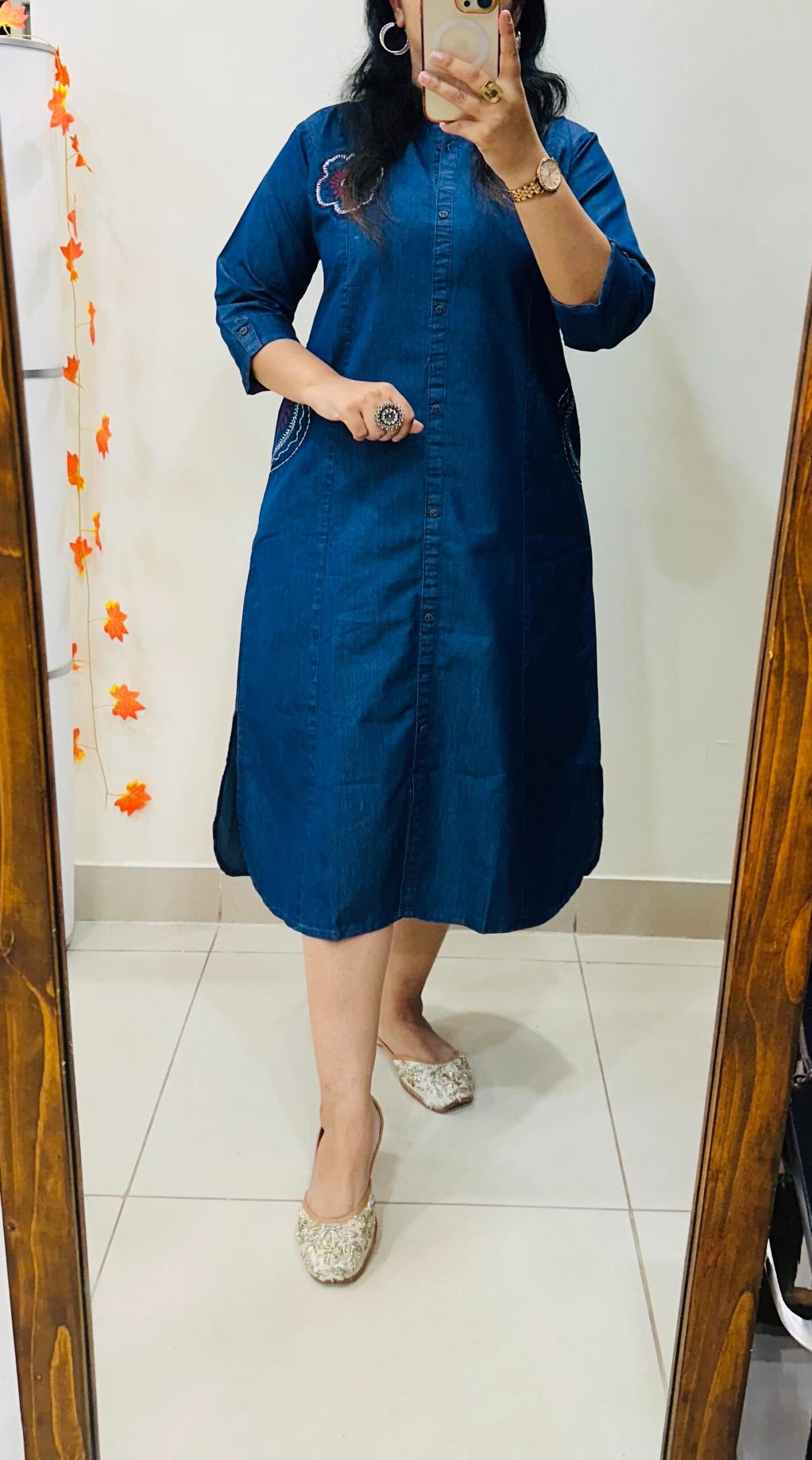 🦋 Premium Denim tunic with beautiful embroidery 🪡 🧵 with show buttons…