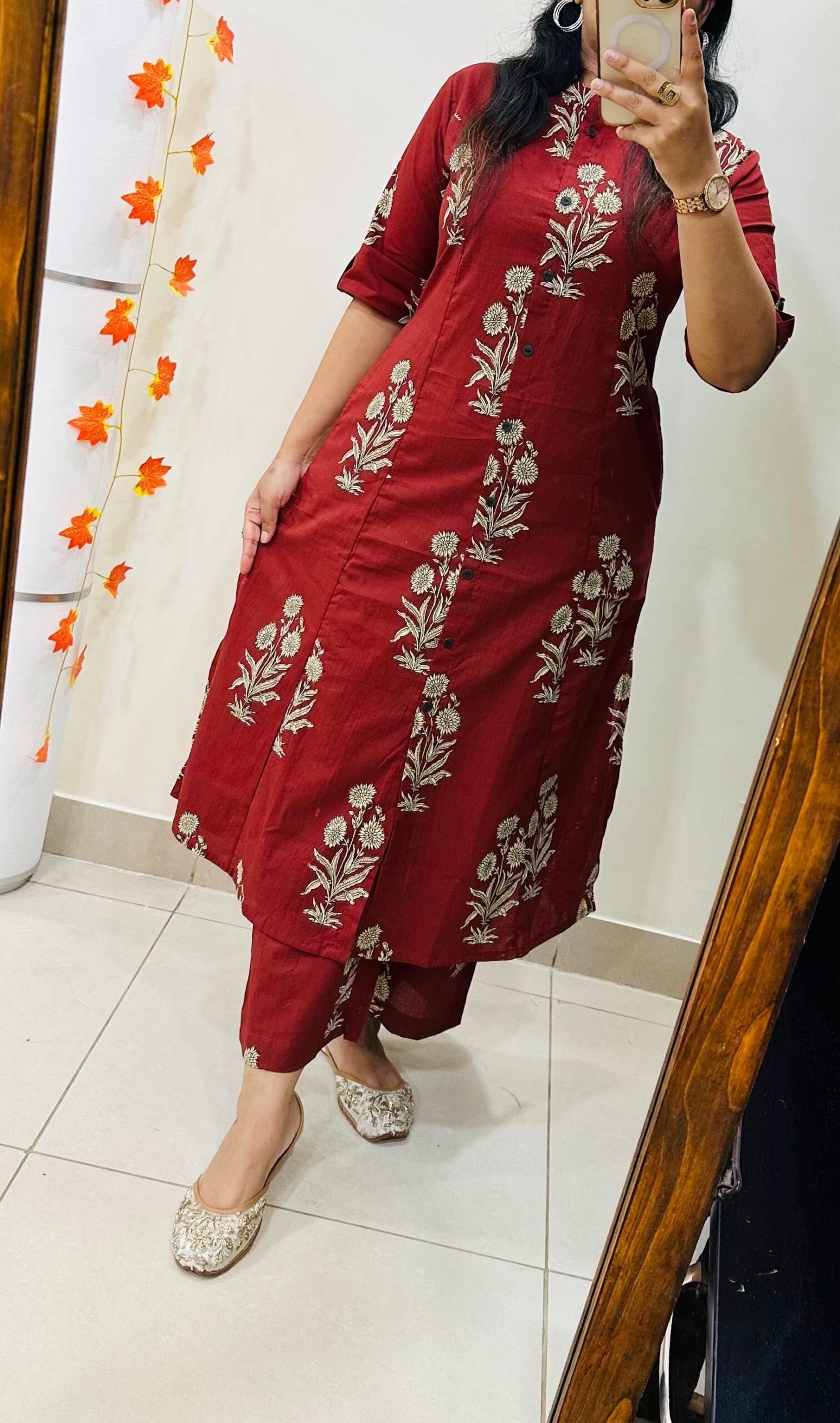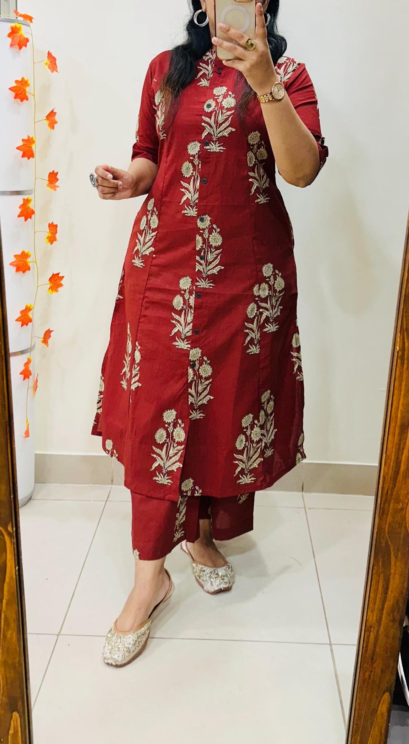 Launching Designer Coord set in Aline kurti with side slit pattern paired with Ankle length pant in Fine Cotton giving perfect outfit and deliberate choice about your look…..