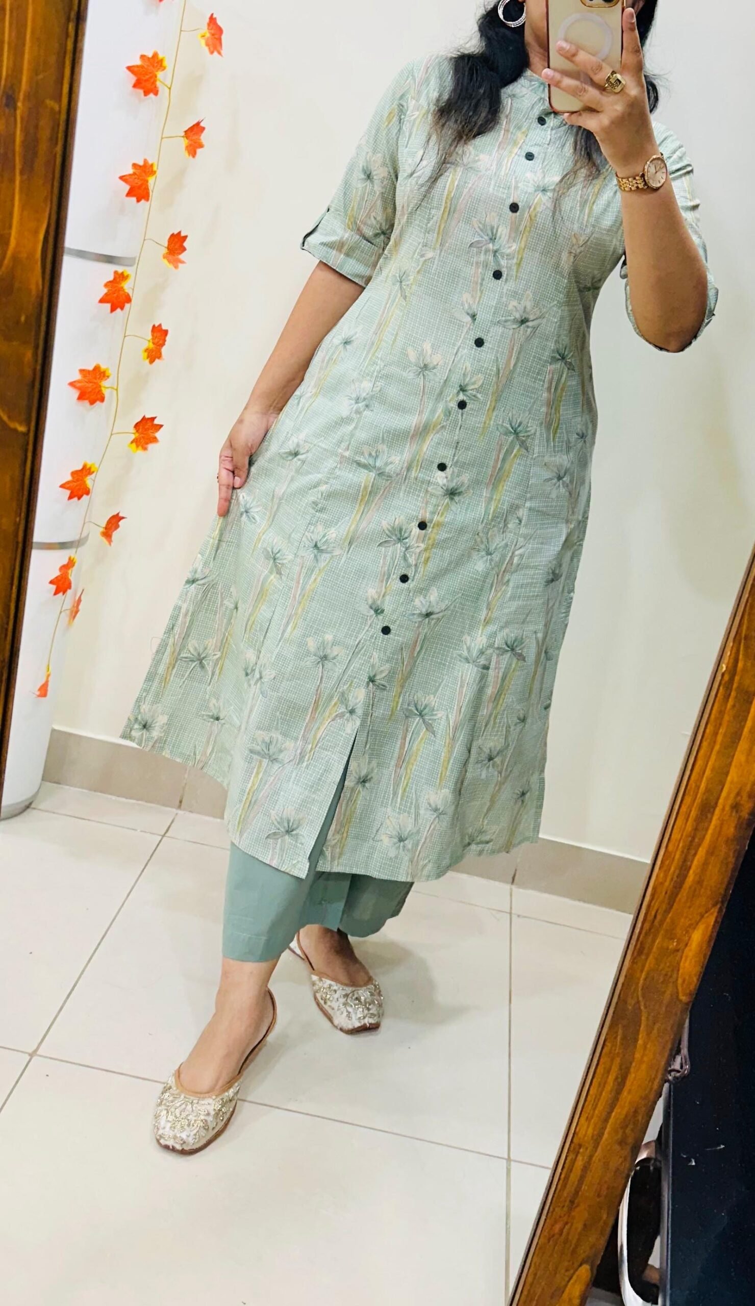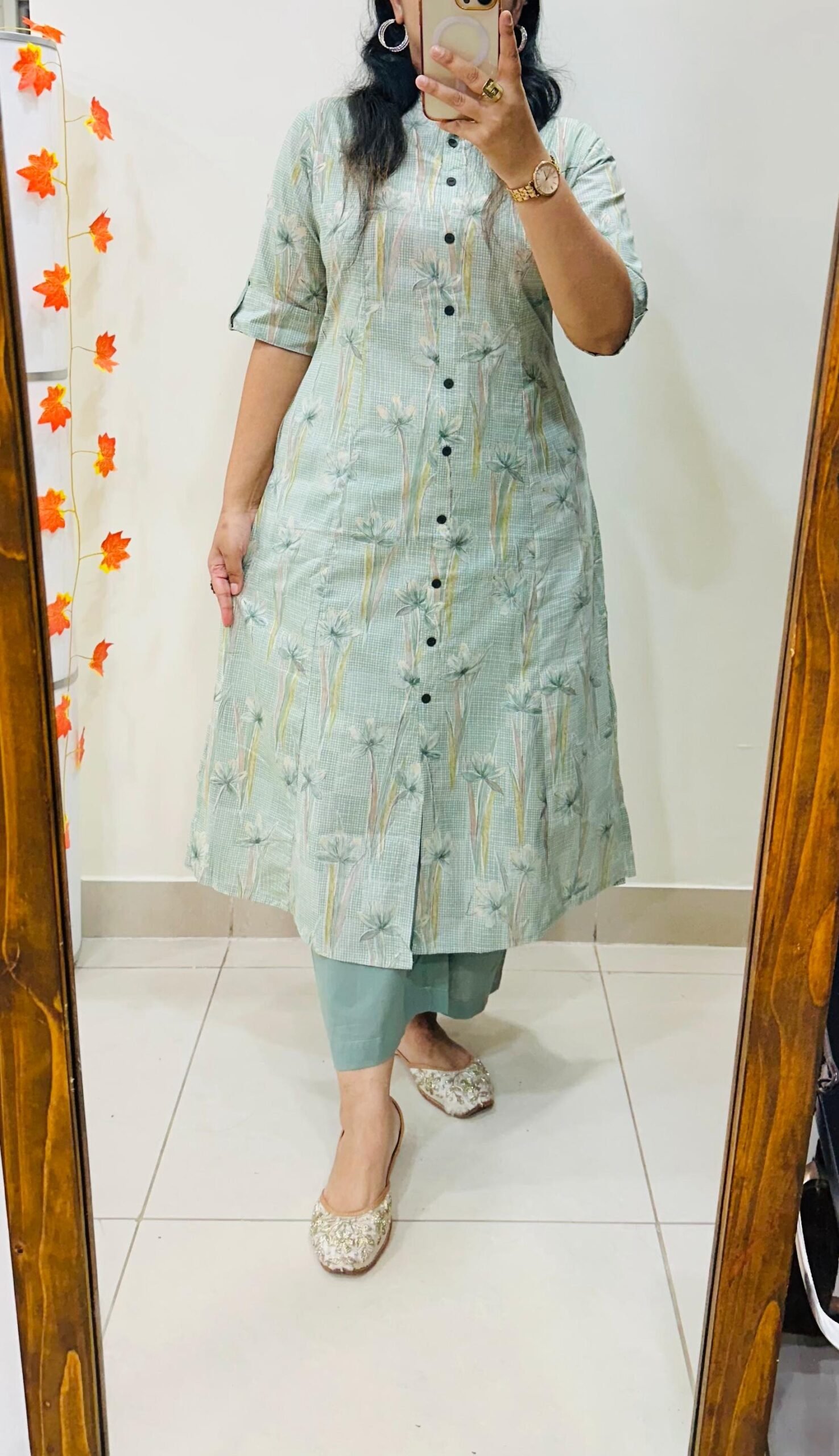 Launching Designer Coord set in Aline kurti with side slit pattern paired with Ankle length pant in Fine Cotton giving perfect outfit and deliberate choice about your look…..