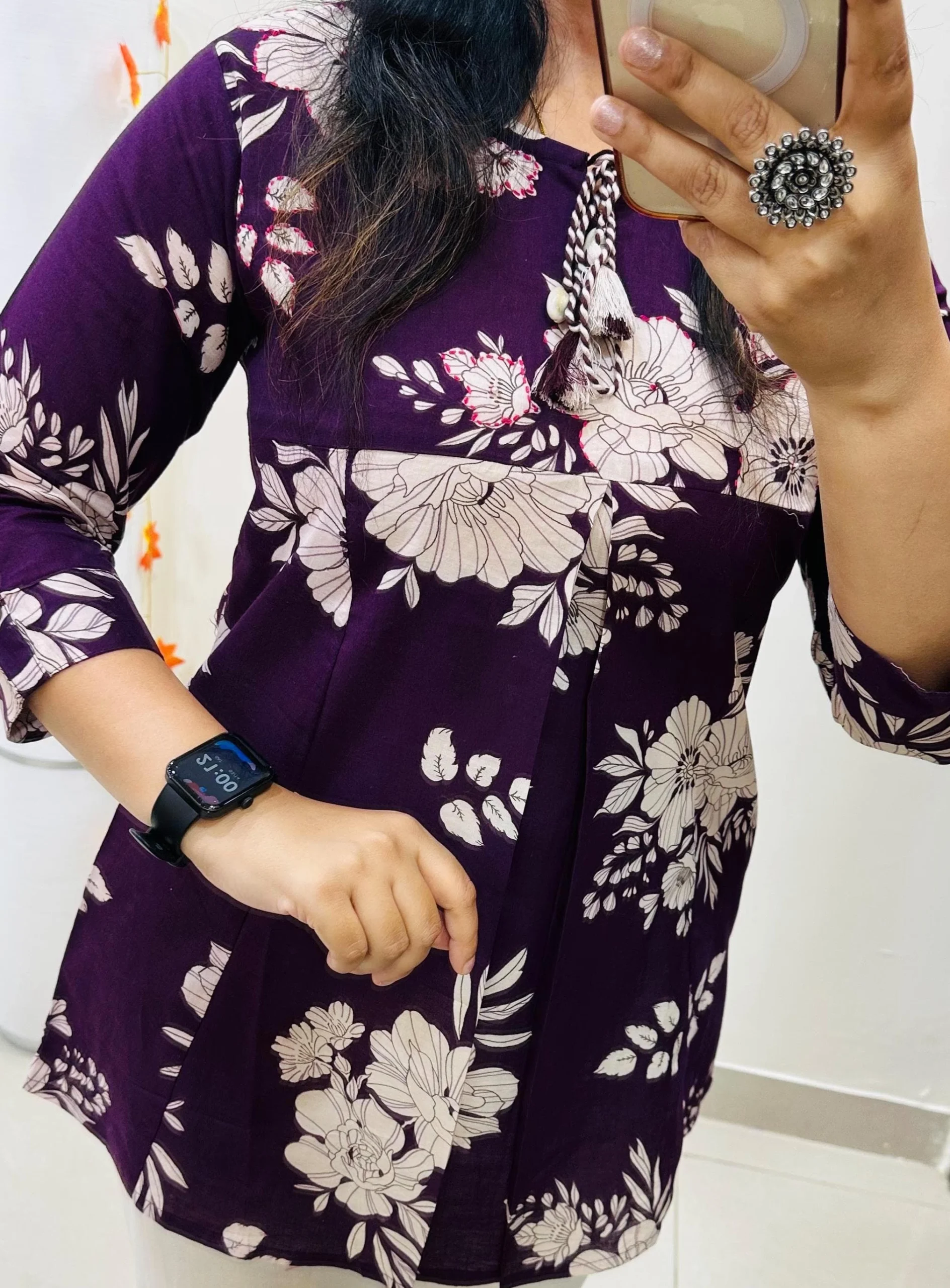 Top With tussel Attached kodi in yoke with sequin detailing in yoke