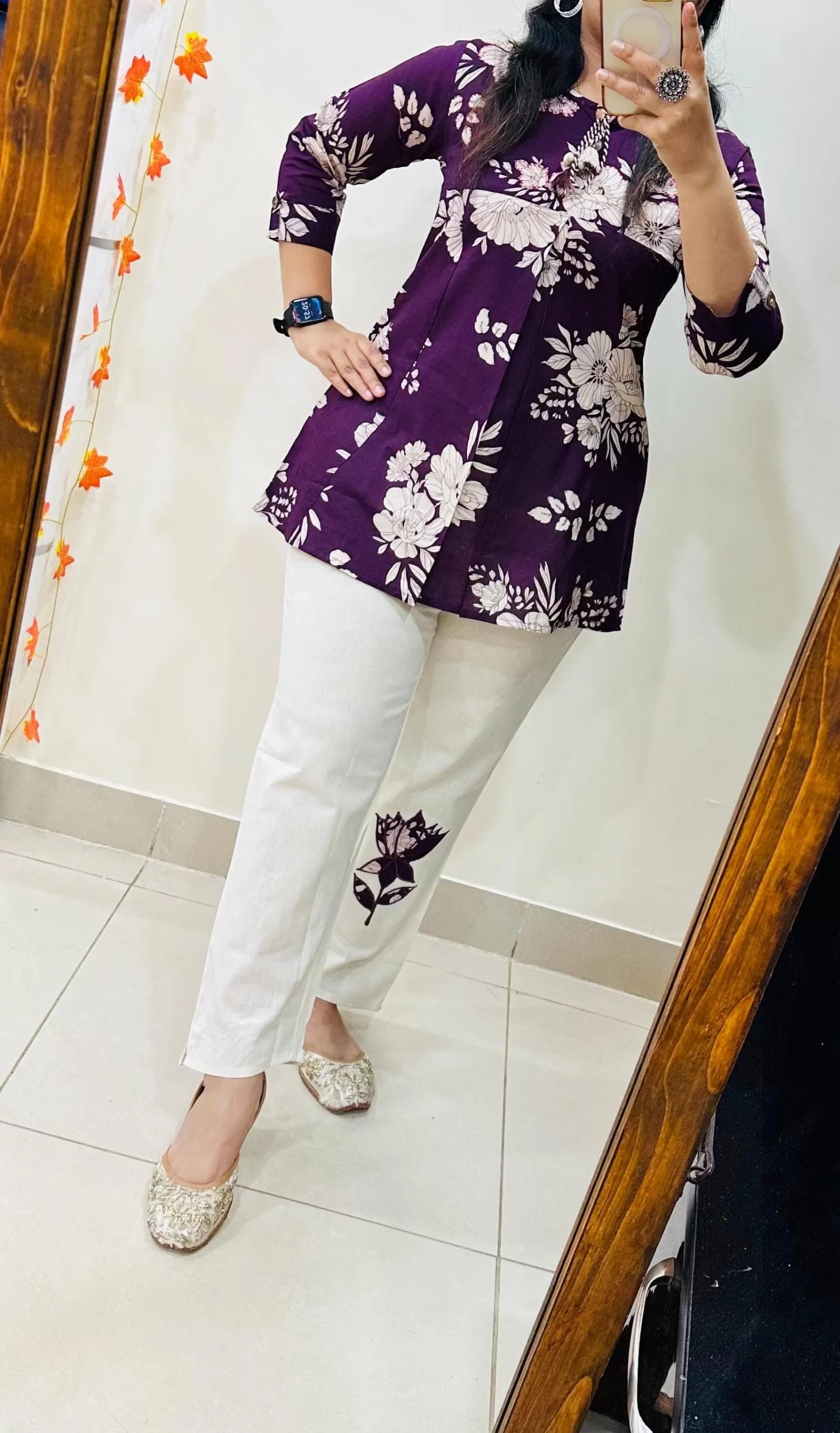 Top Bottom Set with beautiful Applique with embroidery detailing work in Flex Cotton Pant ..