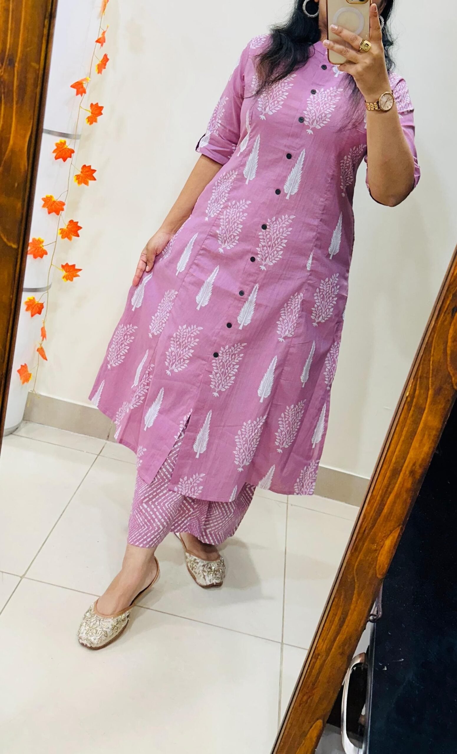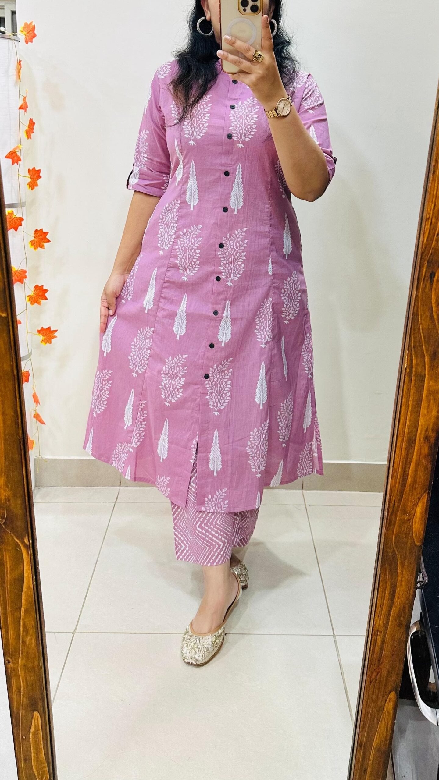 Launching Designer Coord set in Aline kurti with side slit pattern paired with Ankle length pant in Fine Cotton giving perfect outfit and deliberate choice about your look…..