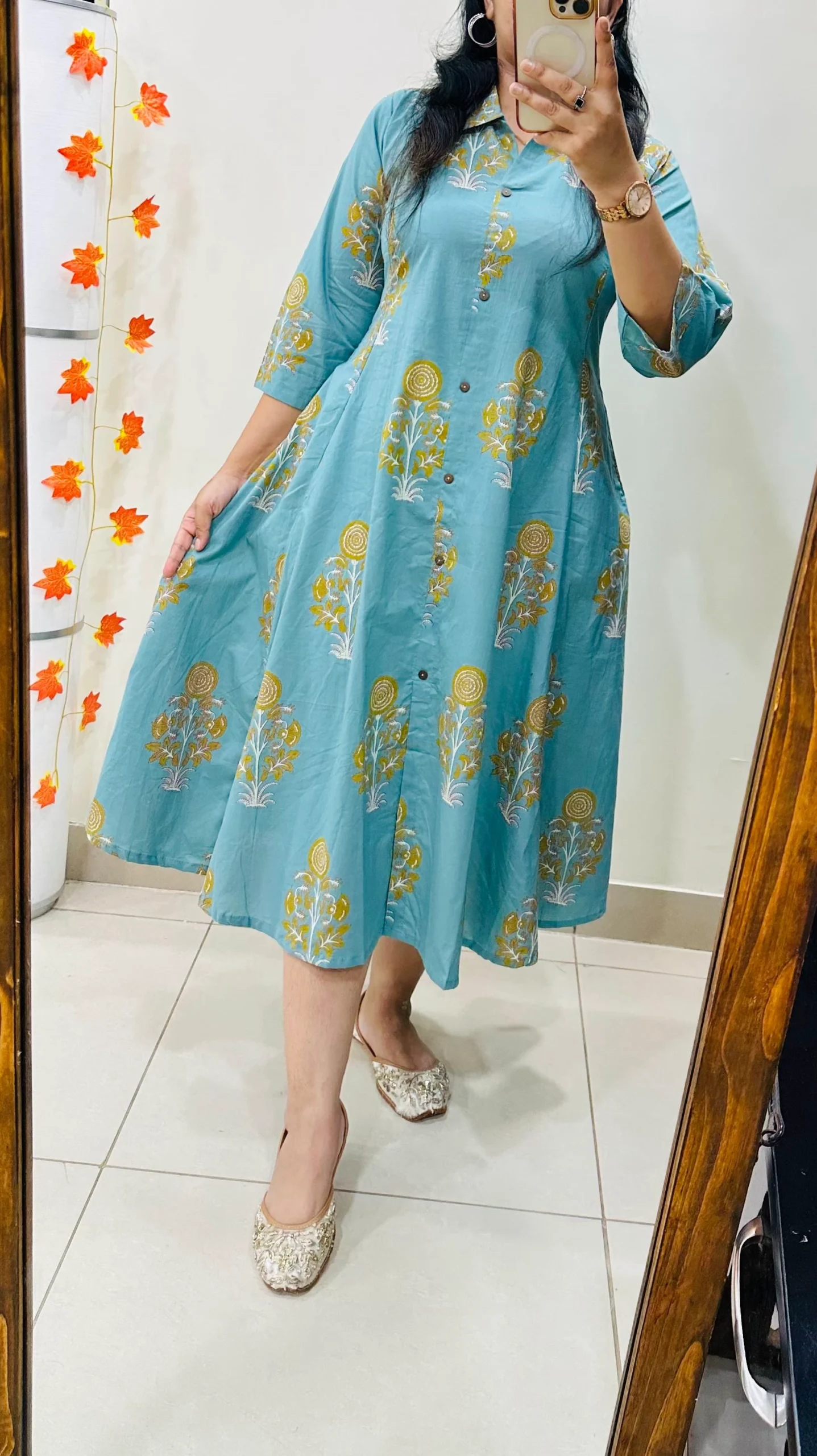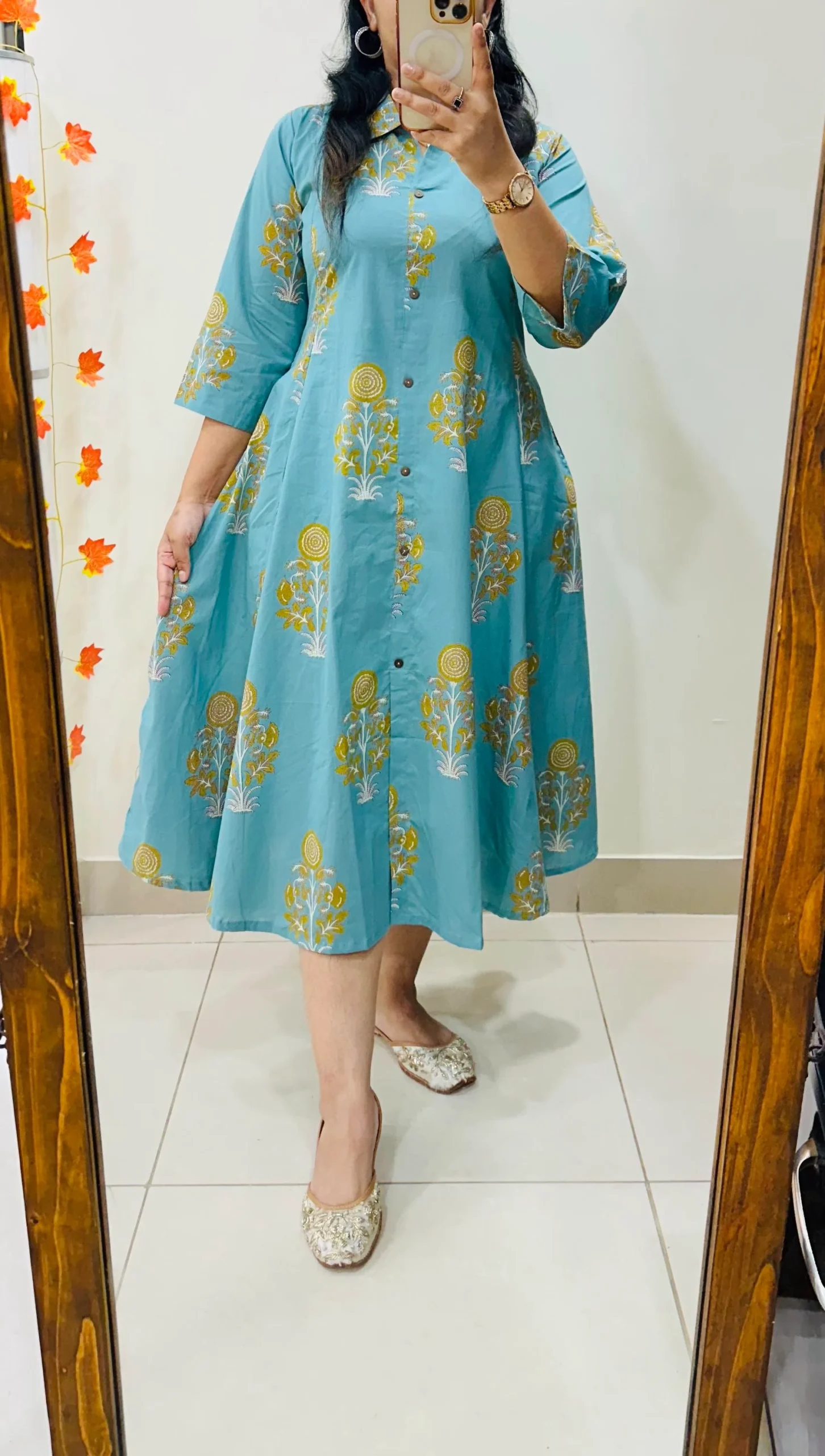 Premium Cotton Panel Cut One Piece Aline Dress Beautiful Print❤️‍🔥