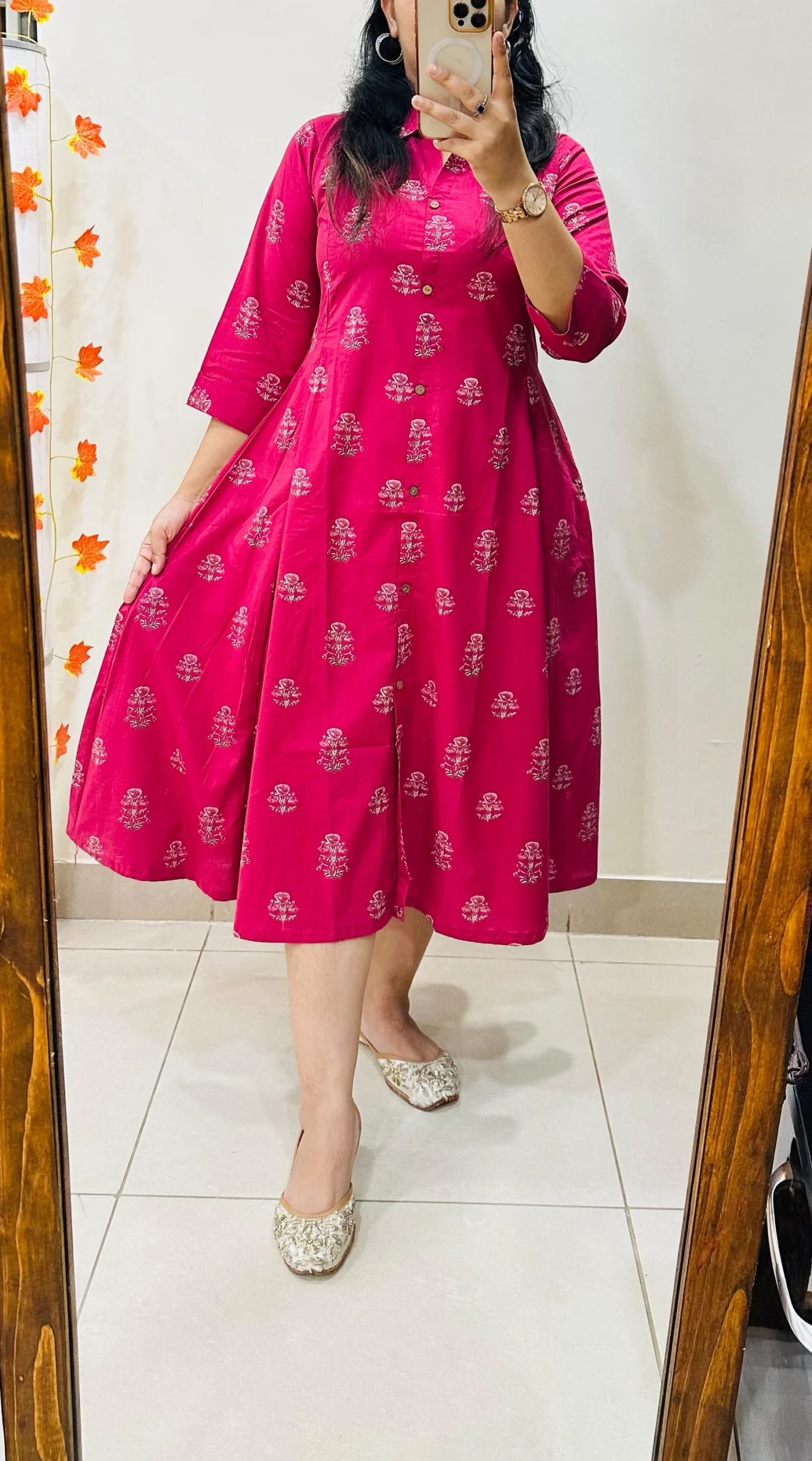 Premium Cotton Panel Cut One Piece Aline Dress Beautiful Print❤️🔥